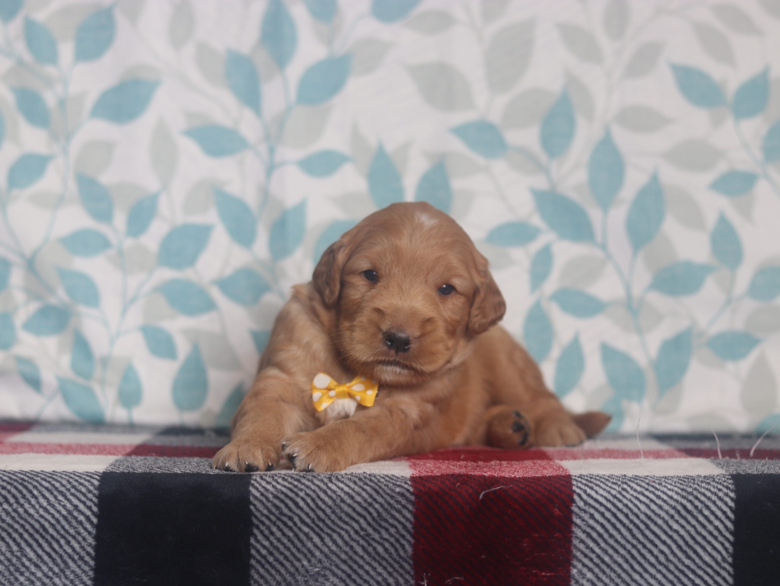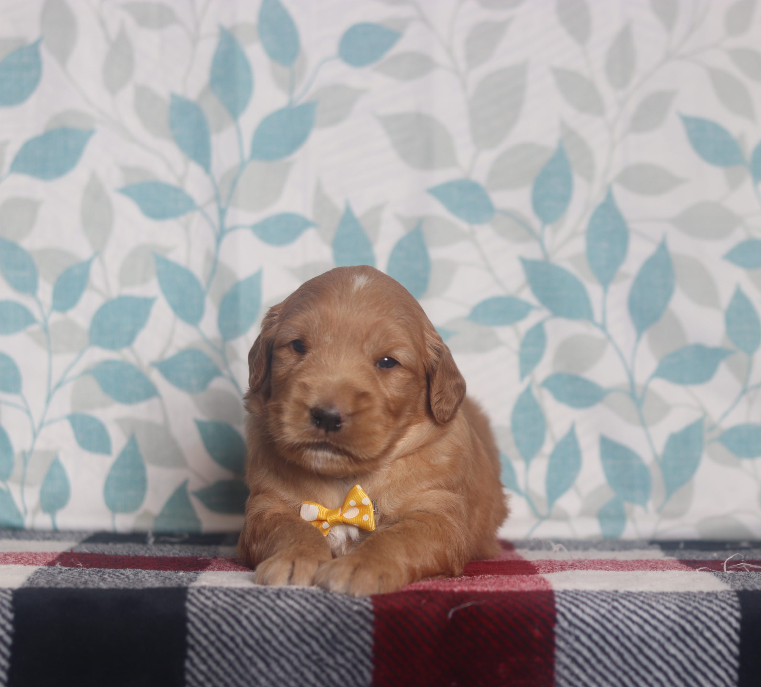 Hello, this is Abner! He’s a cute little Golden Retriever boy with a red/white soft, furry coat and 2 shining eyes. He loves to play with his siblings and also loves to be held and cuddled! He will be sure to shower you with lots of kisses! (Estimated Wt. 63#)