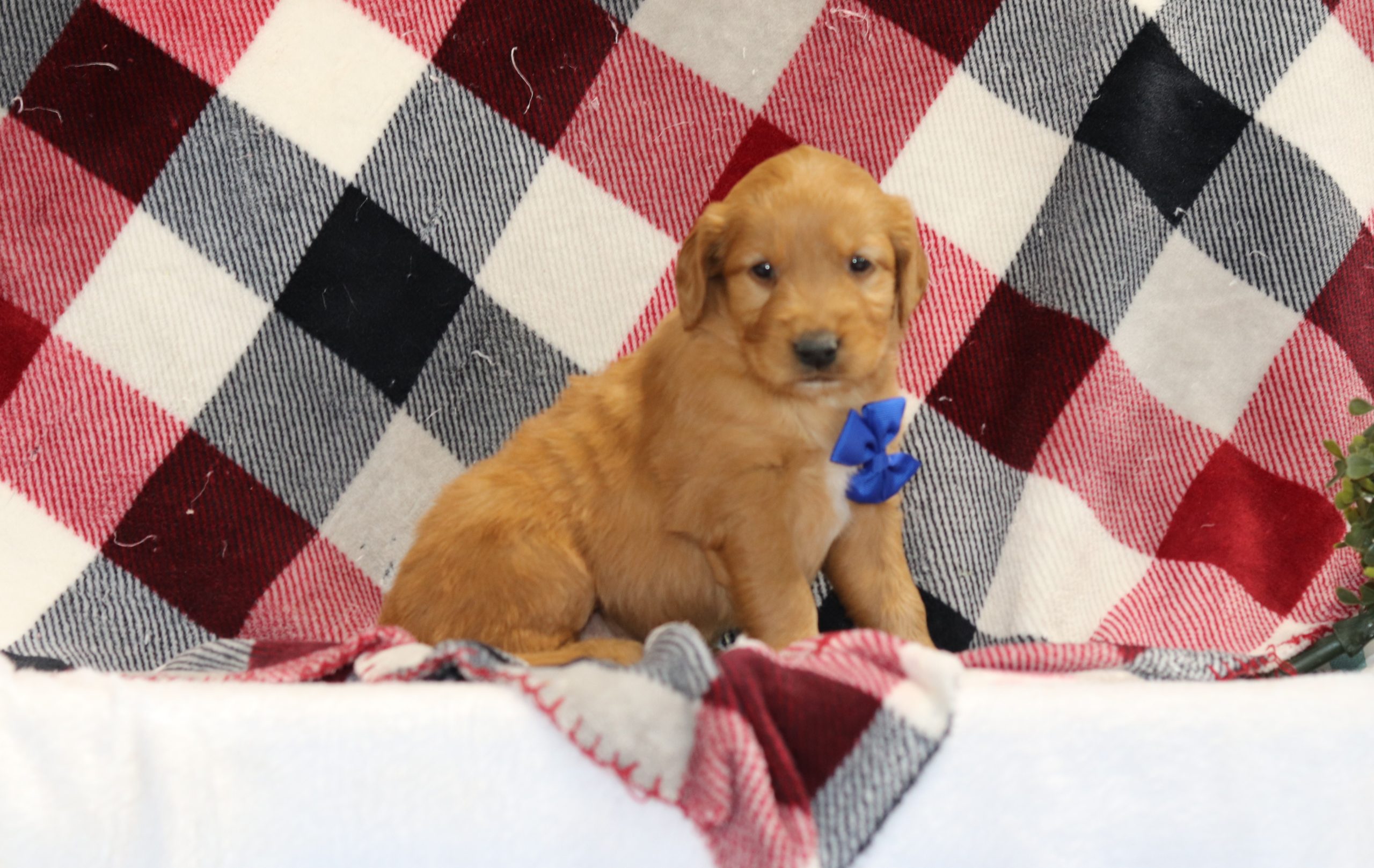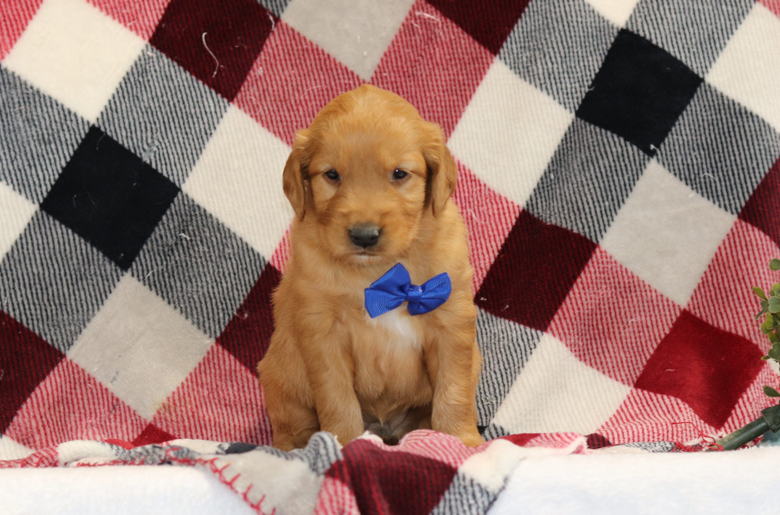Hello, this is Abner! He’s a cute little Golden Retriever boy with a red/white soft, furry coat and 2 shining eyes. He loves to play with his siblings and also loves to be held and cuddled! He will be sure to shower you with lots of kisses! (Estimated Wt. 63#)
