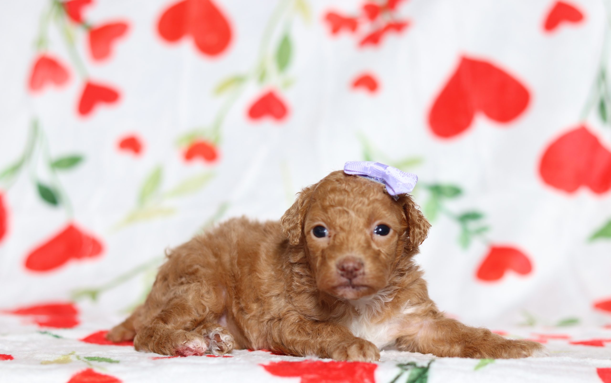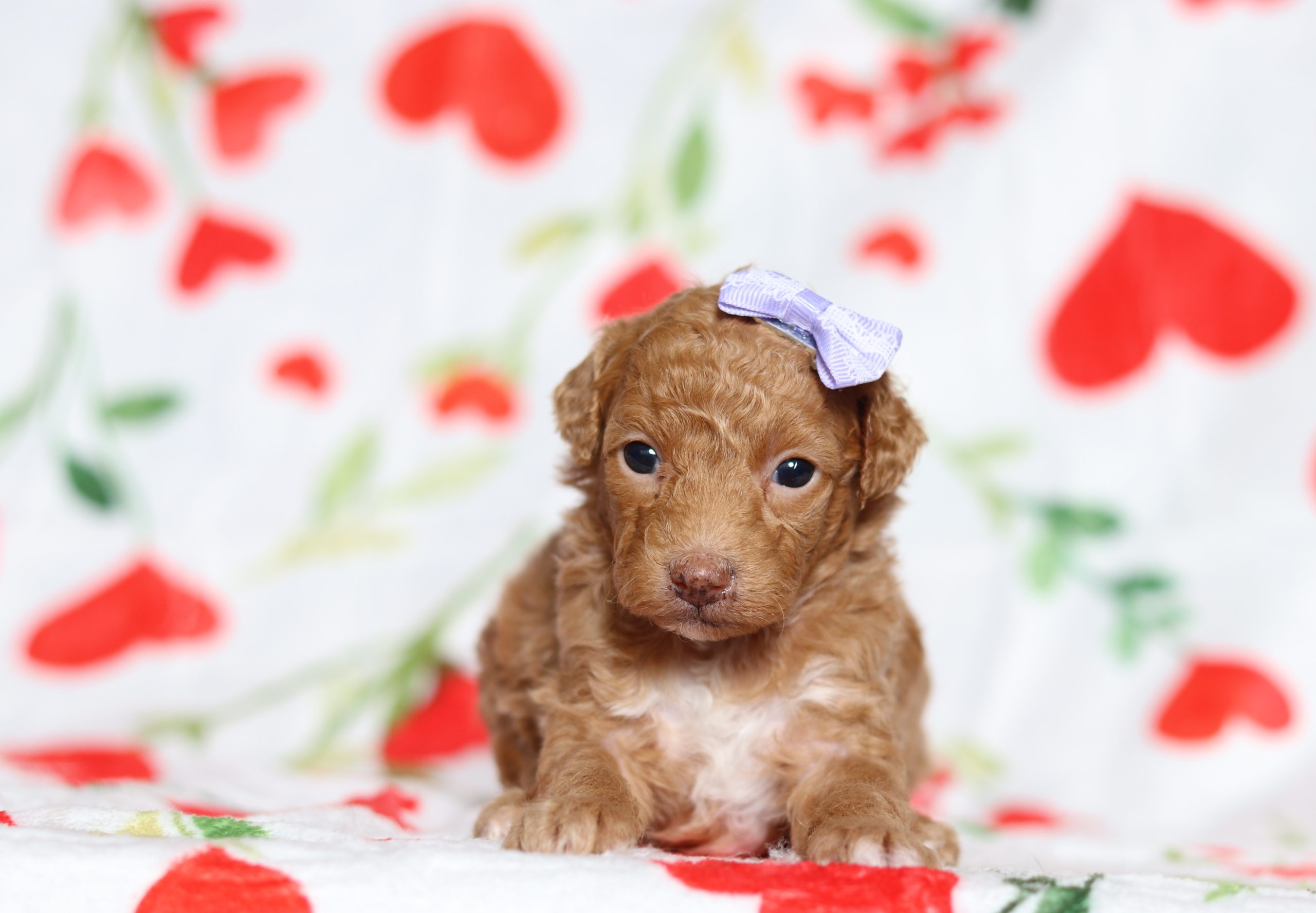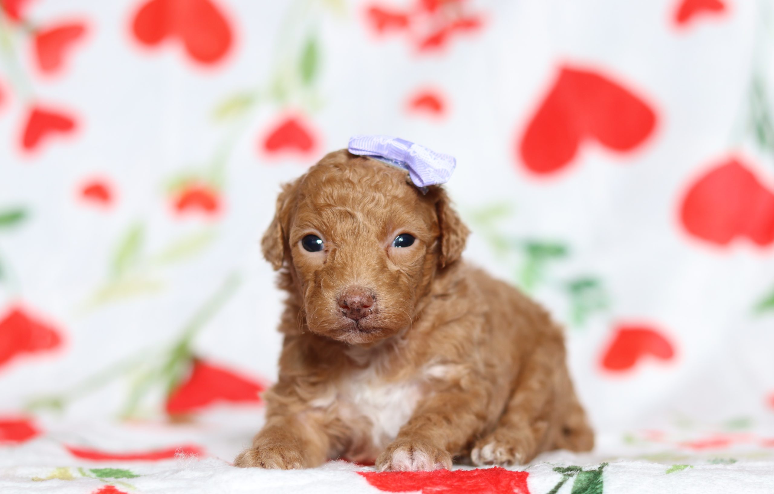 Babe, the Mini Poodle girl, is very alert and won’t miss a beat! She is a happy go lucky little girl and loves excitement! She has a beautiful fluffy hair coat! Her caring eyes and cute little nose will be sure to steal your heart! Enjoys playtime and also loves to be held! She’s an all around cutie!