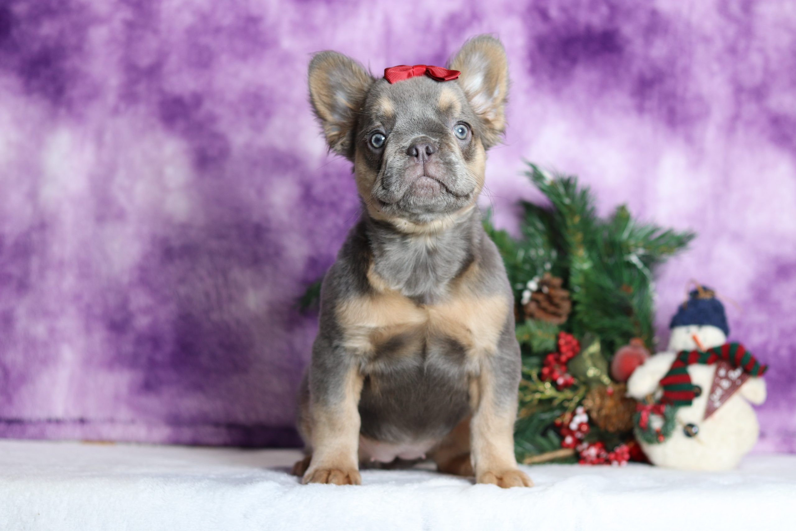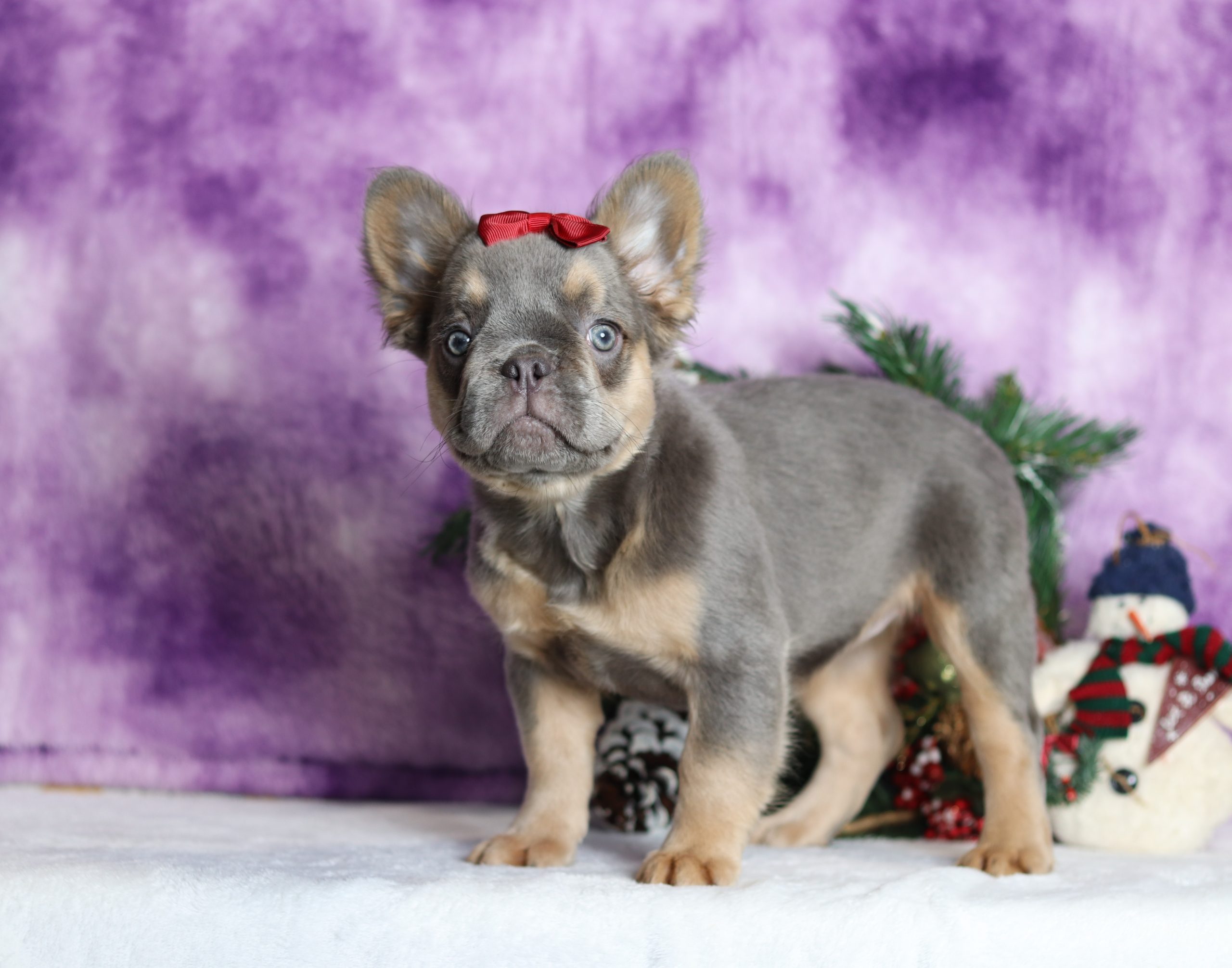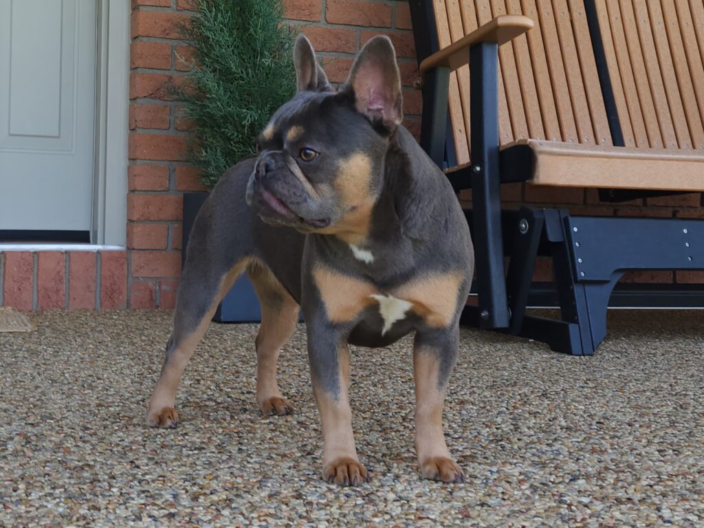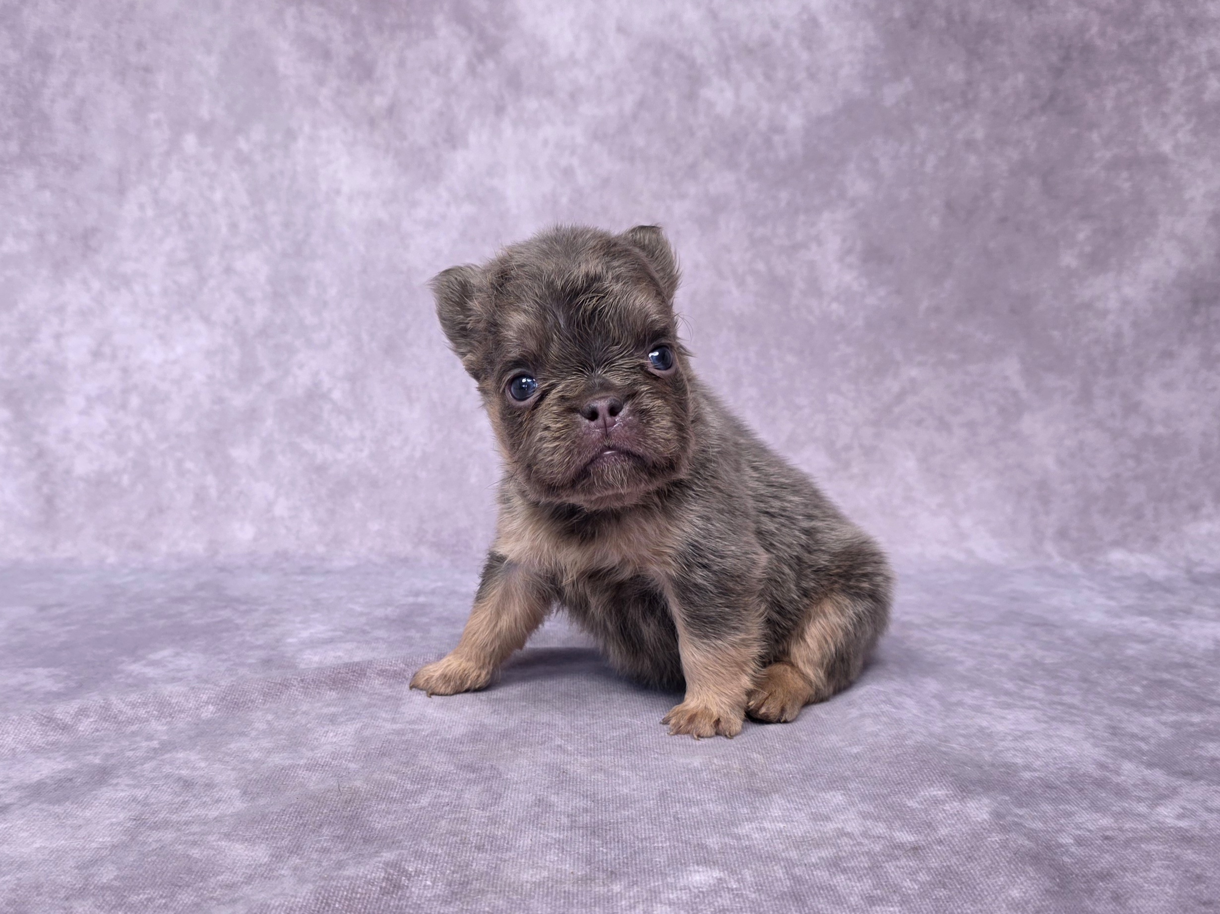 Hi there! This is Bailey a sweet little Frenchy girl! She has a beautiful lilac and tan coat and 2 shining eyes! She is happiest when she is with you, snuggling by your feet or going on a walk, that is just what she loves! She has a great temperament and loves to play with kids!