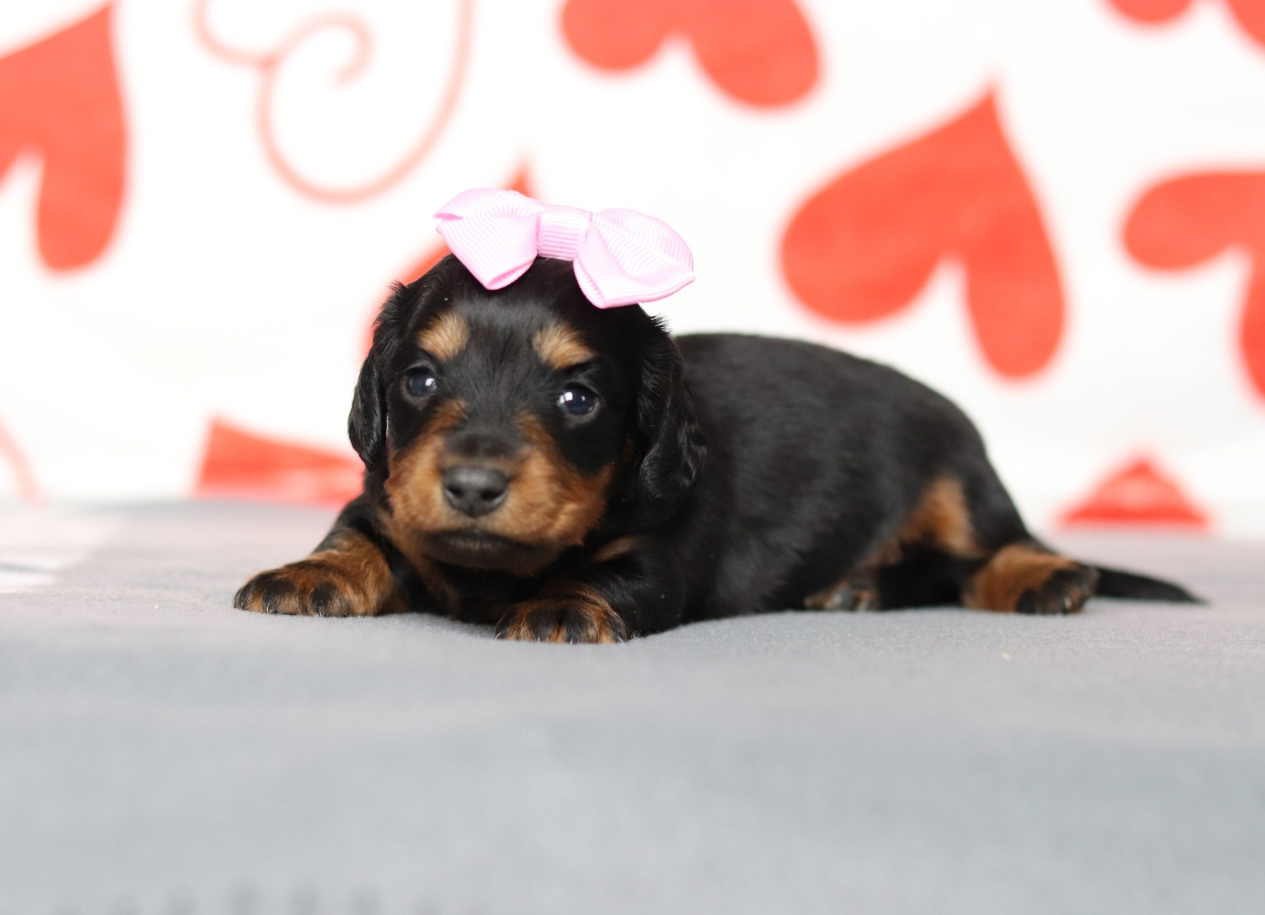 Meet Baily, a sweet little Mini dachshund,she is a longhsaired, who is charming and adorable! You’ll love Baily’s happy personality as she explores new things. She will be sure to love you forever and always be right by your side. You’ll find so much delight in having her be a part of your family, She did great with (ENS) Early Neurological Stimulation.