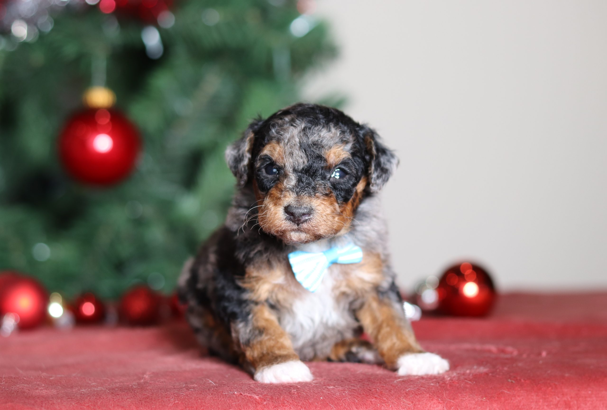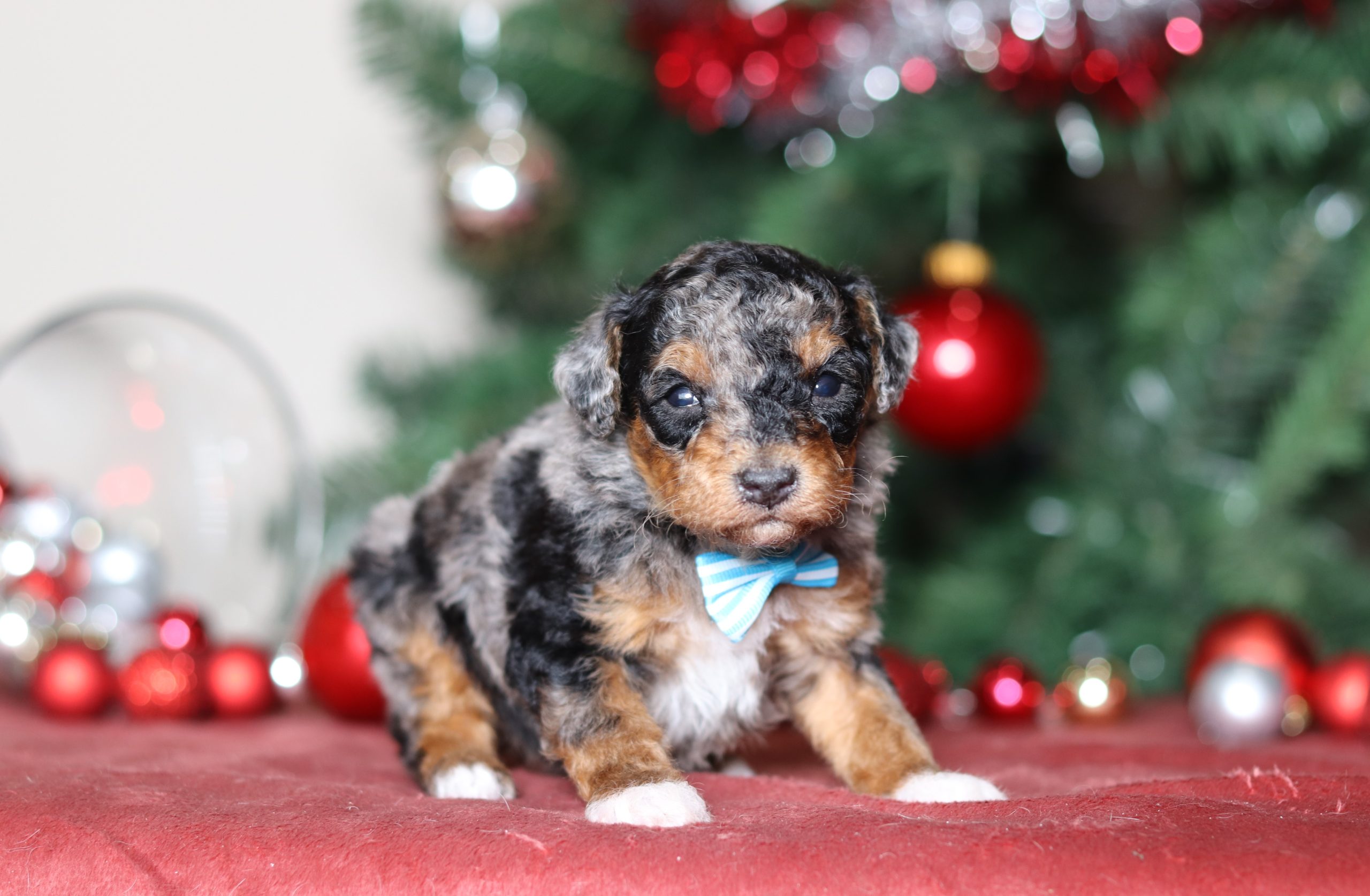 Benny, the Mini Poodle boy is very alert and won’t miss a beat! He is a happy go lucky little guy and loves excitement! He has a beautiful fluffy,blue merle coat! His caring eyes and cute little nose will be sure to steal your heart! Enjoys playtime and also loves to be held! He’s an all around cutie!