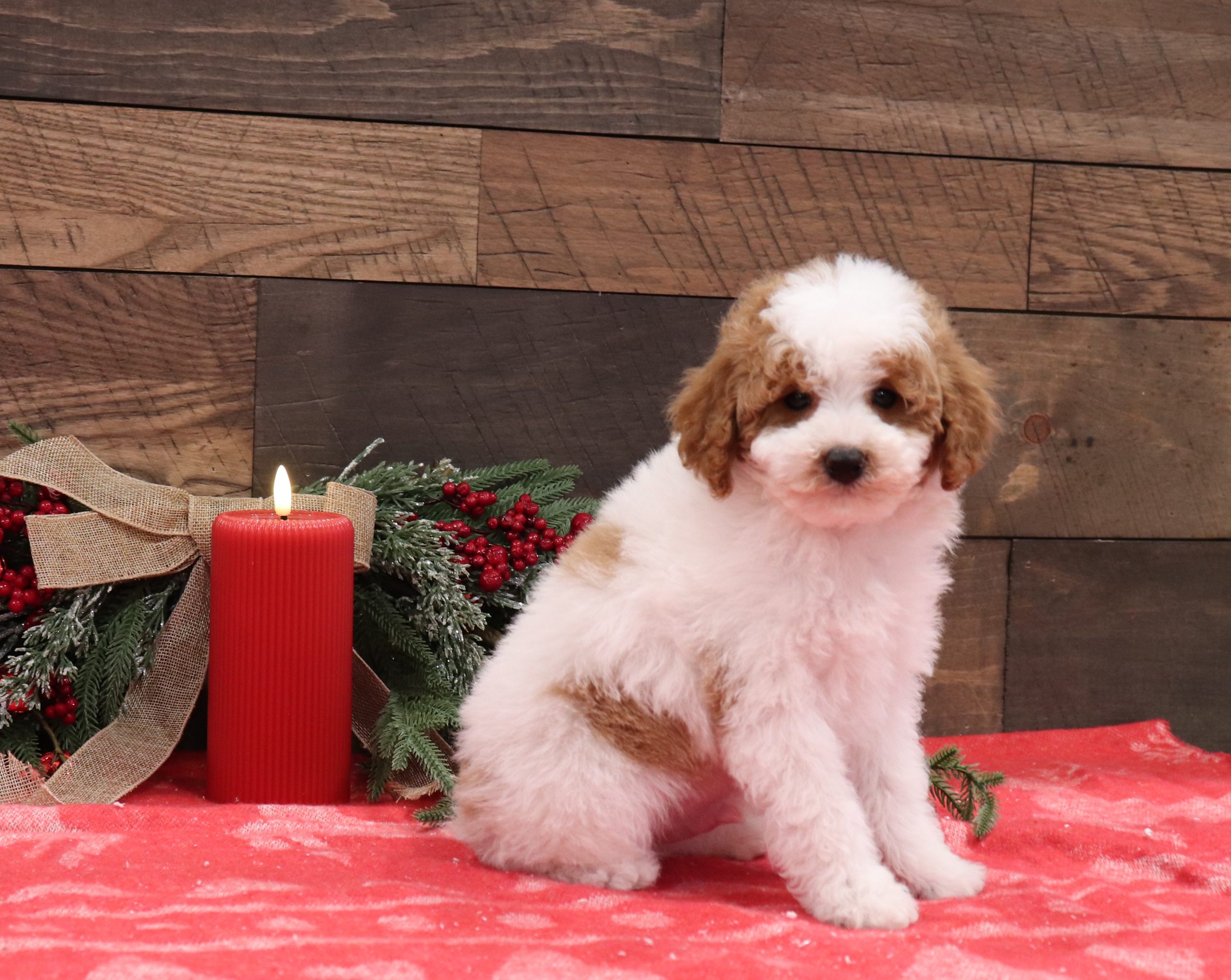 Hello, this is Brandy! He’s a cute looking little mini poodle boy with a red and white soft, furry coat and 2 shining eyes. He loves to play with toys! He will be sure to shower you with lots of kisses!