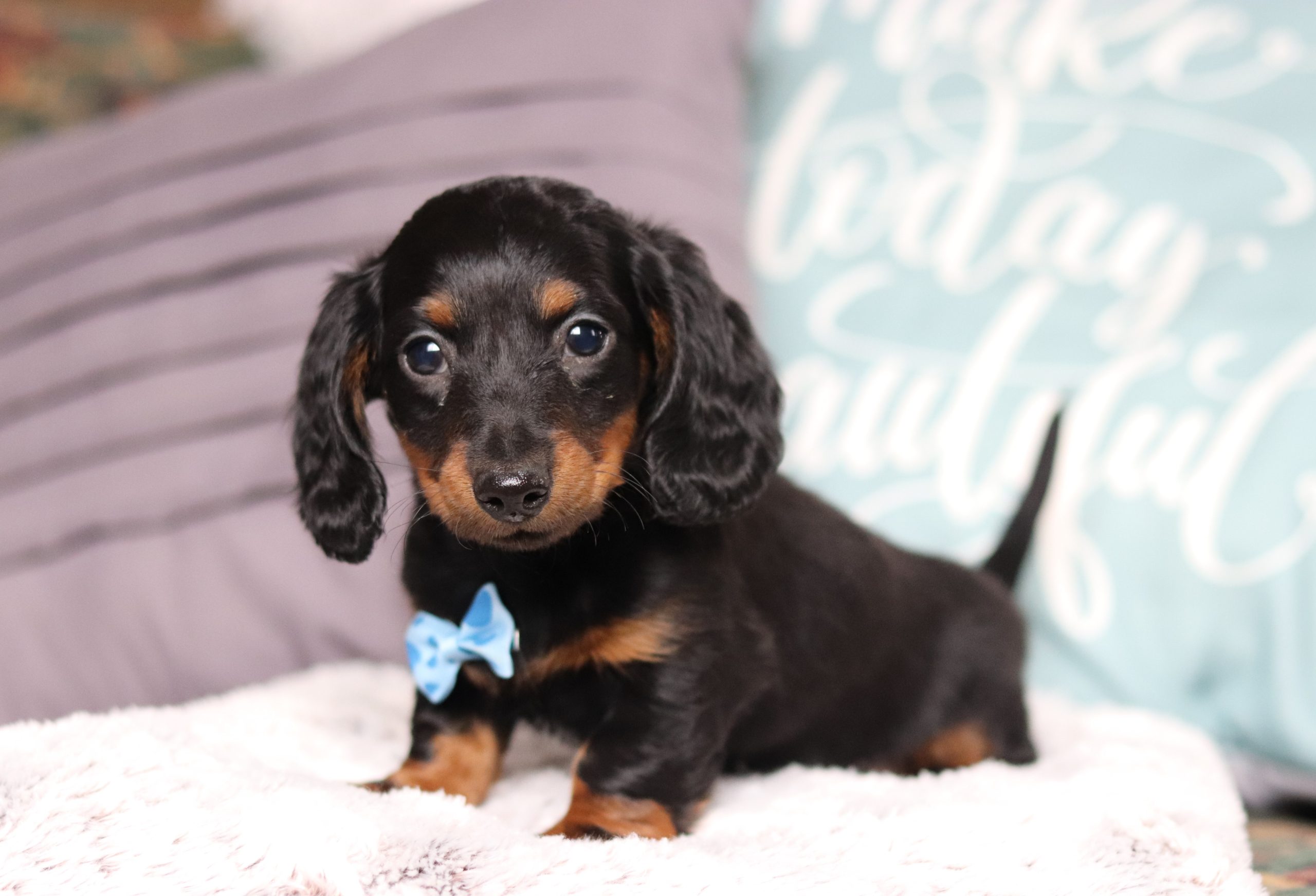 Braylin the Longhaired mini dachshund is very caring and sweet! He is such a cheerful little boy a great companion to his littermates! His temperament is wonderful! He is eager to please and a bundle of love!