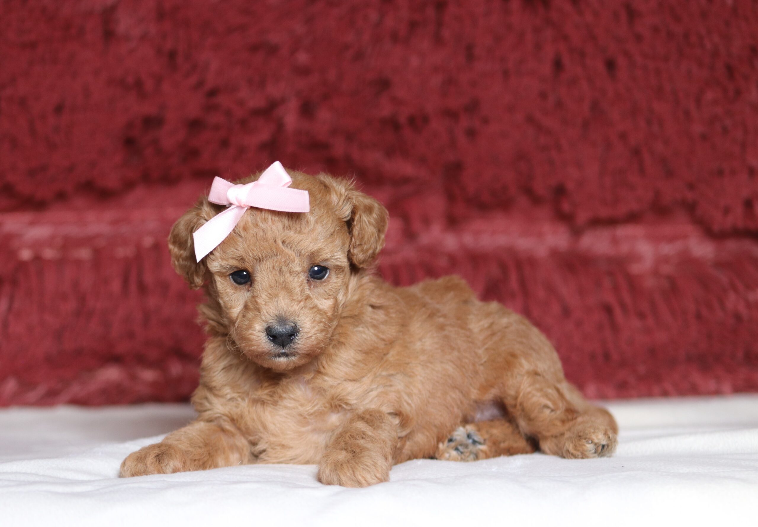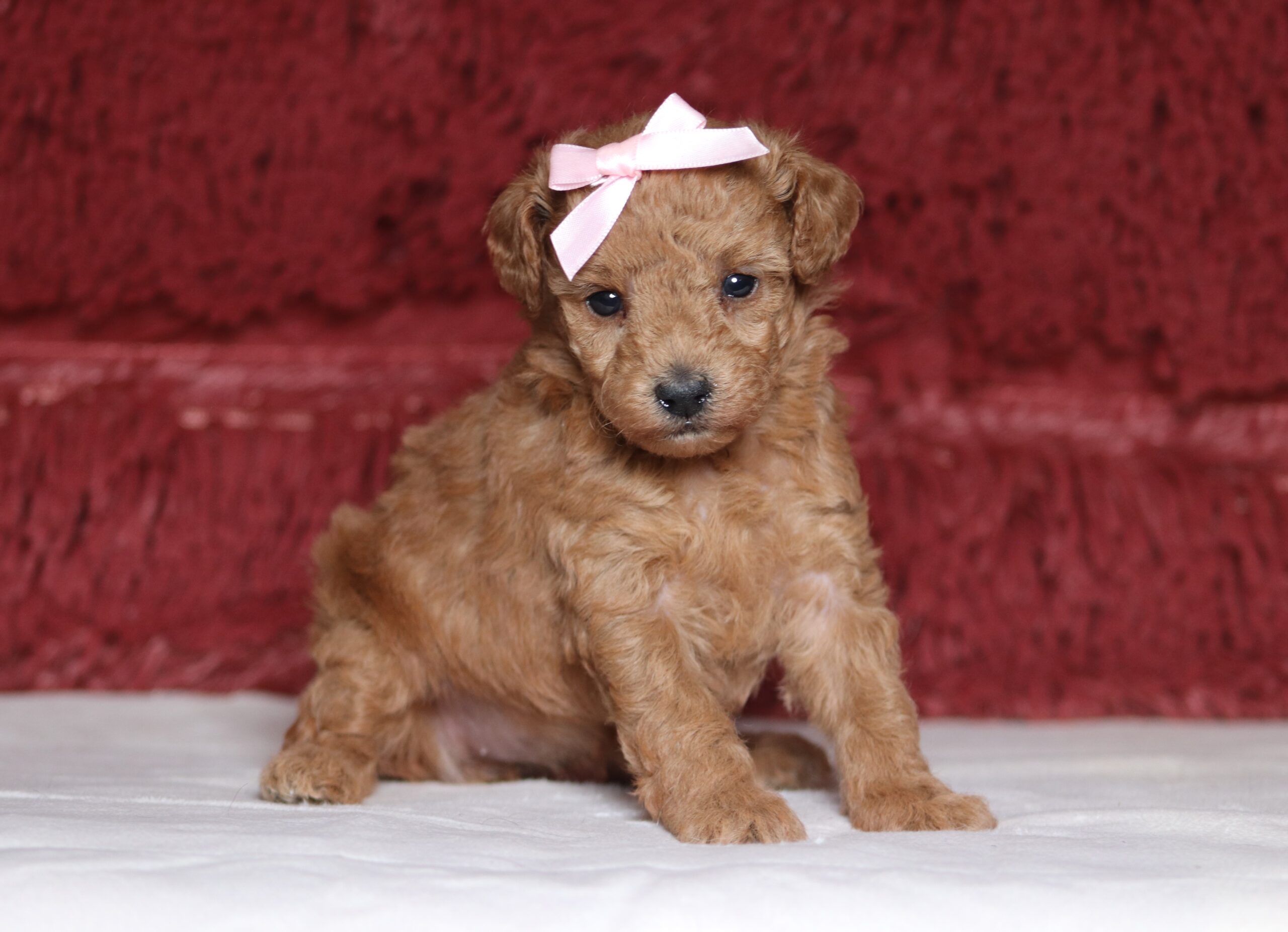 Hi there! This is Charity a sweet little Mini Poodle girl! She has a nice red coat! She is happiest when she is with you, snuggling by your feet or going on a walk, that is just what she loves! She has a great temperament and loves to play with kids!