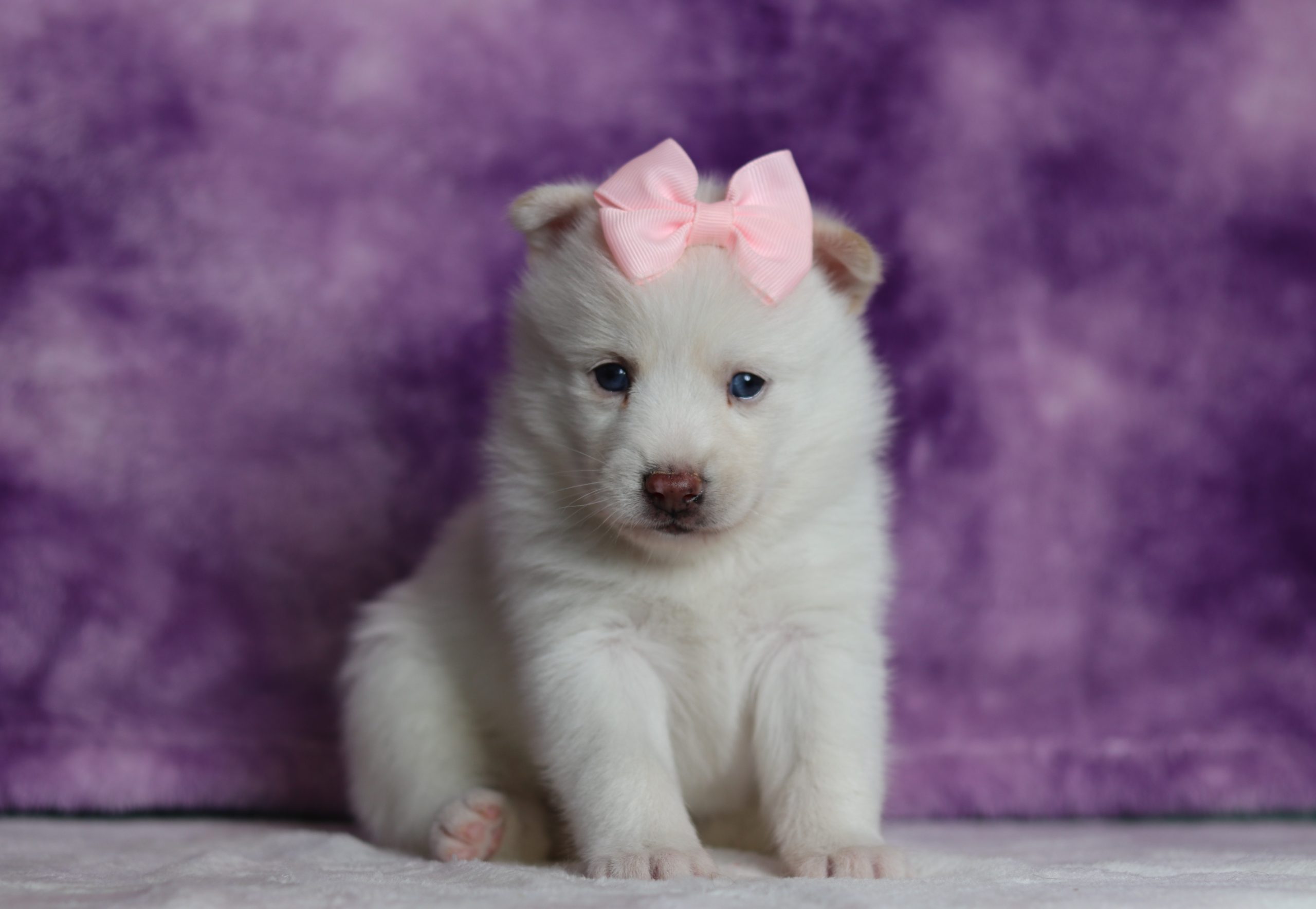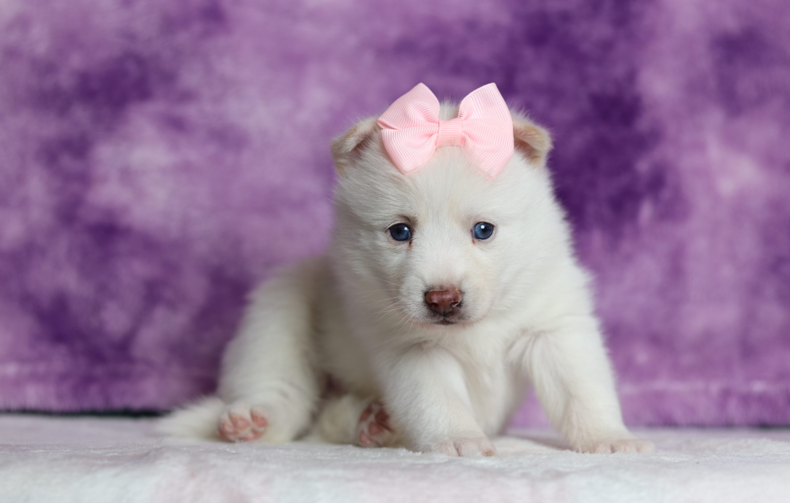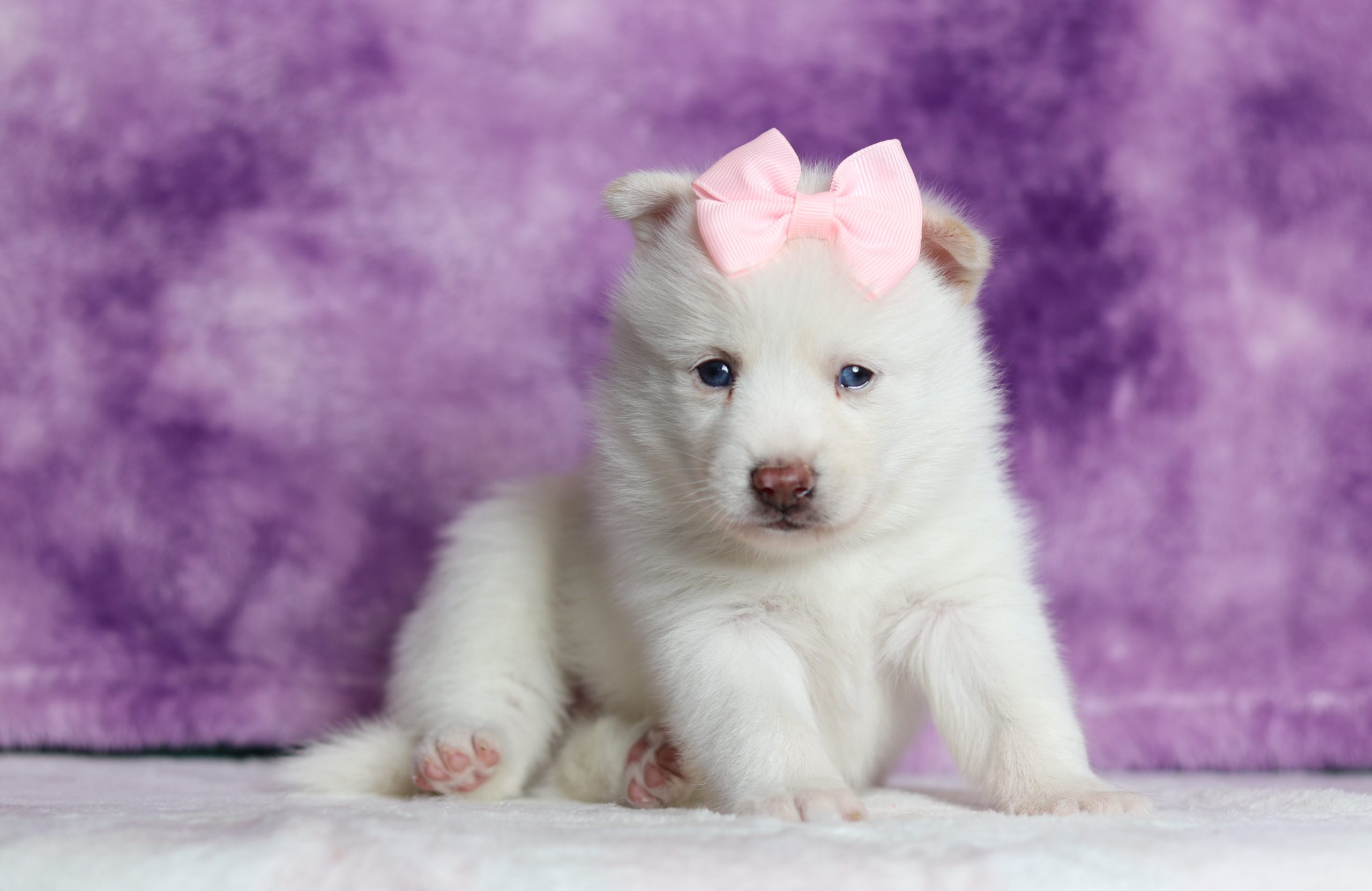 Dahlia a precious little pomsky girl! She enjoys every minute of snuggling together! She loves being pampered and getting belly rubs! She did great with (ENS) Early Neurological Stimulation and enjoys playing with toys and running around! She is a friendly and adorable girl!