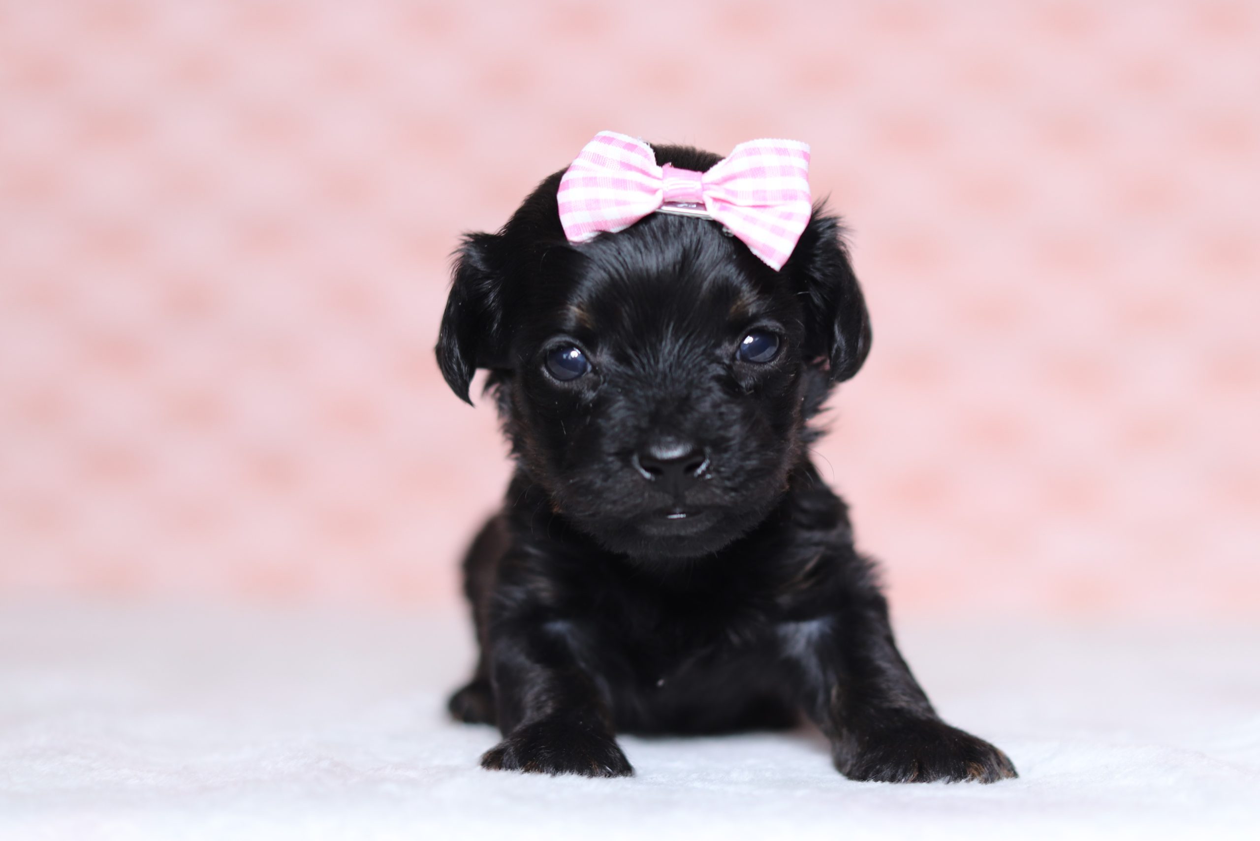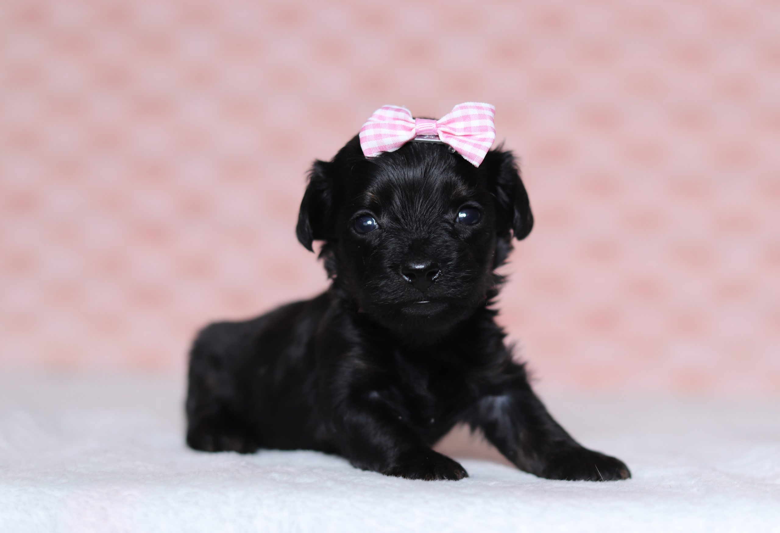 Dana, the Doxypoo girl, is very alert and won’t miss a beat! She’s got a shiny,black haircoat! She is a happy go lucky little girl! She loves excitement! Her caring eyes and cute little nose will be sure to steal your heart! Enjoys playtime and also loves to be held! She’s an all around cutie!