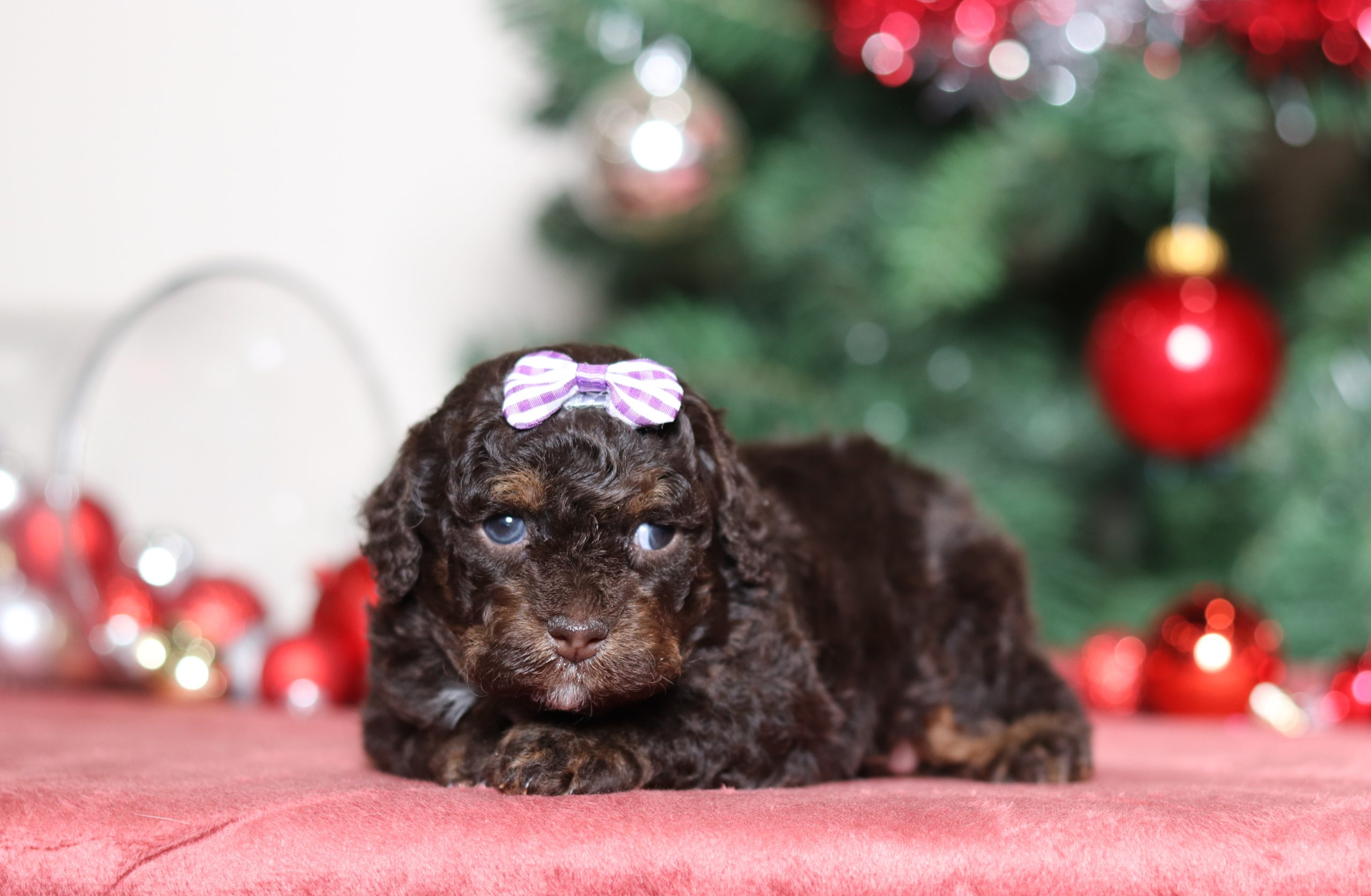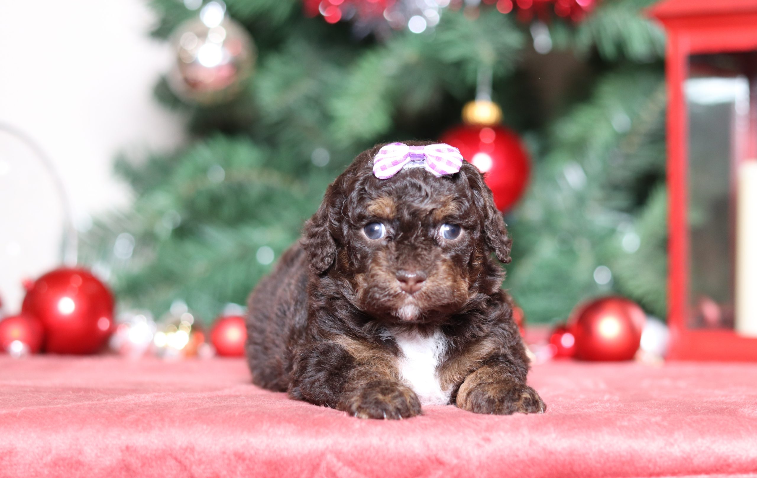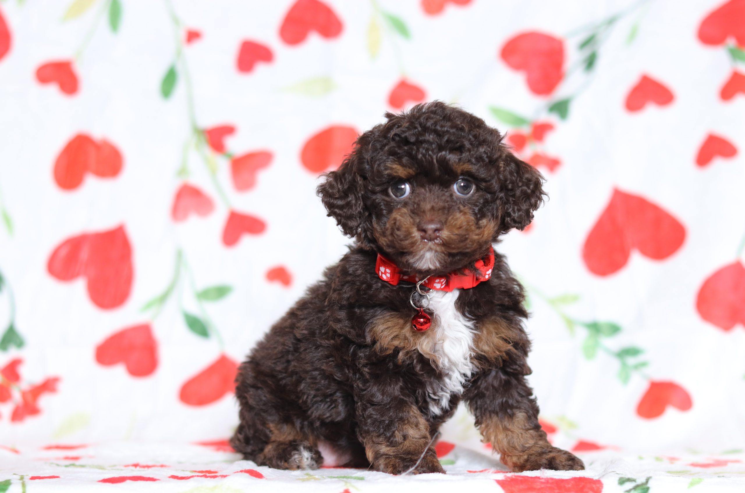 Hello, this is Darcy! She’s a cute little mini poodle girl with a beautiful chocolate and white soft, furry coat and 2 shining eyes. She loves to play with toys! She will be sure to shower you with lots of kisses!