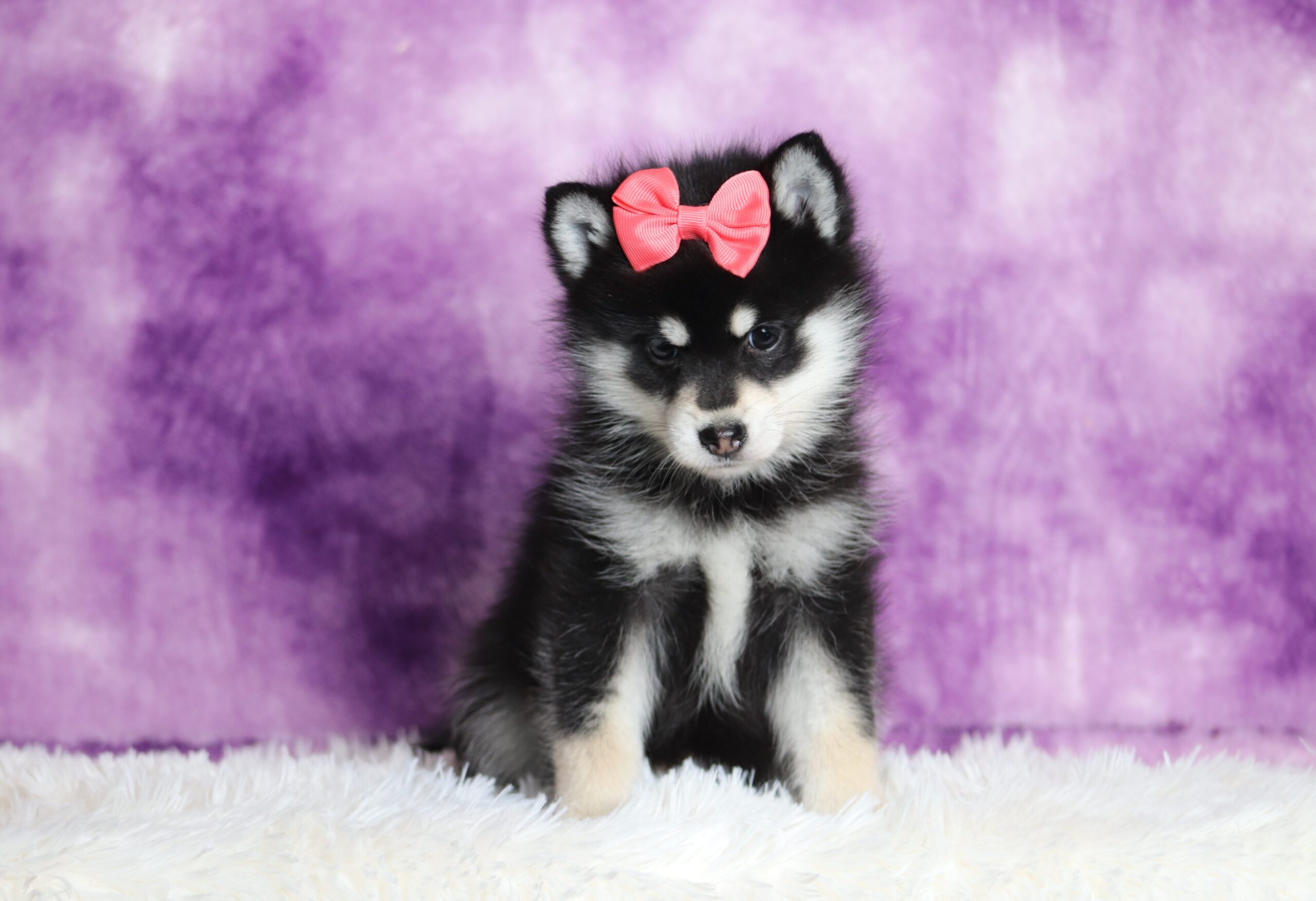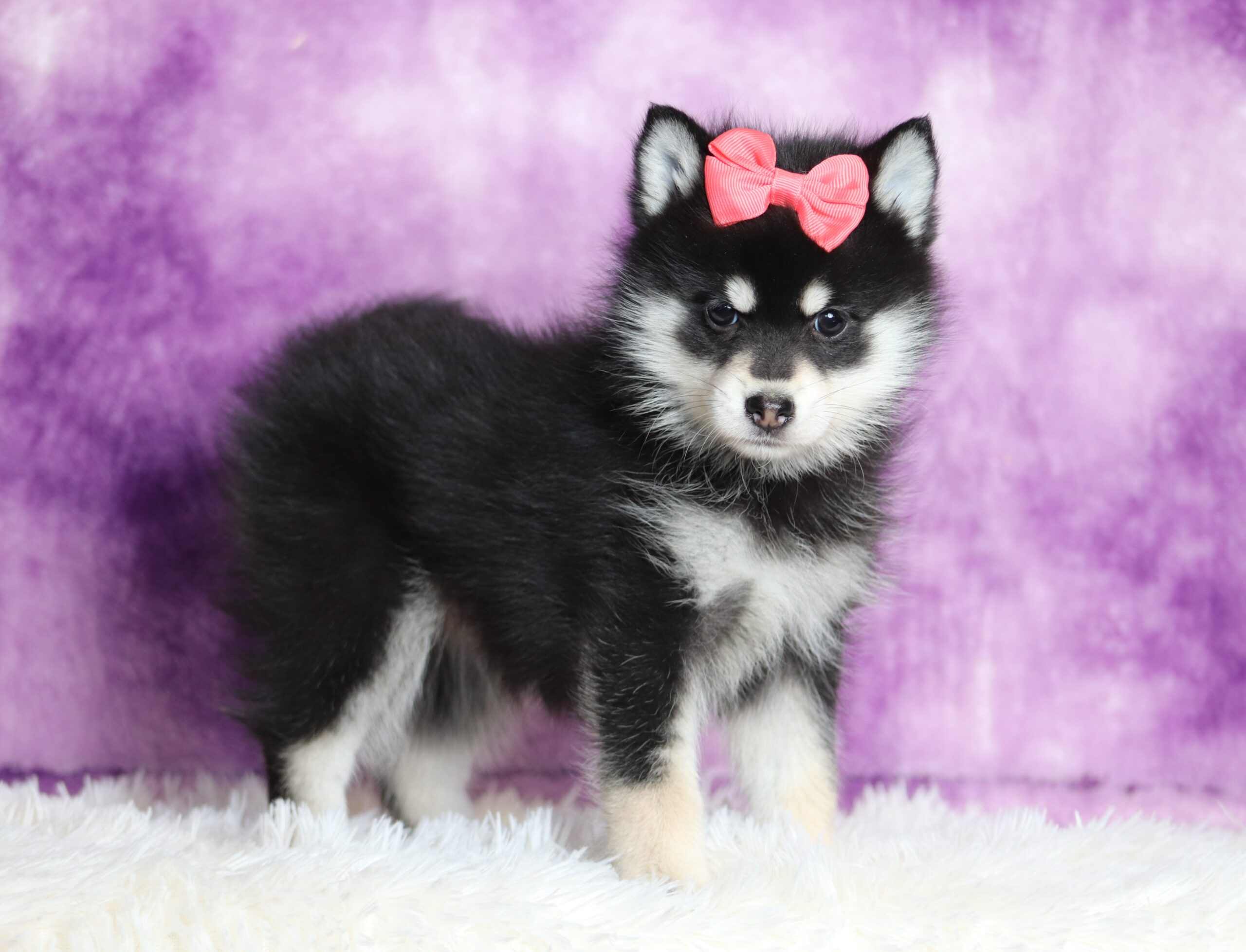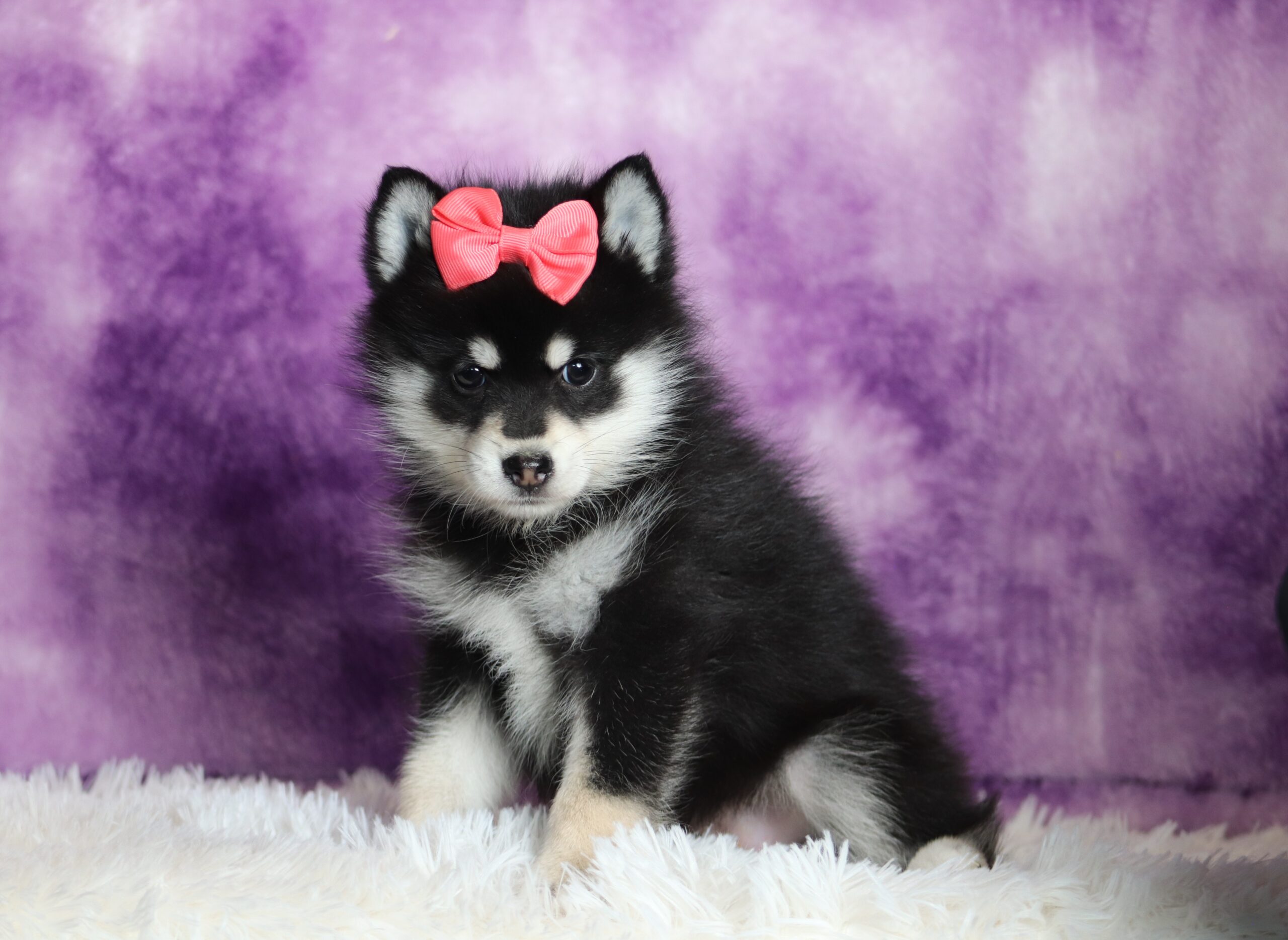 Dora a precious little Pomsky girl! She enjoys every minute of snuggling together! She loves being pampered and getting belly rubs! She did great with (ENS) Early Neurological Stimulation and enjoys playing with toys and running around! She is a friendly and adorable girl!