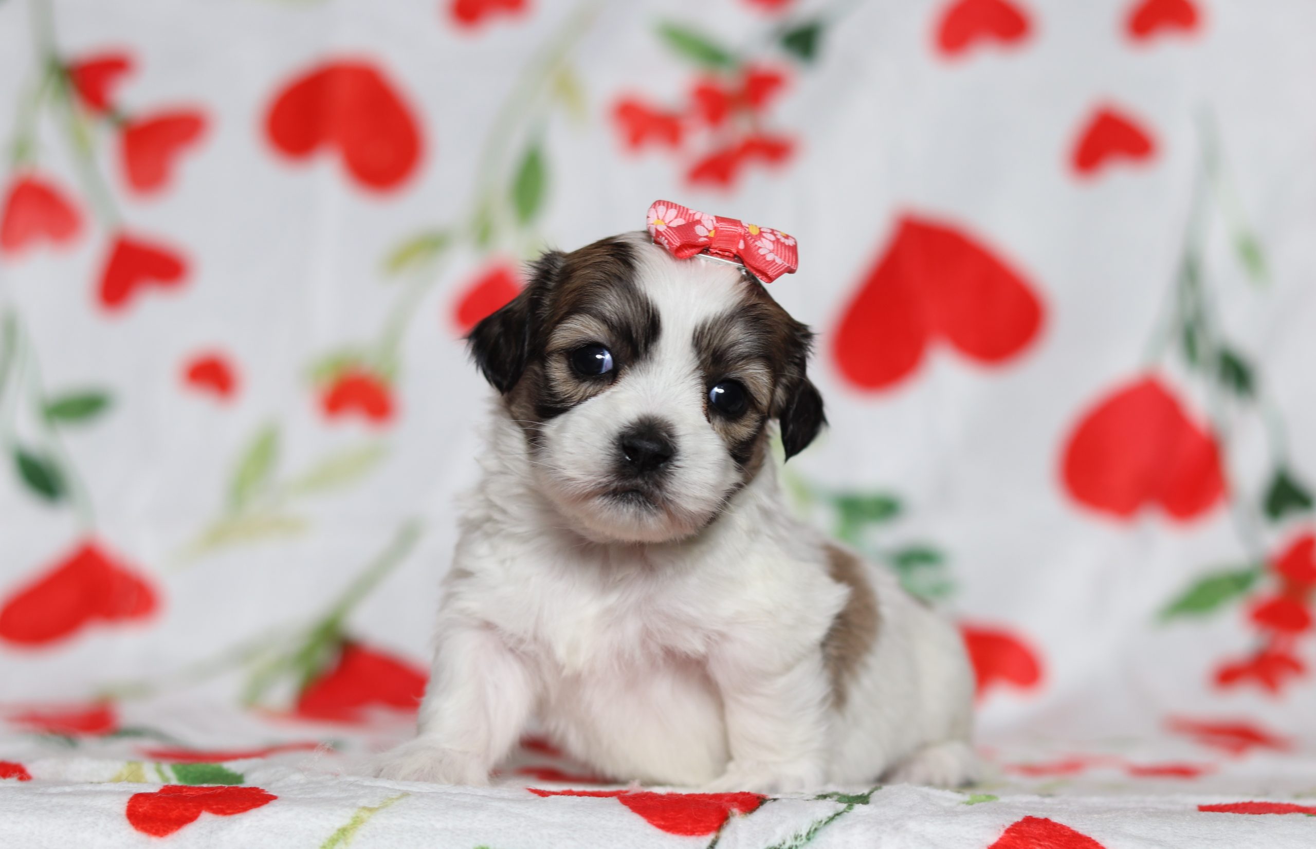 Meet Emerson, a sweet little Teddy Bear girl, who is charming and adorable! You’ll love Emerson’s happy personality as she explores new things. She will be sure to love you forever and always be right by your side. You’ll find so much delight in having her be a part of your family, She did great with (ENS) Early Neurological Stimulation.