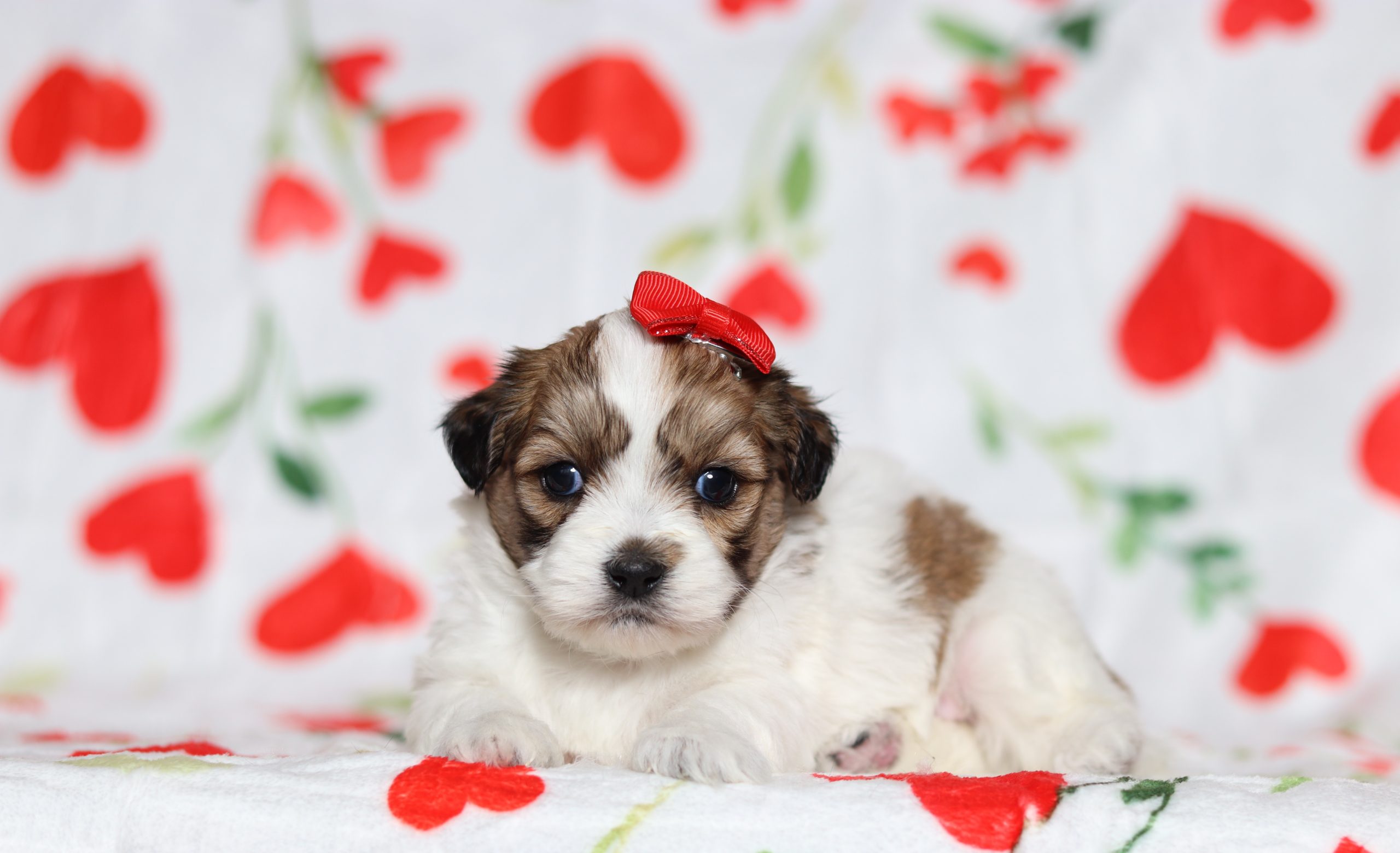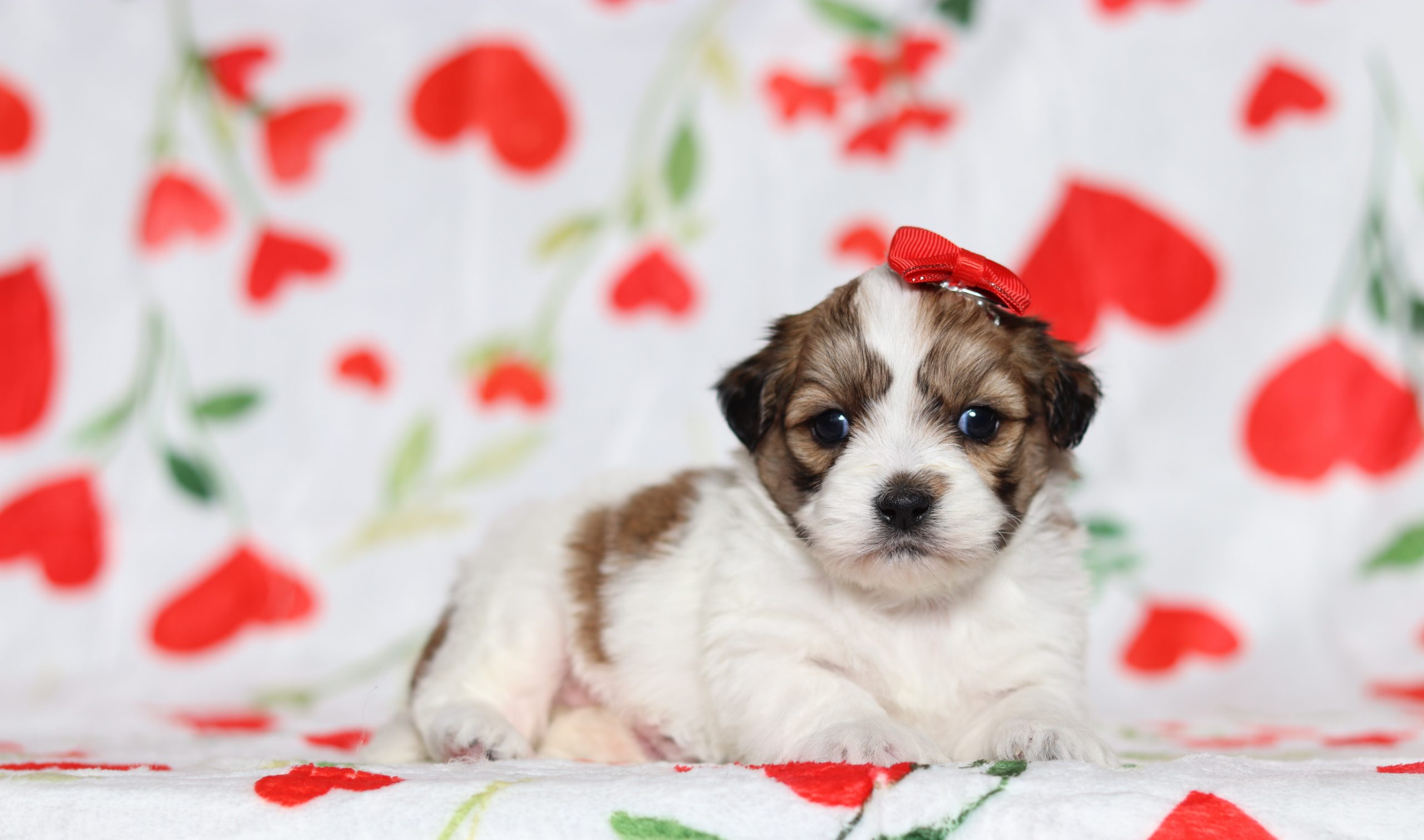 Emmy, a precious little Teddy Bear girl! She enjoys every minute of snuggling together! She loves being pampered and getting belly rubs! She did great with (ENS) Early Neurological Stimulation and enjoys playing with toys and running around! She is a friendly and adorable girl!
