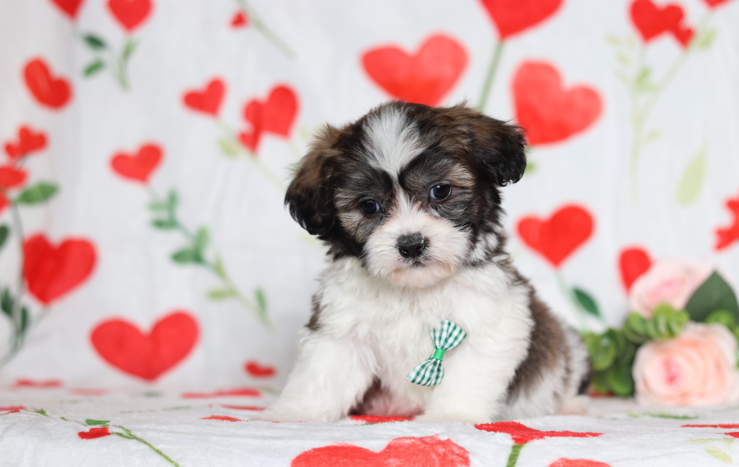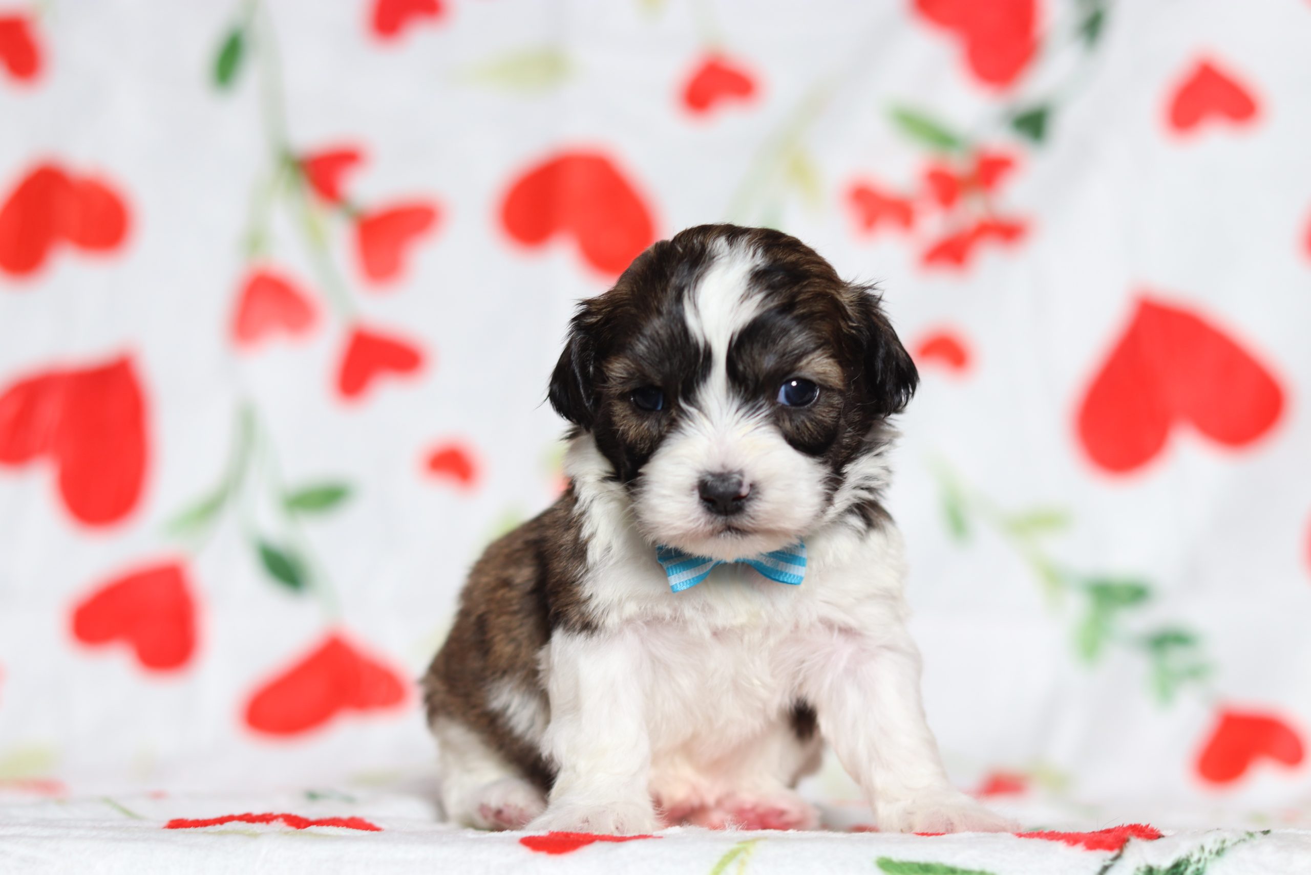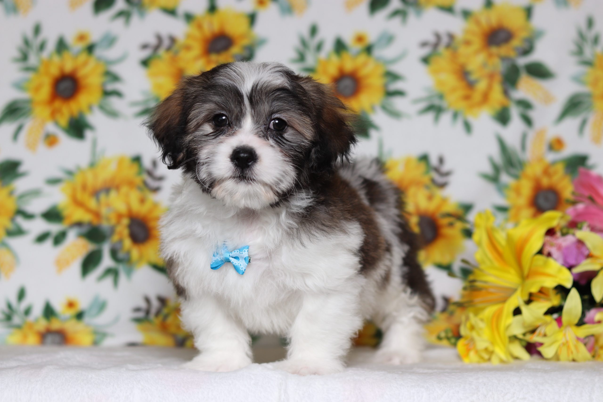 Hello, this is Engine! He’s a cute little Teddy Bear boy with a brown and white, soft, furry coat and 2 shining eyes. He loves to play with his siblings and also loves to be held and cuddled! He will be sure to shower you with lots of kisses!