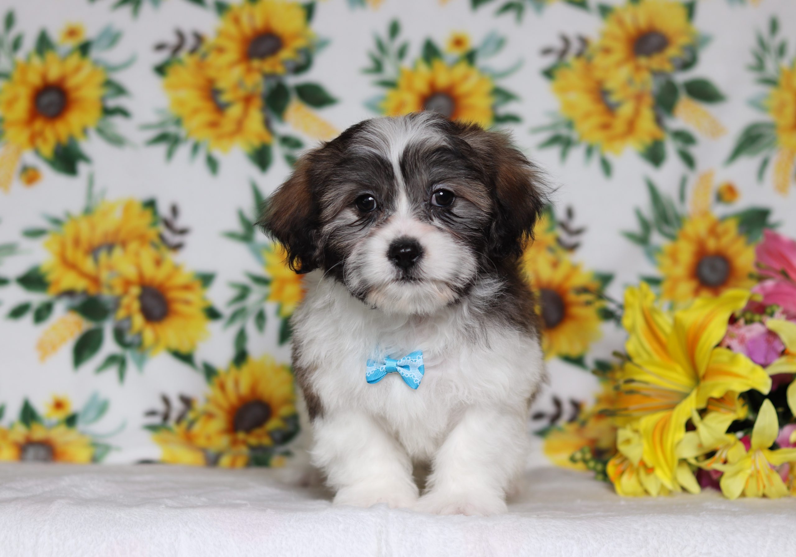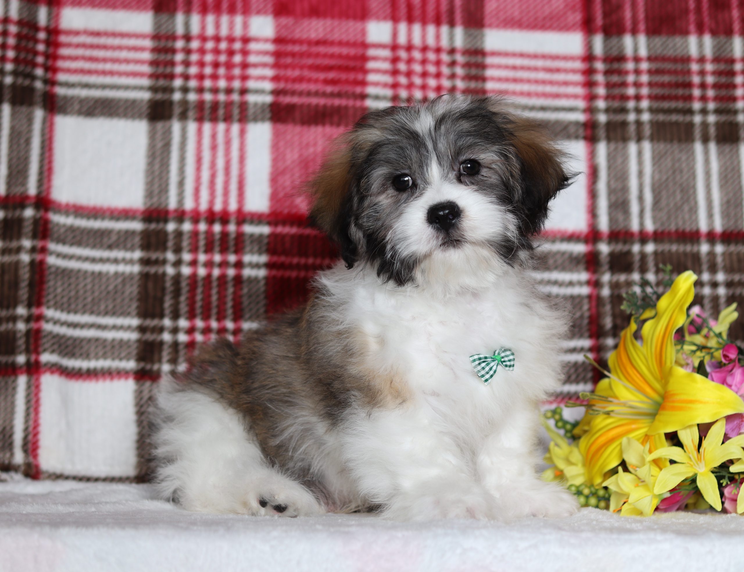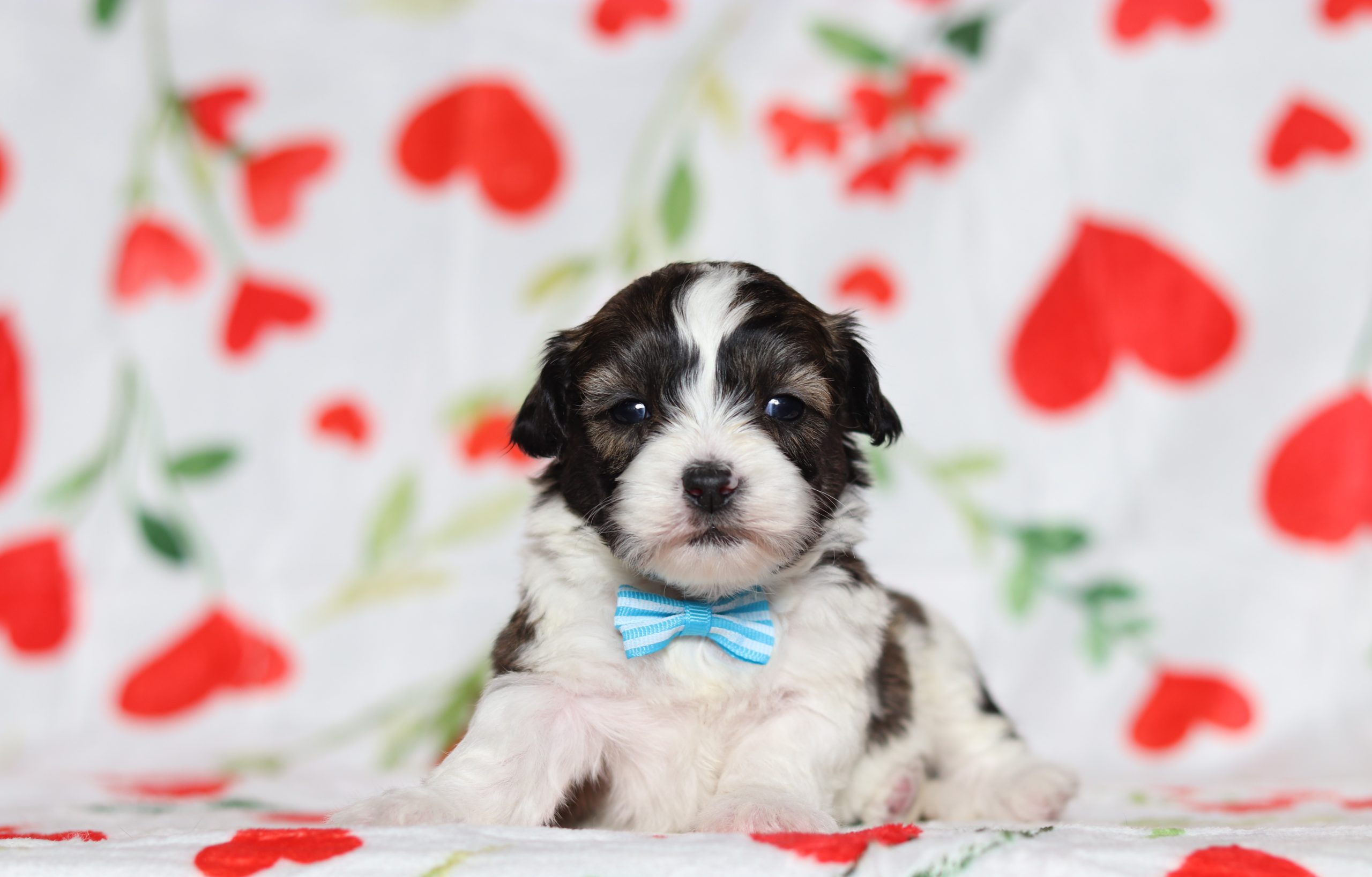 Hello, this is Engine! He’s a cute little Teddy Bear boy with a brown and white, soft, furry coat and 2 shining eyes. He loves to play with his siblings and also loves to be held and cuddled! He will be sure to shower you with lots of kisses!