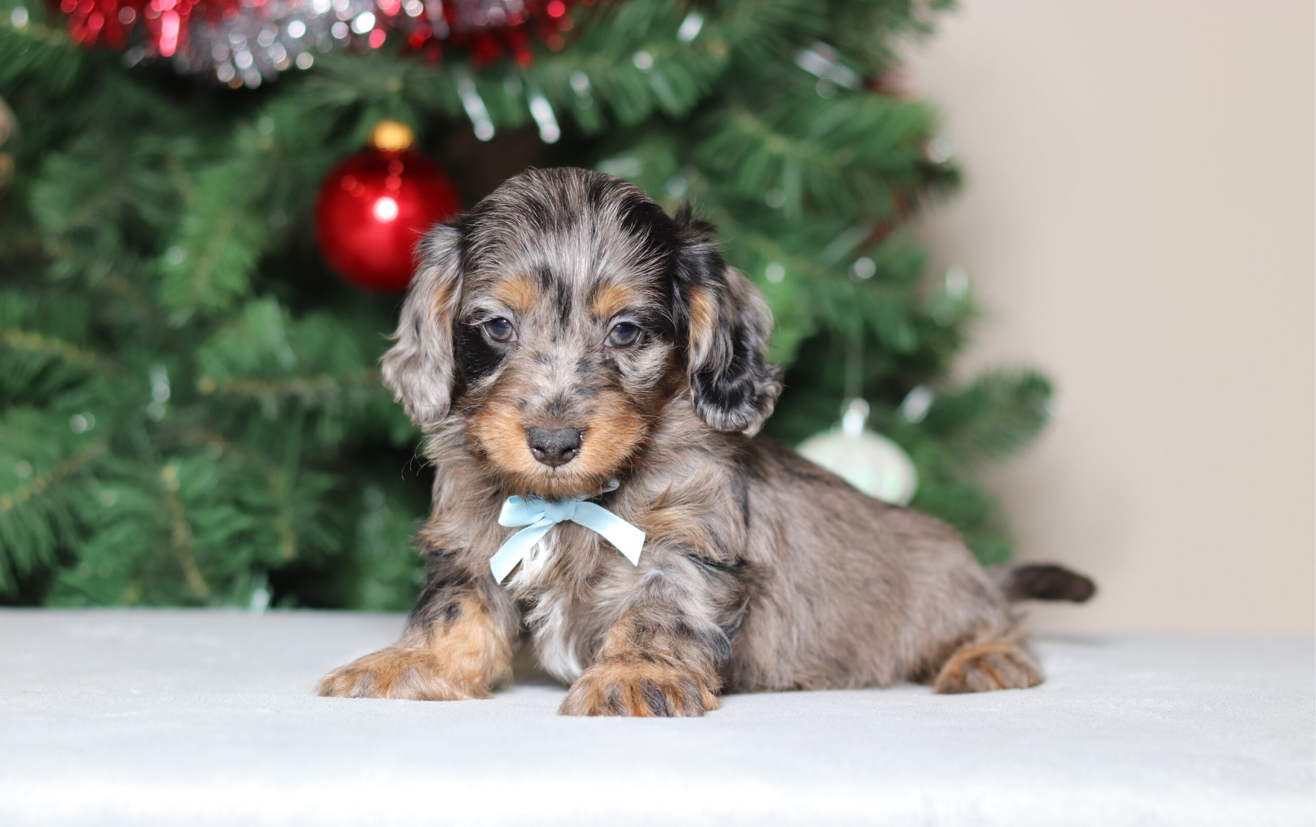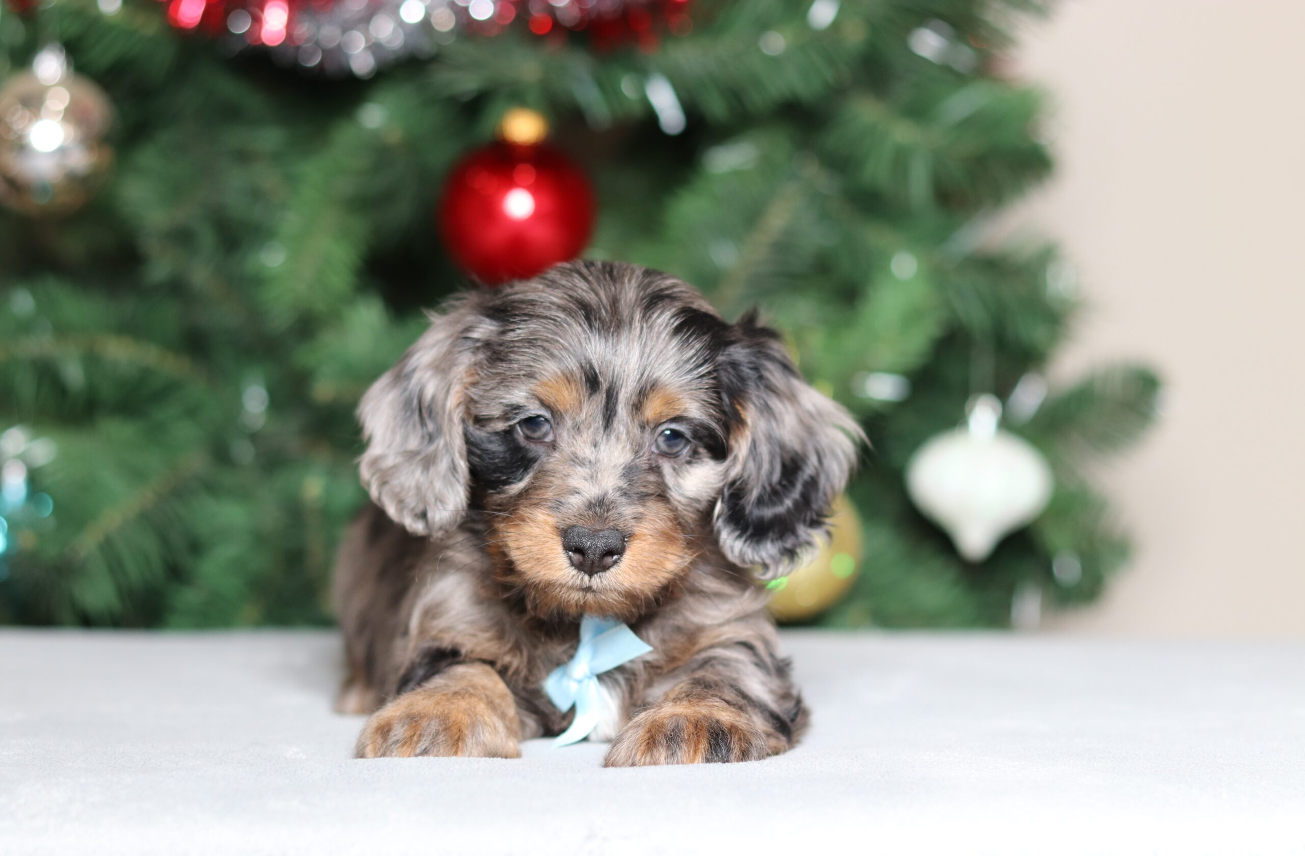 Eric is a happy go lucky litle guy who loves being held and getting lots of attention! He has a nice blue merle coat with tan markings! He would love to be your best friend and most loyal companion! He is the perfect boy for you!