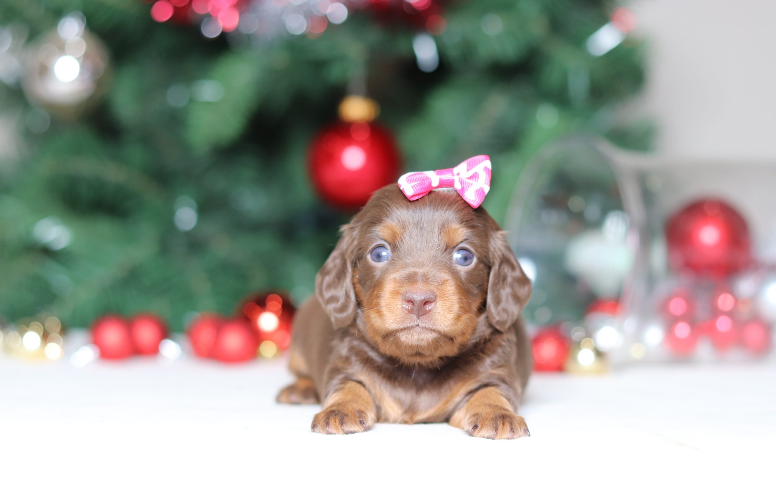 Gala, the Longhaired Mini dachshund enjoys getting all the attention she can and loves to play with her toys. He did great with his (ENS) Early Neurological Stimulation, she is definitly a joy to have around. She is happy to please, just a super friendly little girl!