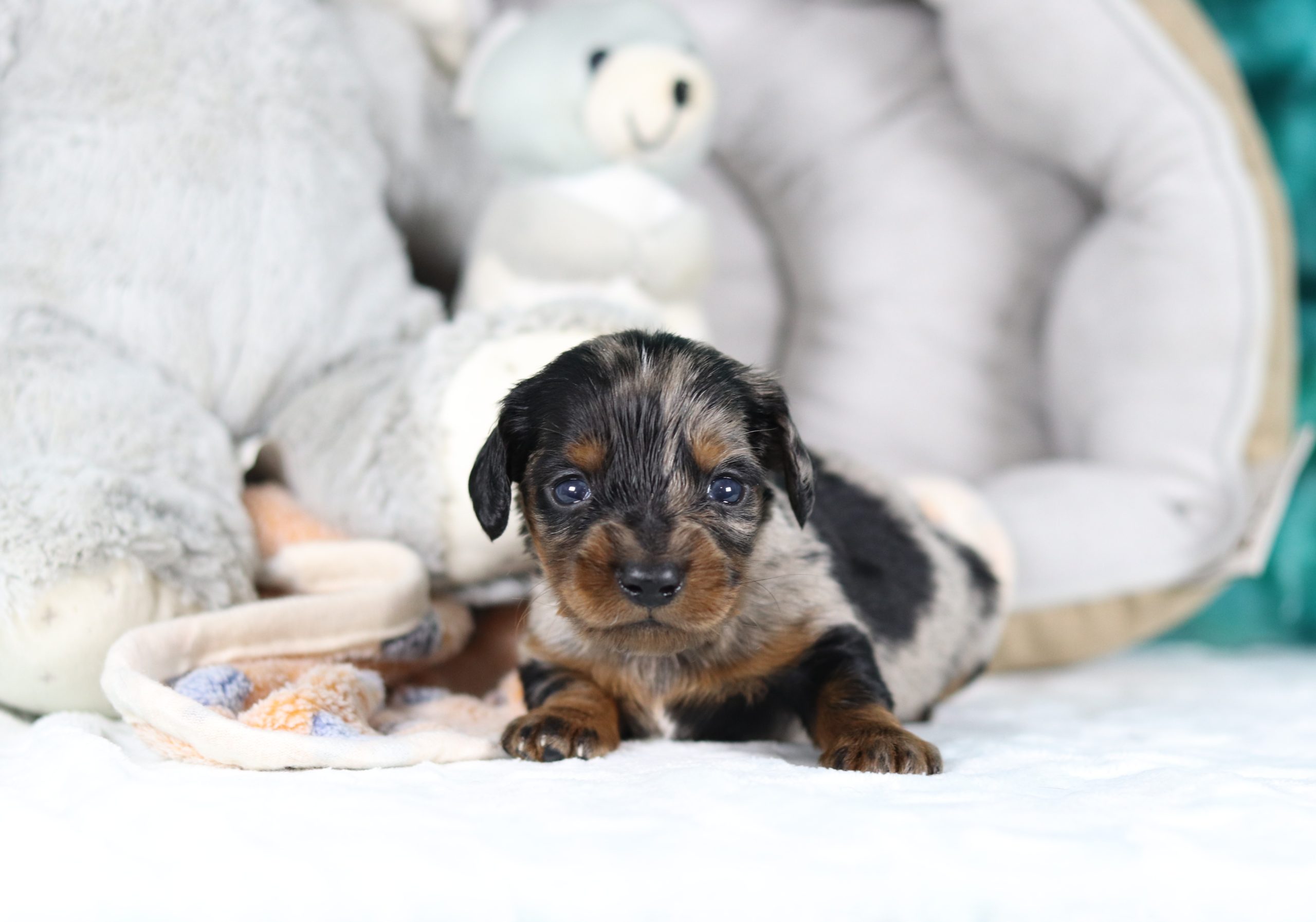 Geyser, is a happy go lucky little guy who loves being held and getting lots of attention! He is short haired and has a nice, shorthaired, blue merle coat with tan markings! He would love to be your best friend and most loyal companion! He is the perfect boy for you!