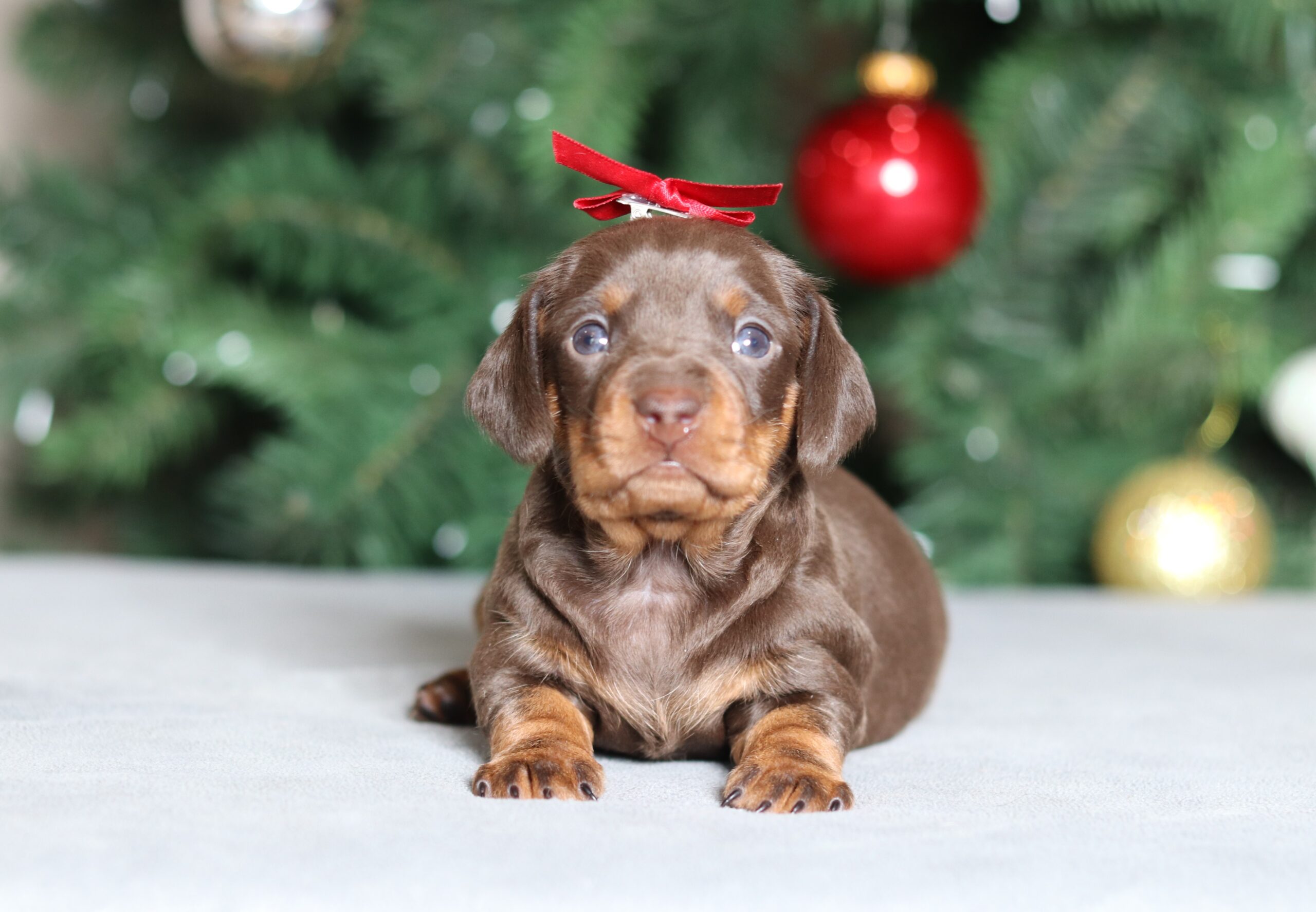 Glenda, the shorthaired mini dachshund is very caring and sweet! She is such a cheerful little girl a great companion to her littermates! Her temperament is wonderful! She is eager to please and a bundle of love!