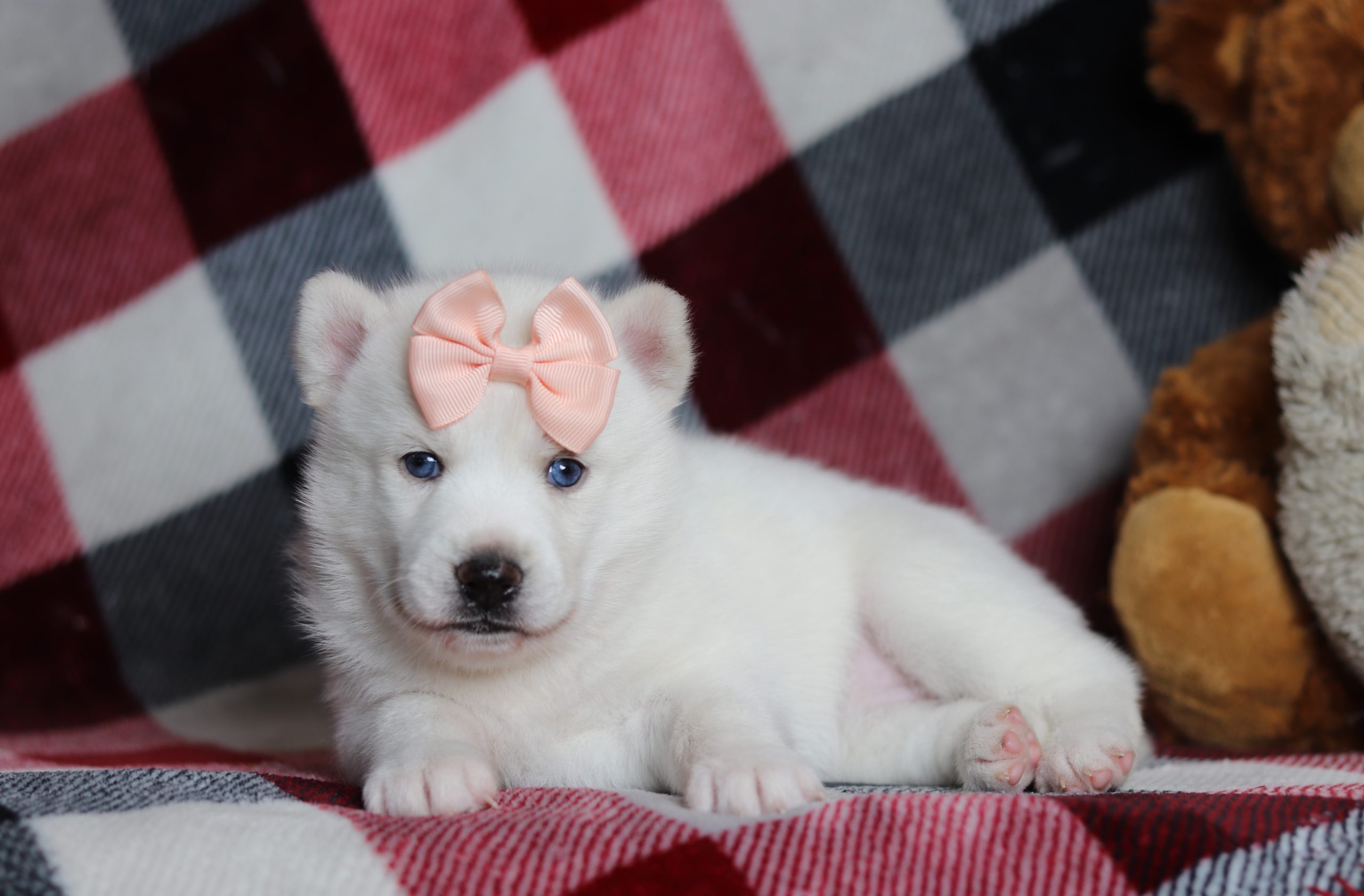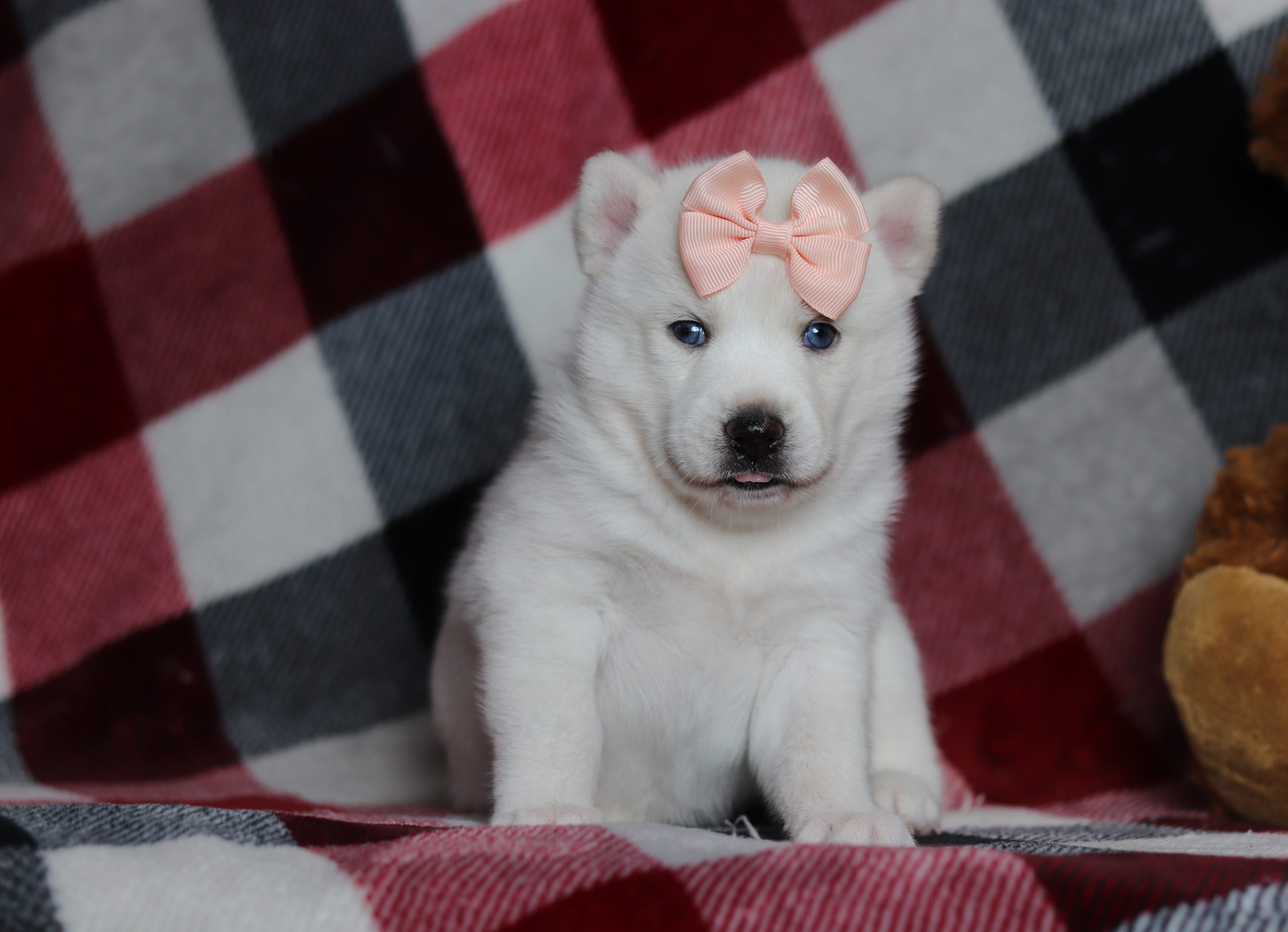 Grace, the pomsky, girl is very alert and won’t miss a beat! She is a happy go lucky little girl and loves excitement! She has a beautiful fluffy hair coat! Her caring eyes and cute little nose will be sure to steal your heart! Enjoys playtime and also loves to be held! She’s an all around cutie!