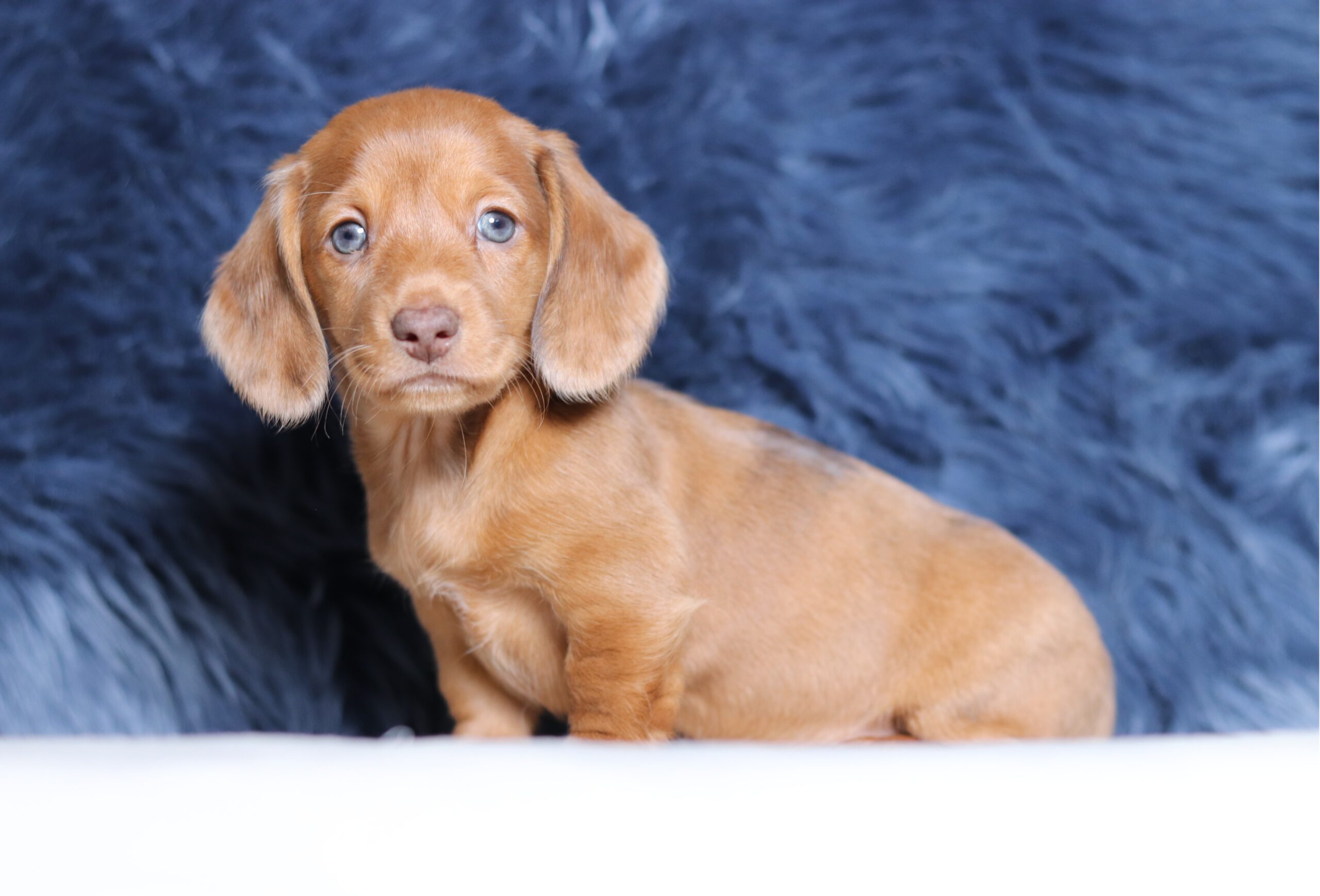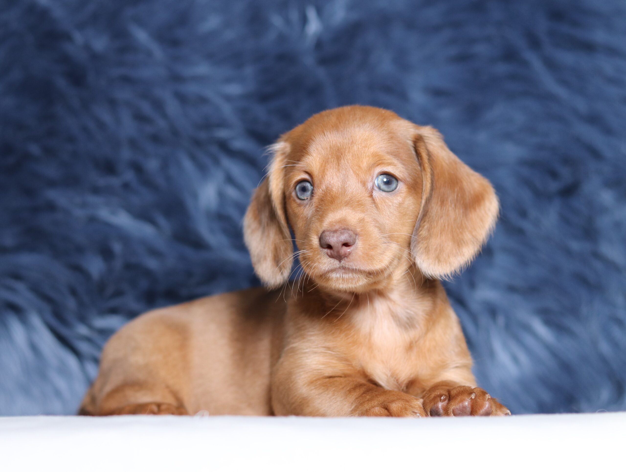 Grant the Dachshund enjoys getting all the attention he can and loves to play with his toys. He is short haired and has a sable merle coat. He did great with his (ENS) Early Neurological Stimulation, he is definitly a joy to have around. He is happy to please just a super friendly little guy!