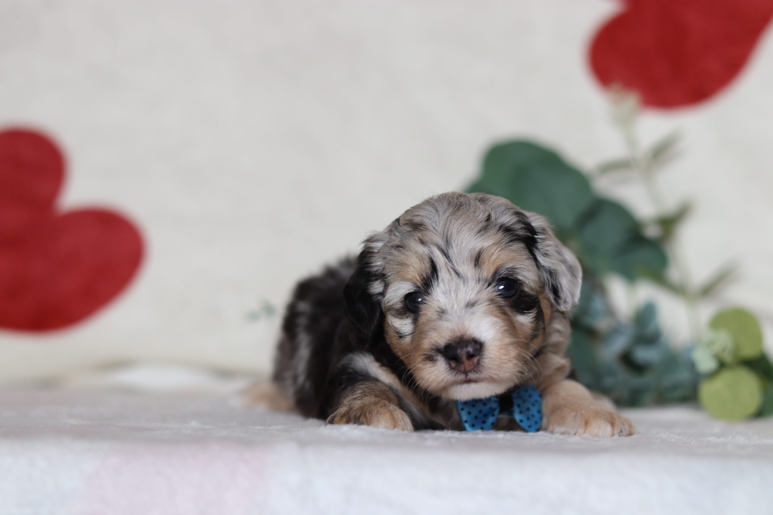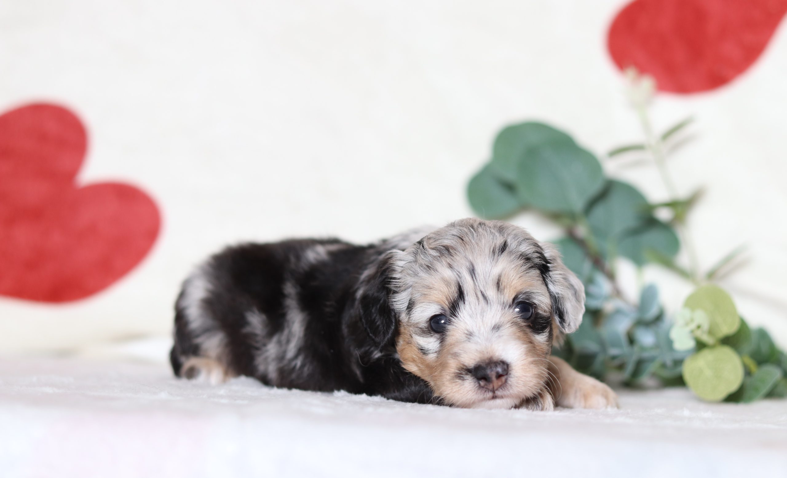 Grant,the Doxypoo, enjoys getting all the attention he gets and loves to play with his toys. He did great with his (ENS) Early Neurological Stimulation. He is definitly a joy to have around. He is happy to please, just a super friendly little guy!