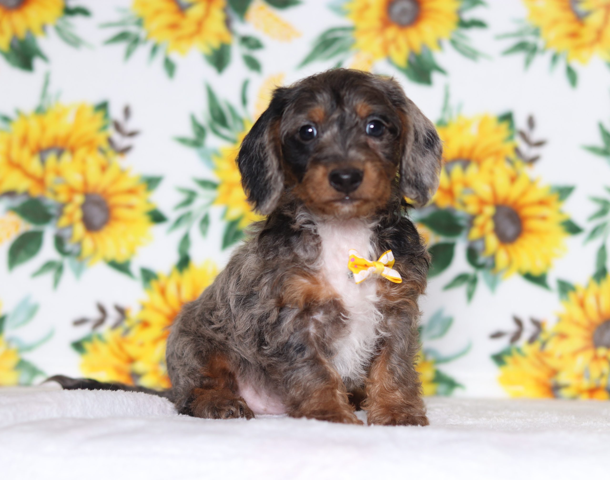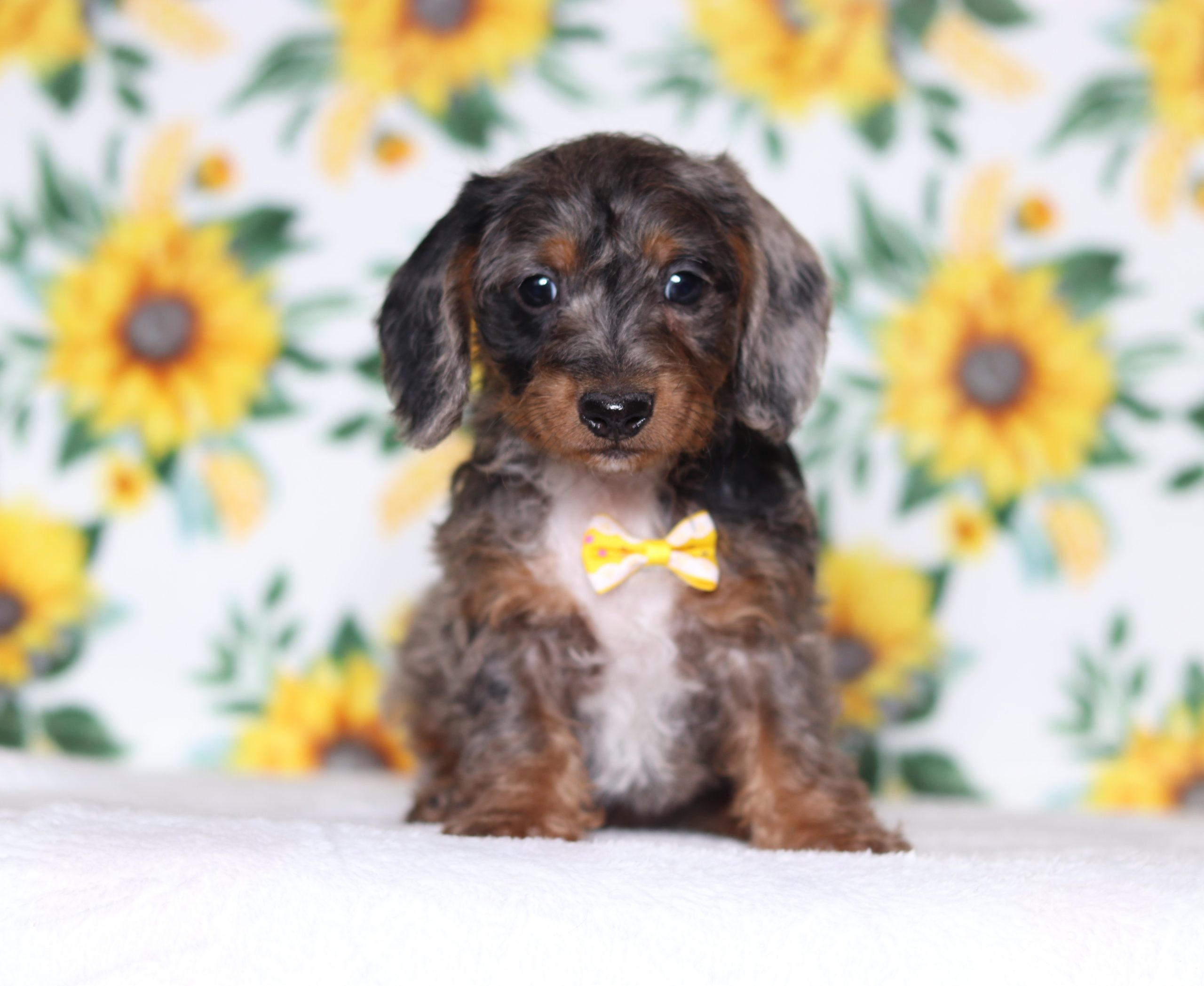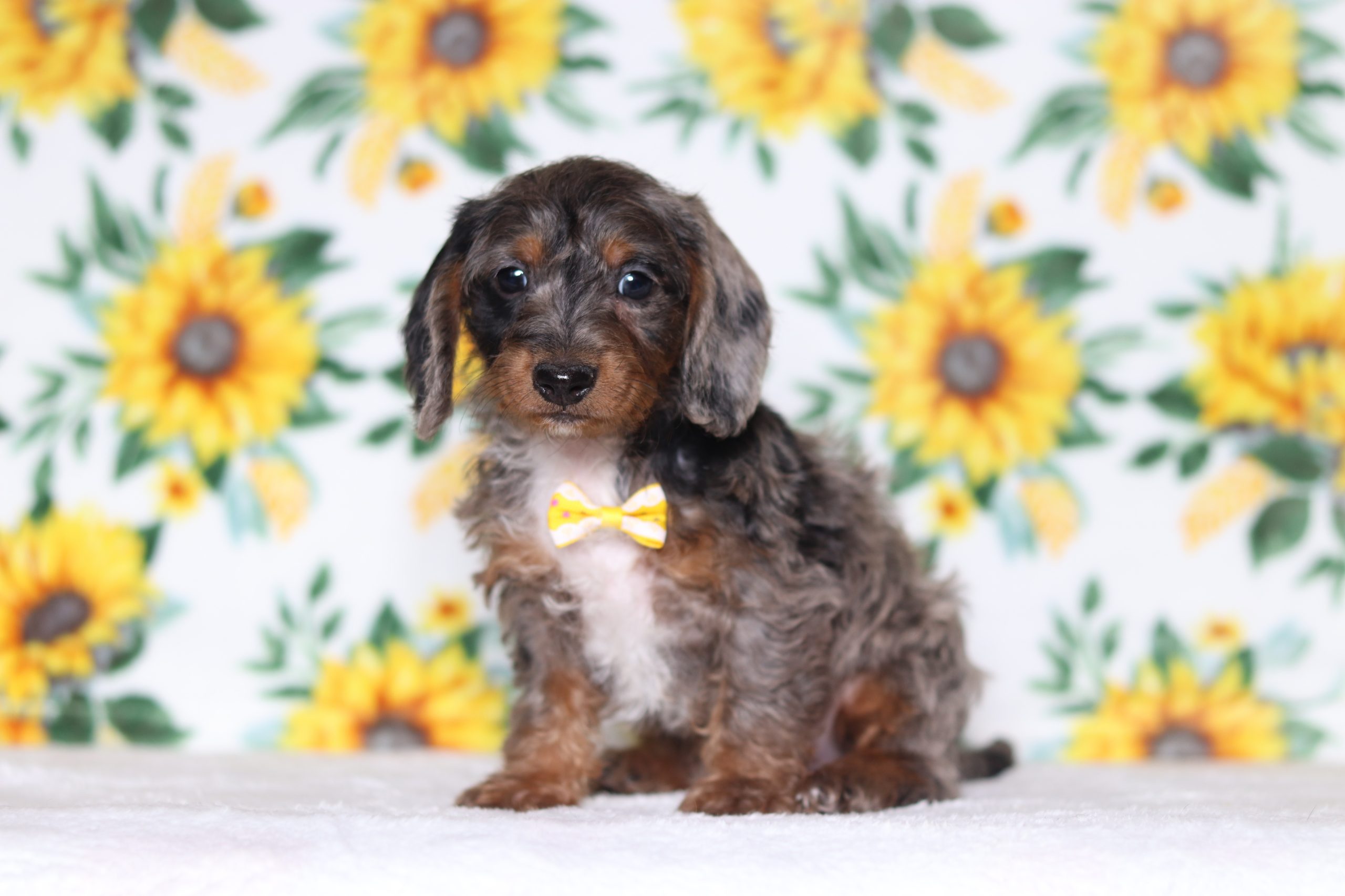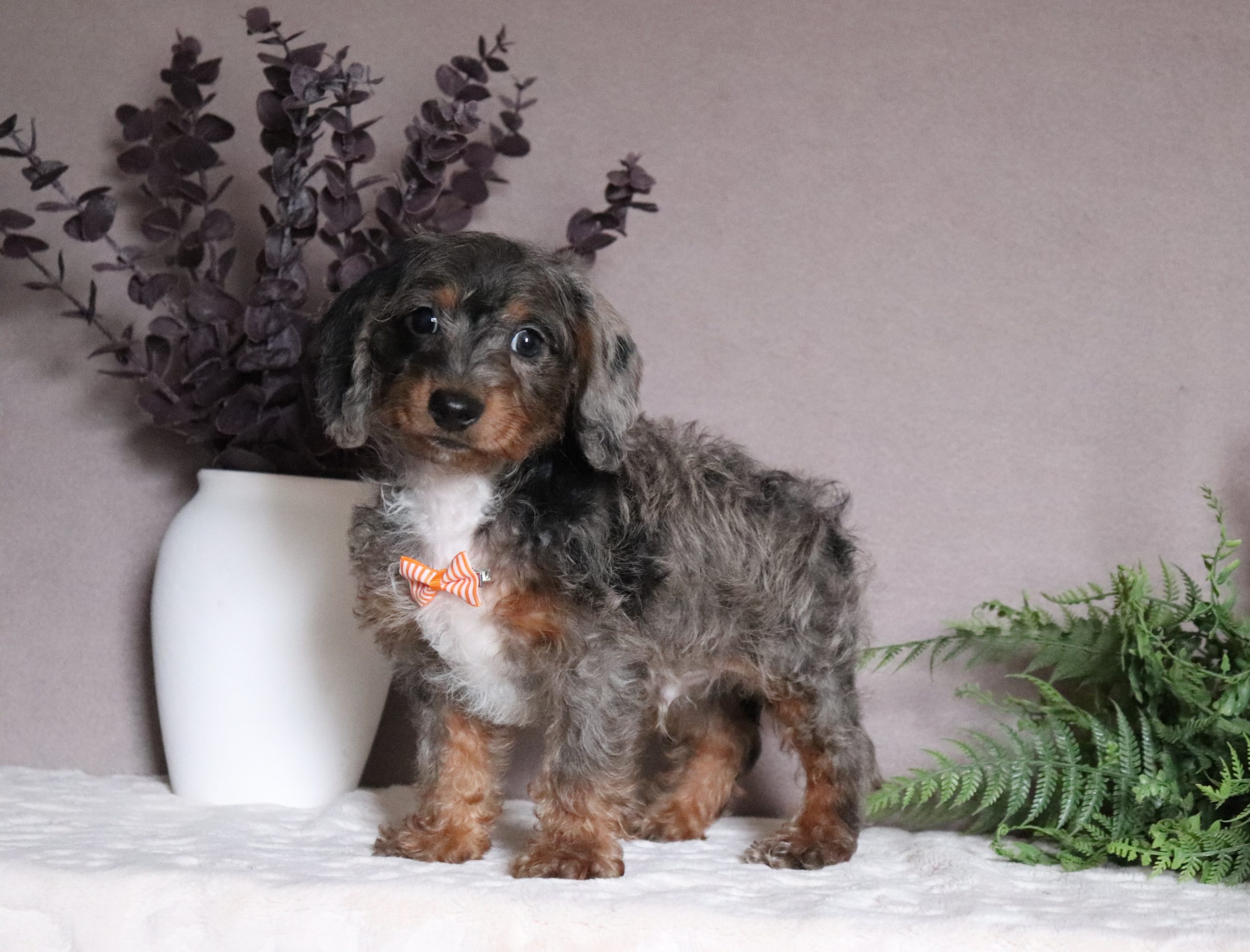 Greg a precious little Doxypoo boy! He’s got a gorgeous blue merle hair coat! He enjoys every minute of snuggling together! He loves being pampered and getting belly rubs! He did great with (ENS) Early Neurological Stimulation and enjoys playing with toys and running around! He is a friendly and adorable little guy!