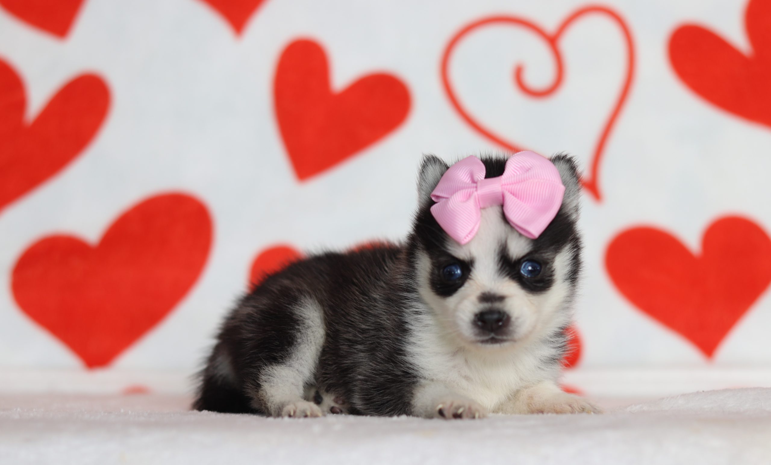 Hello, this is Hadassah! She’s a cute little pomsky girl with a  soft, furry coat and 2 shining eyes. She loves to play with her siblings and also loves to be held and cuddled! She will be sure to shower you with lots of kisses!