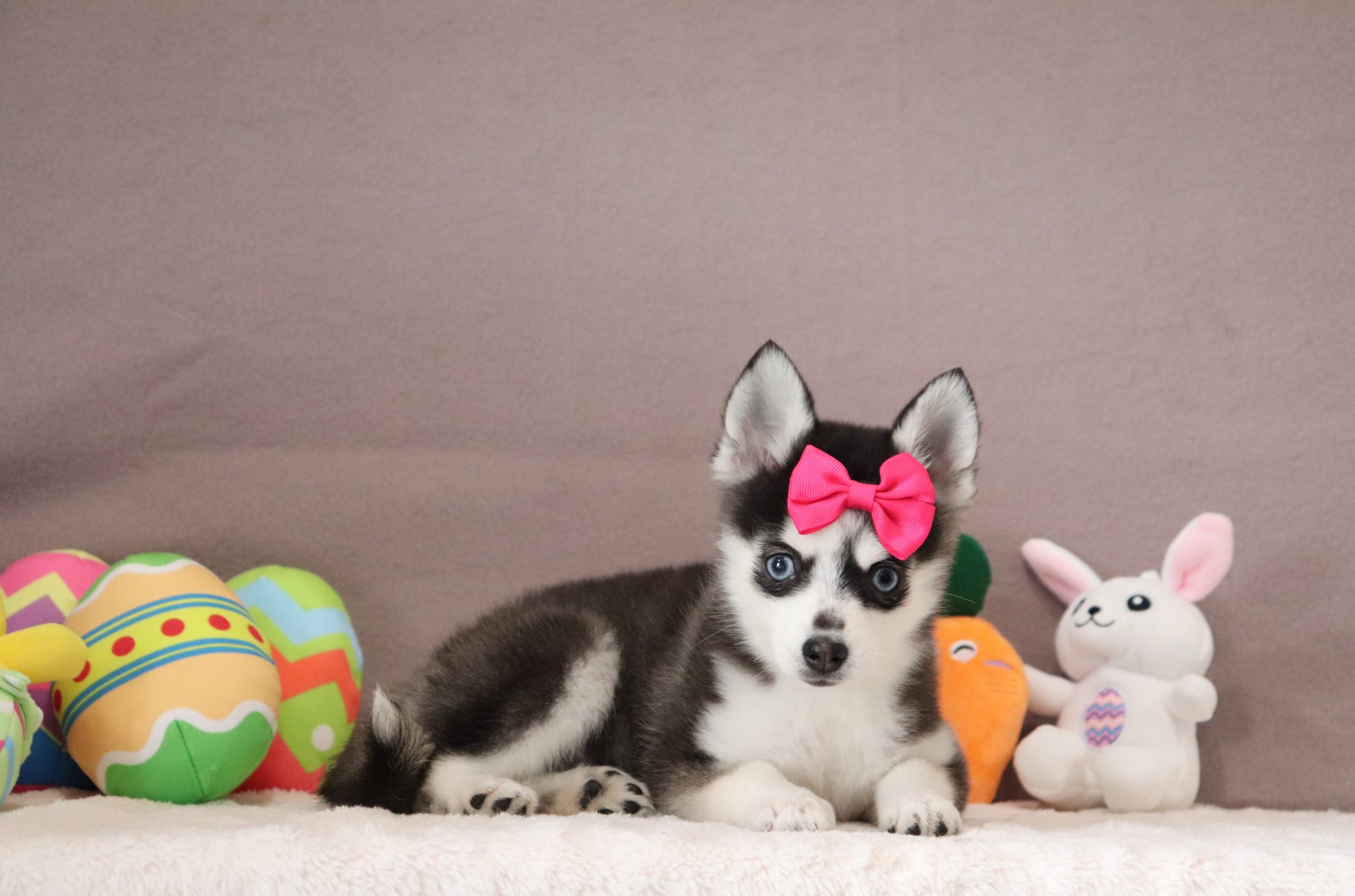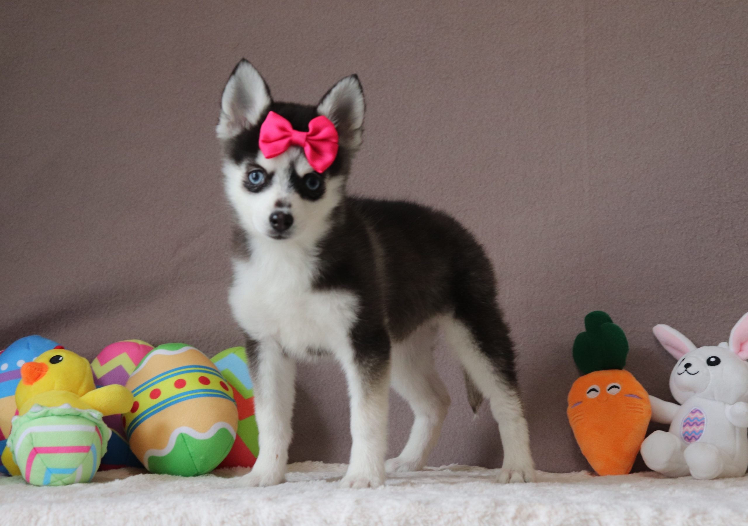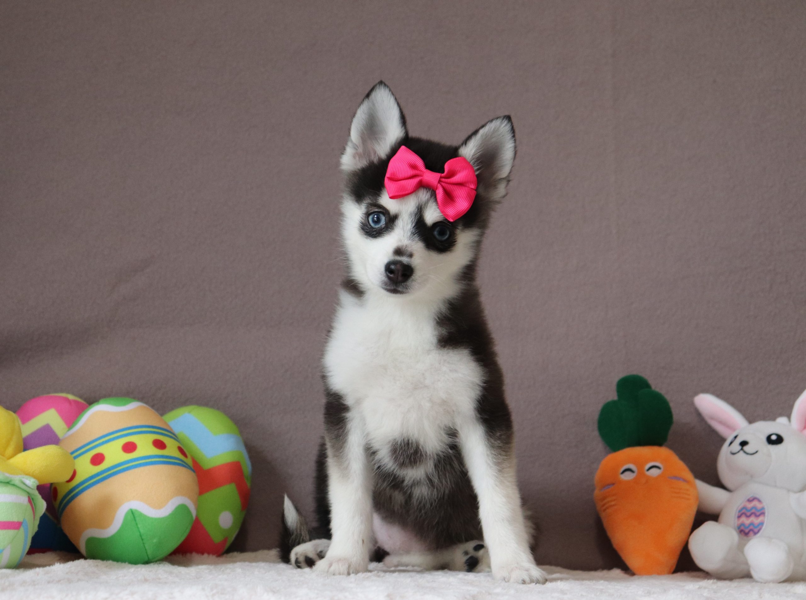 Hello, this is Hadassah! She’s a cute little pomsky girl with a soft, furry coat and 2 shining eyes. She loves to play with her siblings and also loves to be held and cuddled! She will be sure to shower you with lots of kisses!