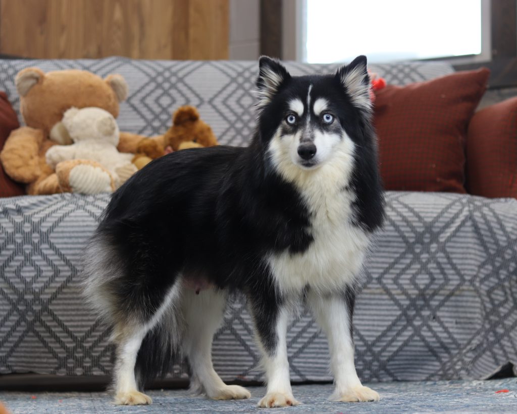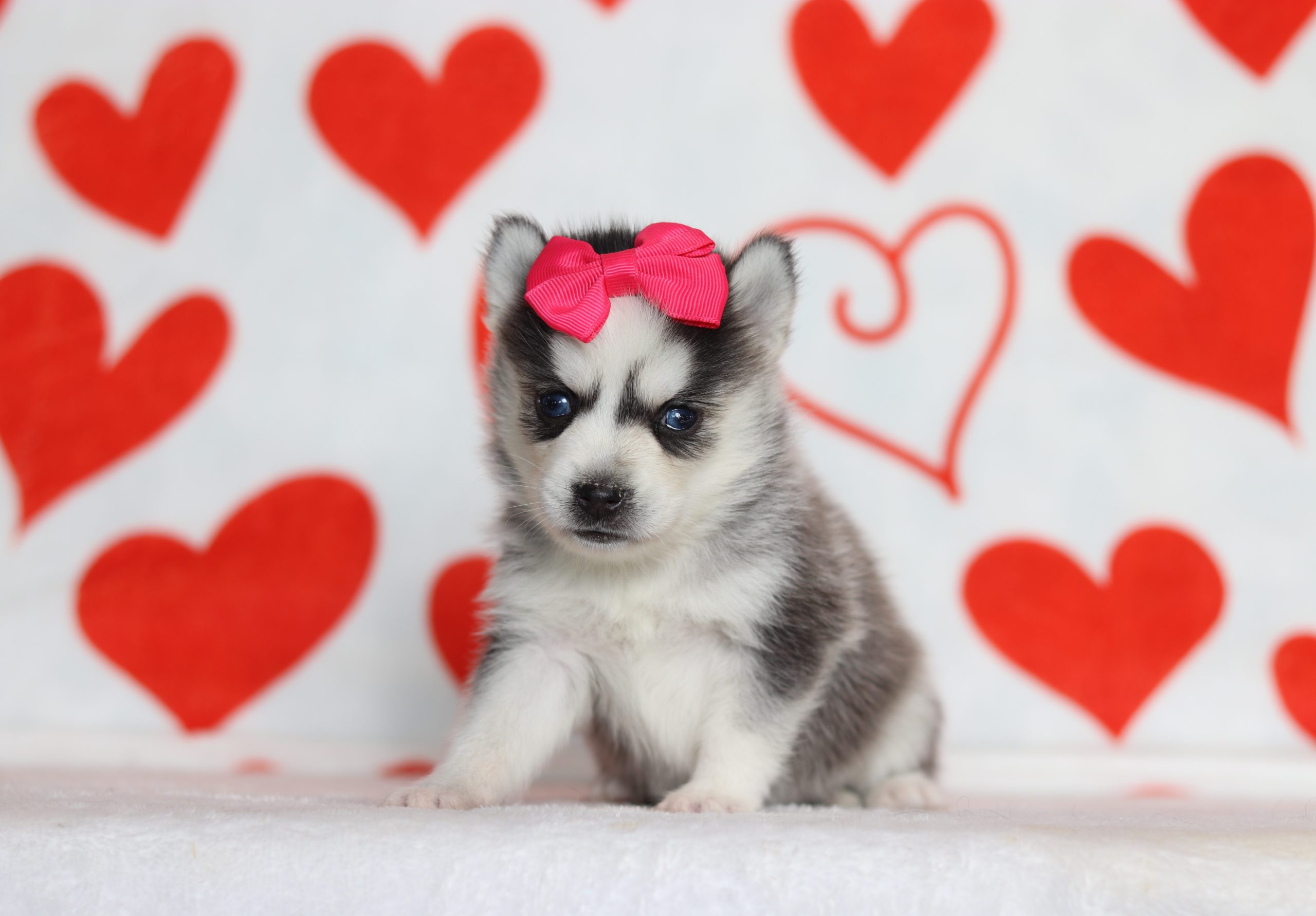Meet Haven, a sweet little Pomsky girl ,who is charming and adorable! You’ll love Haven’s happy personality as she explores new things. She will be sure to love you forever and always be right by your side. You’ll find so much delight in having her be a part of your family, She did great with (ENS) Early Neurological Stimulation.