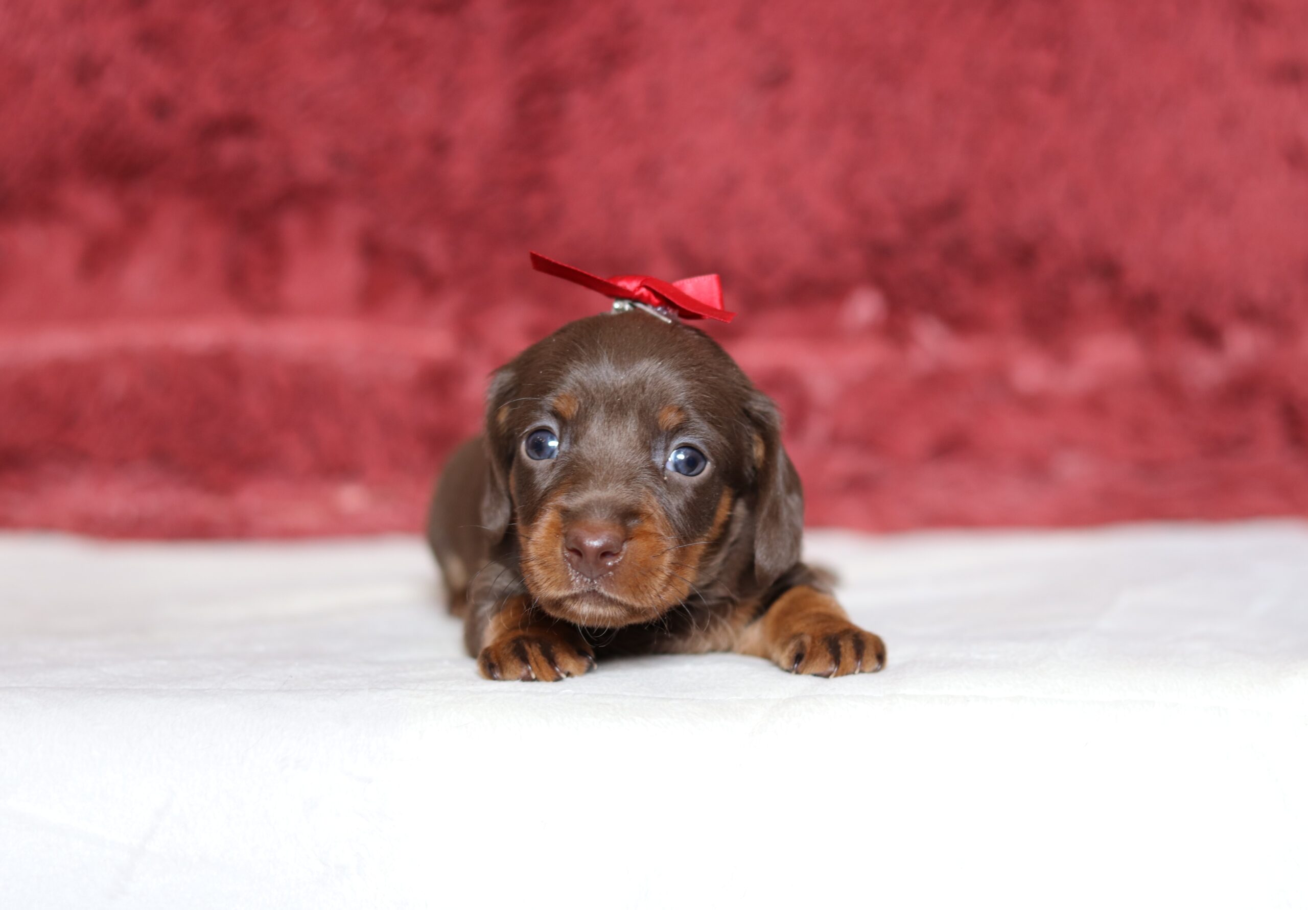 Hi there! This is Hazel a sweet little short haired Dachshund girl! She has a nice chocolate and tan coat! She is happiest when she is with you, snuggling by your feet or cuddling on your lap, that is just what she loves! She has a great temperament and loves to play with kids!