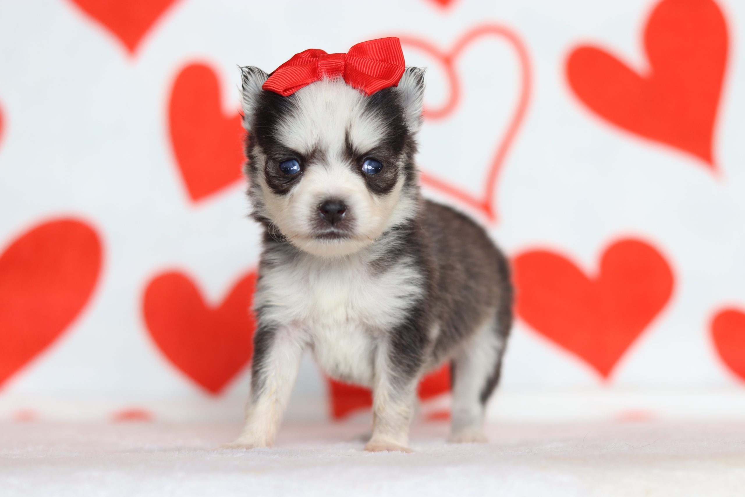 Helena,the Pomsky enjoys getting all the attention she can and loves to play with her toys. She did great with his (ENS) Early Neurological Stimulation, she is definitly a joy to have around. She is happy to please just a super friendly little girl!