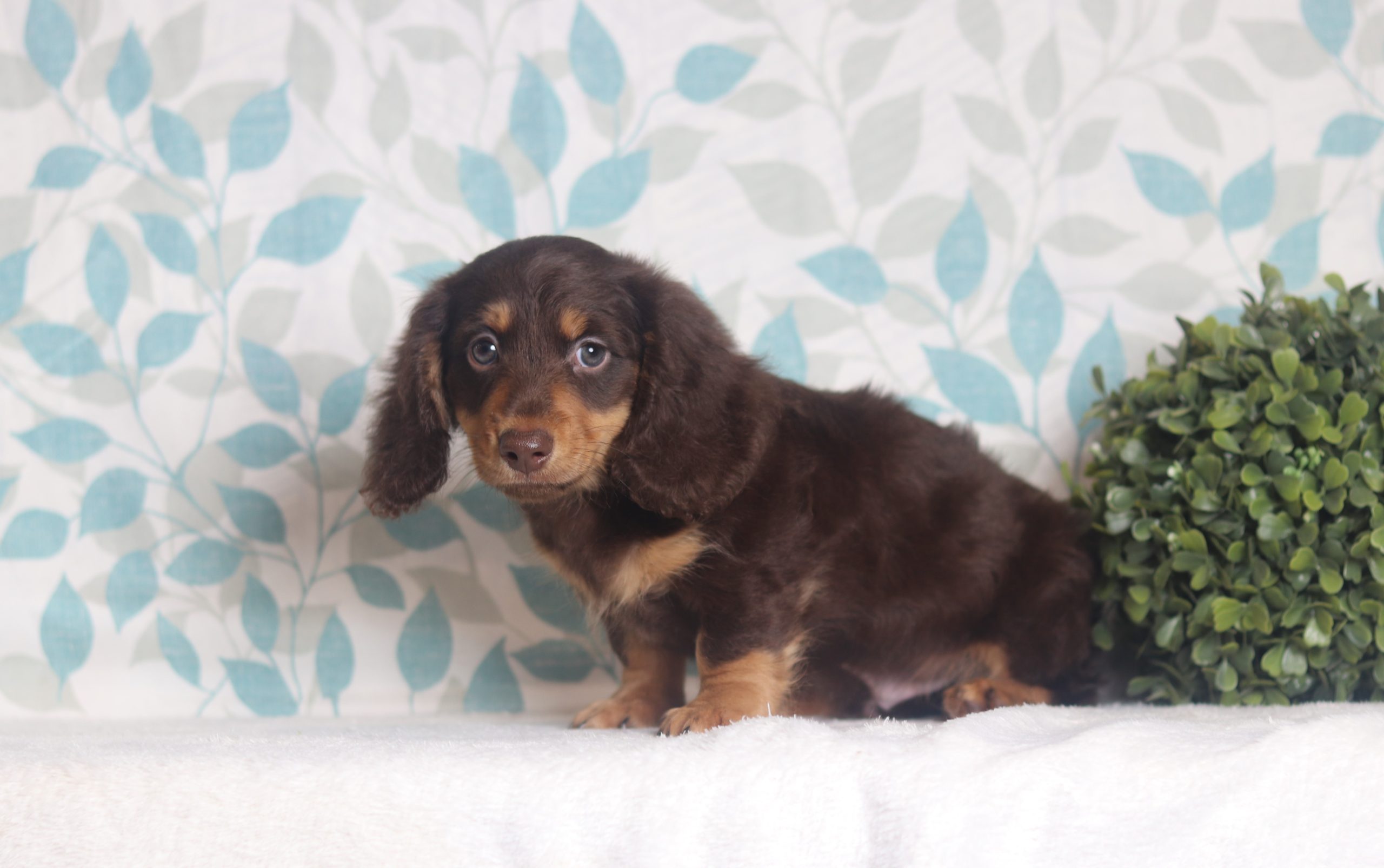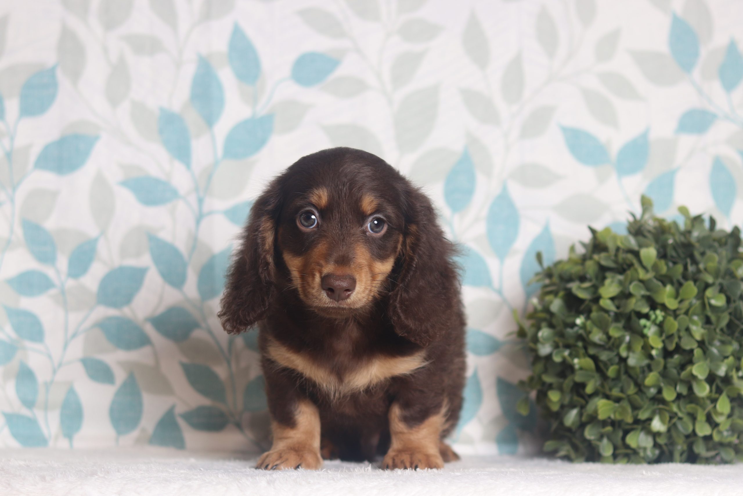 Jederik, the longhaired mini dachshund boy, is very alert and won’t miss a beat! He is a happy go lucky little guy and loves excitement! He has a beautiful chocolate/tan hair coat! His caring eyes and cute little nose will be sure to steal your heart! Enjoys playtime and also loves to be held! He’s an all around cutie!