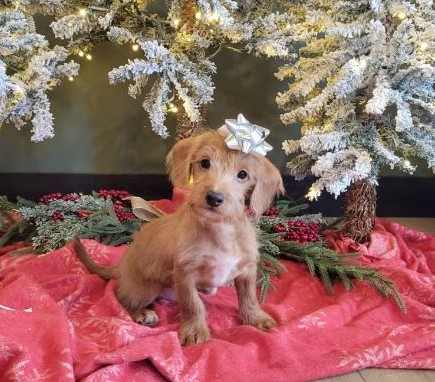 Larson the Doxidoodle boy is very alert and won’t miss a beat! He is a happy go lucky little guy and loves excitement! He has a beautiful cream colored hair coat! His caring eyes and cute little nose will be sure to steal your heart! Enjoys playtime and also loves to be held! He’s an all around cutie!
