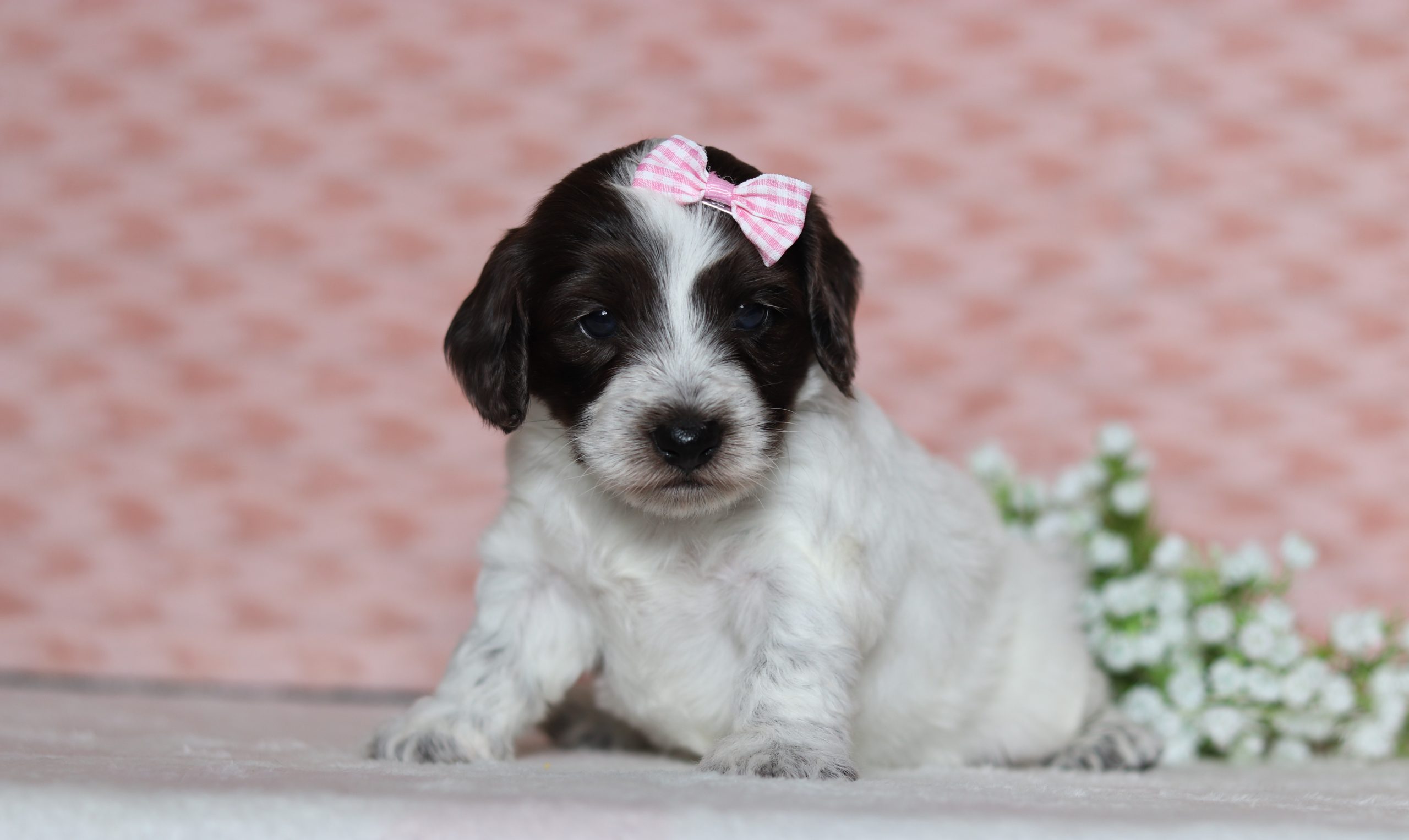 Leona, a precious little Doxypoo girl! She enjoys every minute of snuggling together! She loves being pampered and getting belly rubs! She did great with (ENS) Early Neurological Stimulation and enjoys playing with toys and running around! She is a friendly and adorable girl!