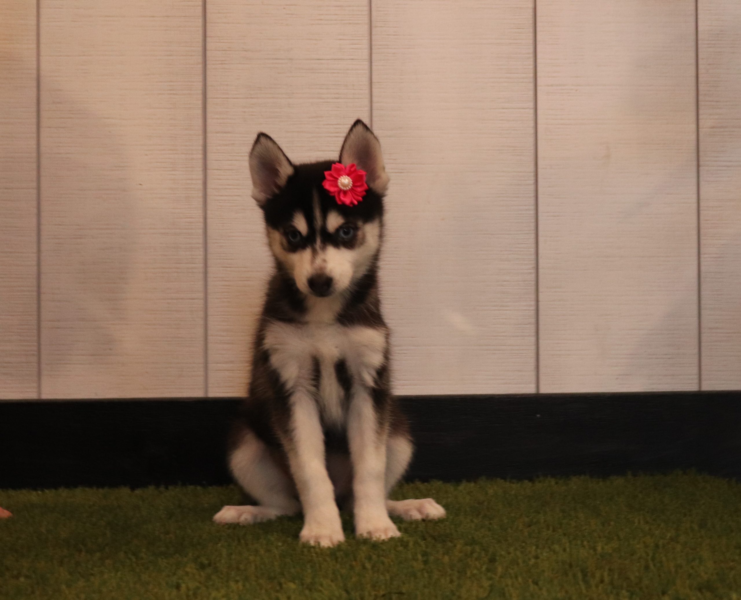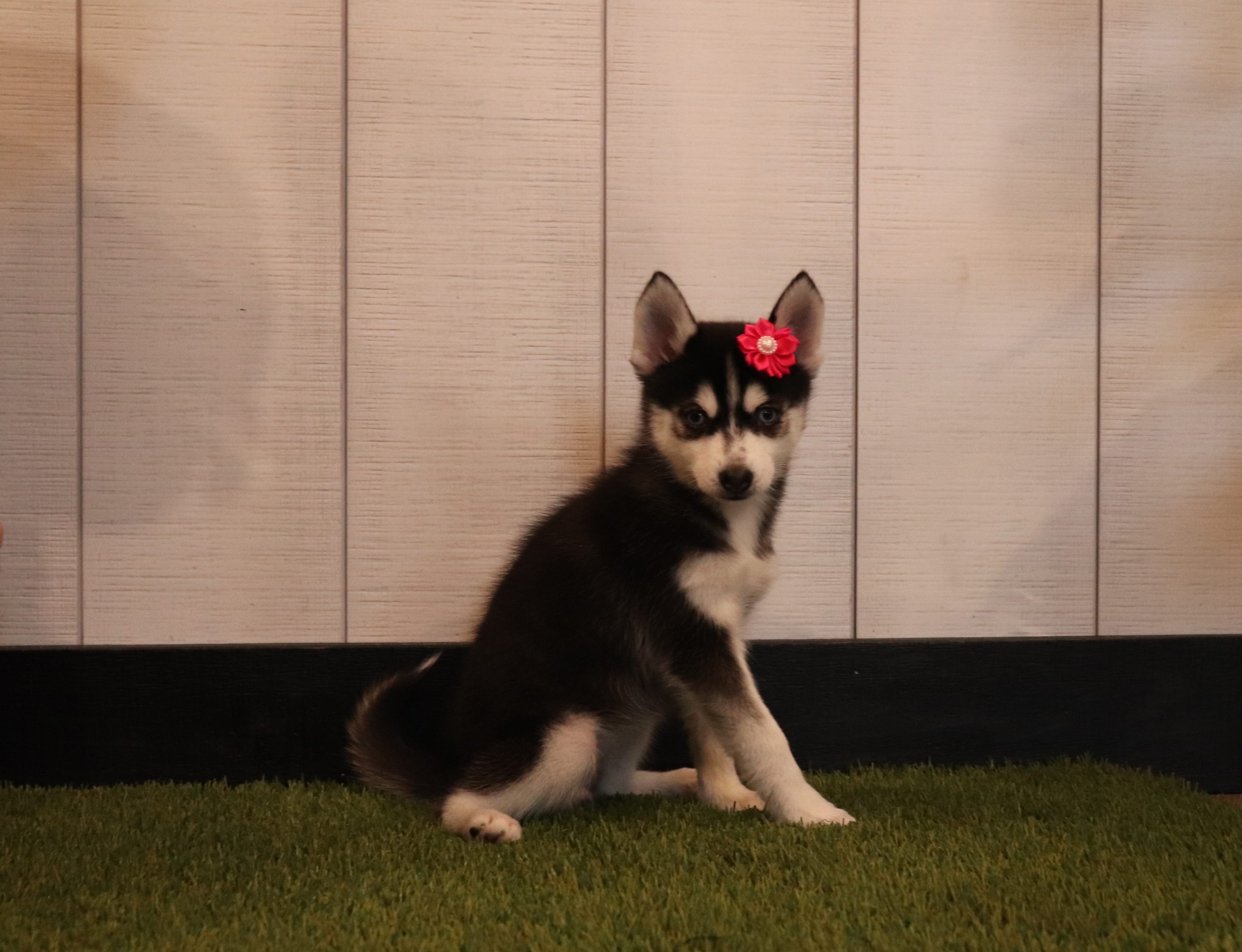 Lori the Pomsky is very caring and sweet! She is such a cheerful little girl! A great companion to her littermates! Her temperament is wonderful! She is eager to please and a bundle of love!