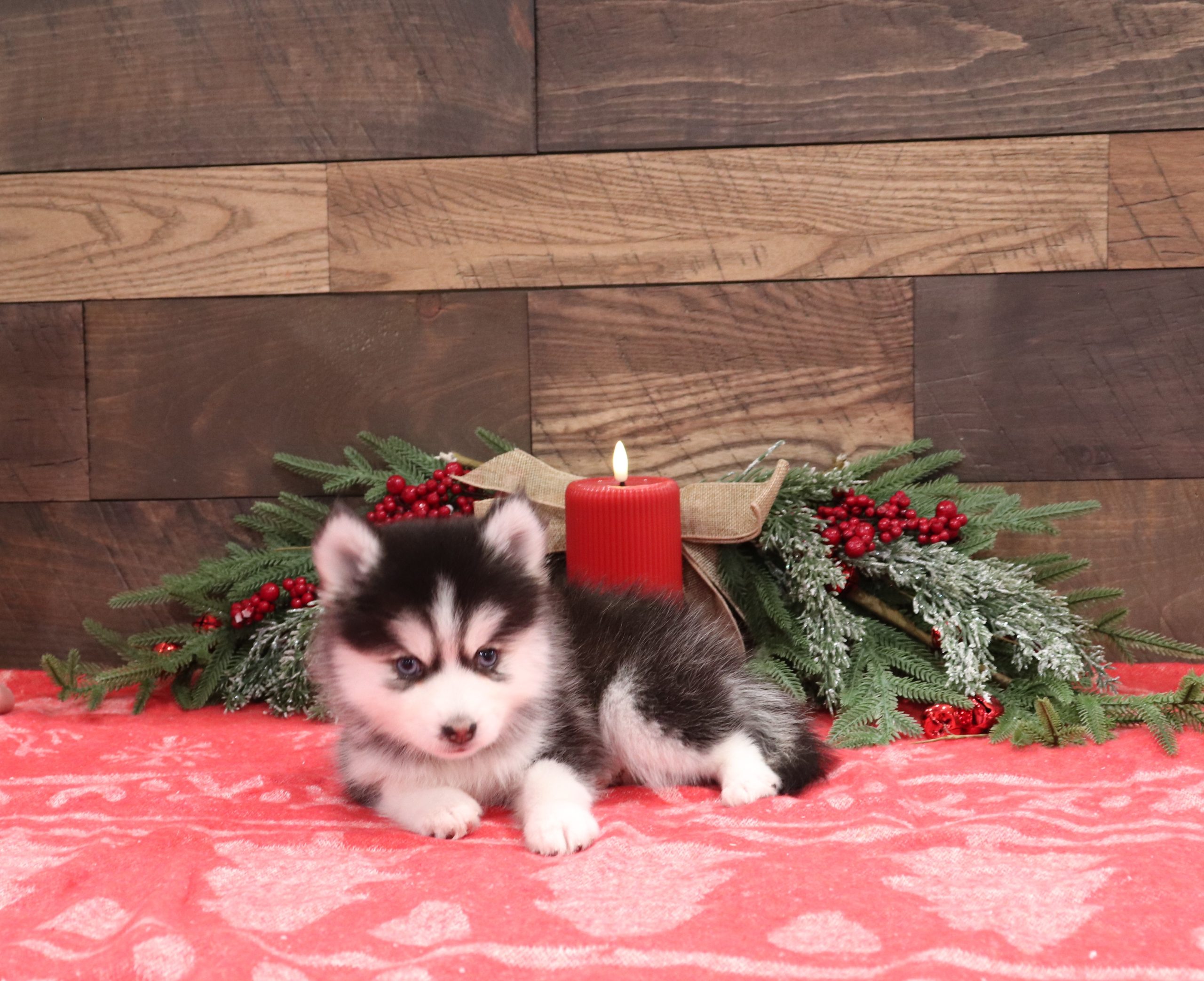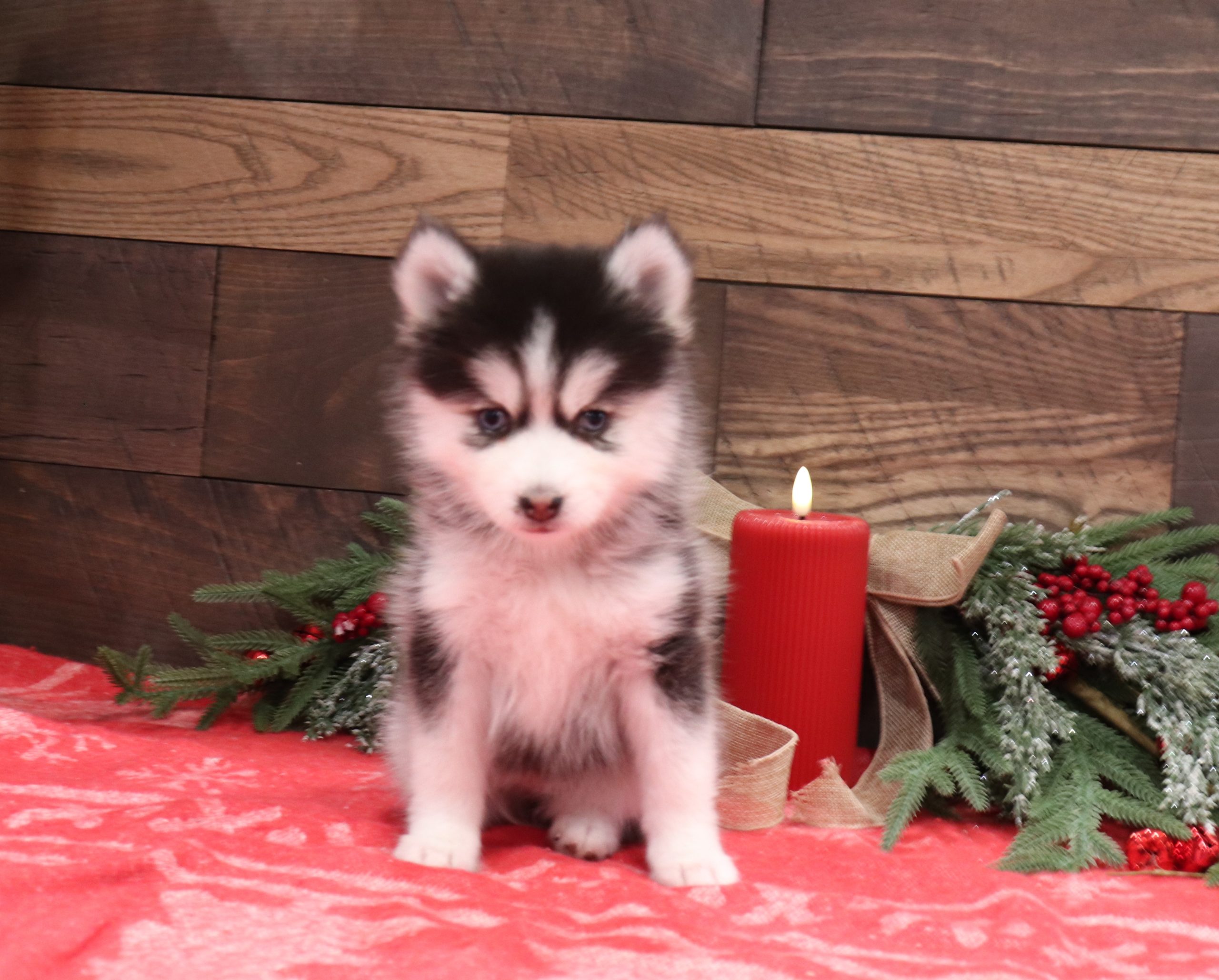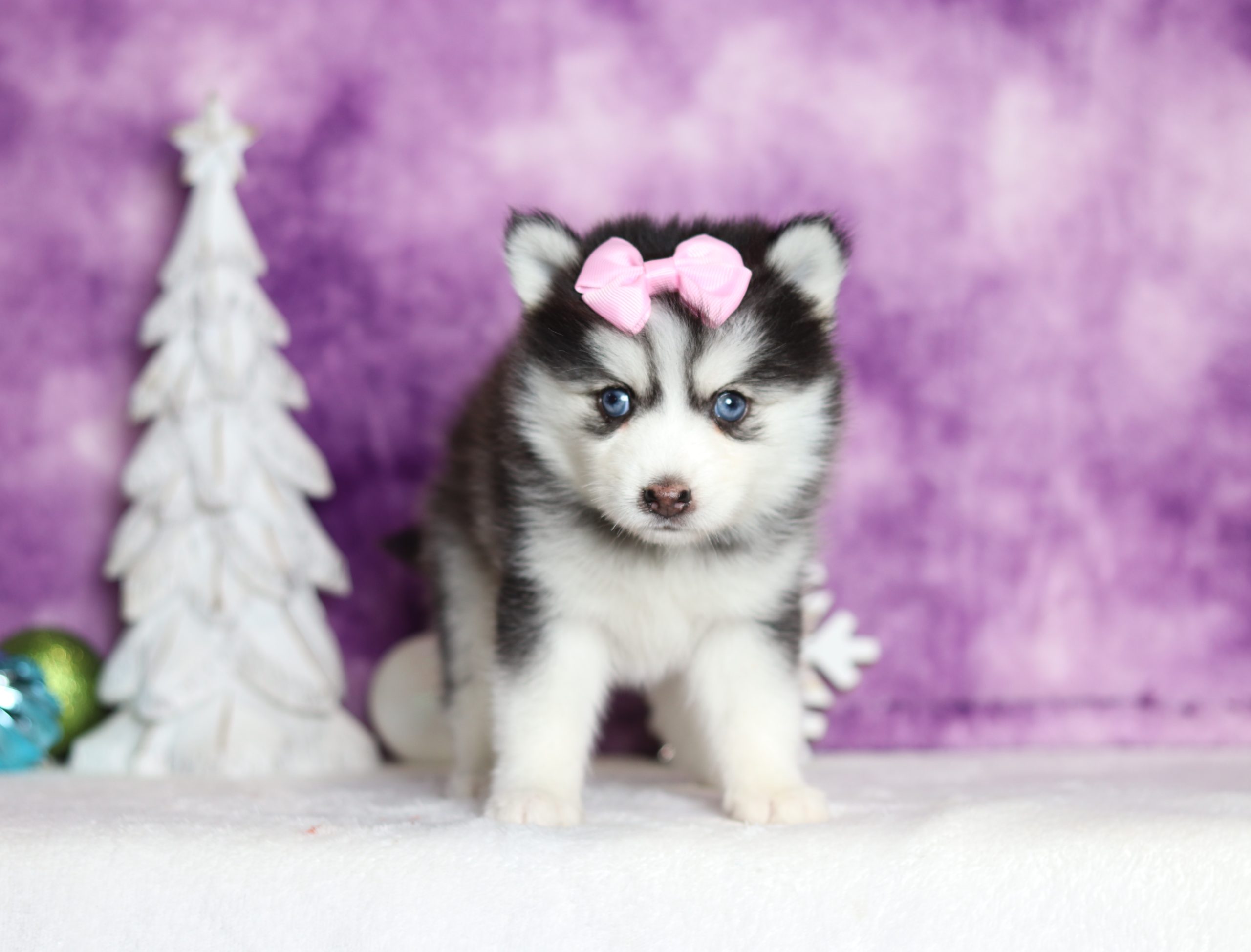 Lisa the Pomsky girl is very alert and won’t miss a beat! She is a happy go lucky little girl and loves excitement! She has a beautiful hair coat! Her caring eyes and cute little nose will be sure to steal your heart! Enjoys playtime and also loves to be held! She’s an all around cutie!