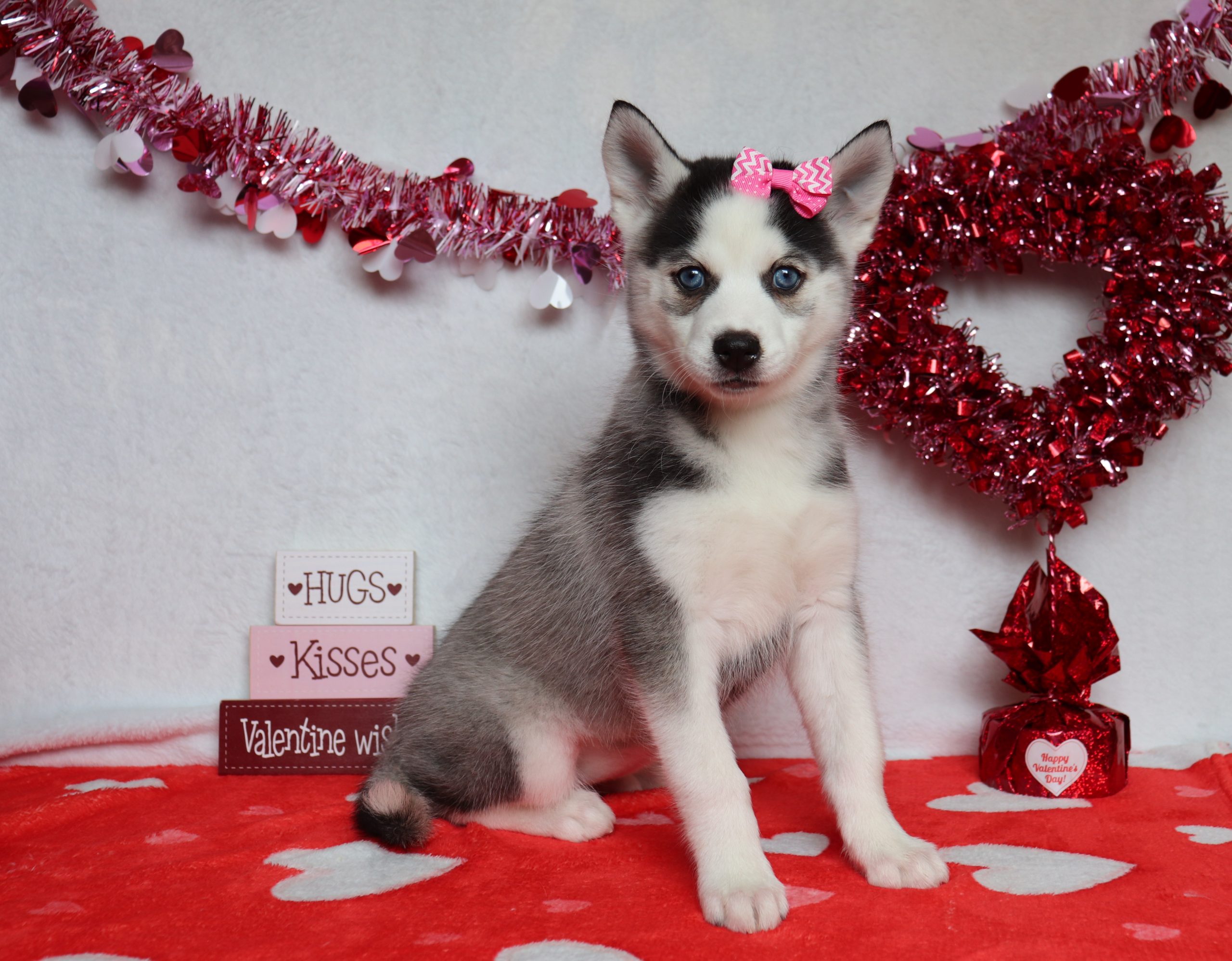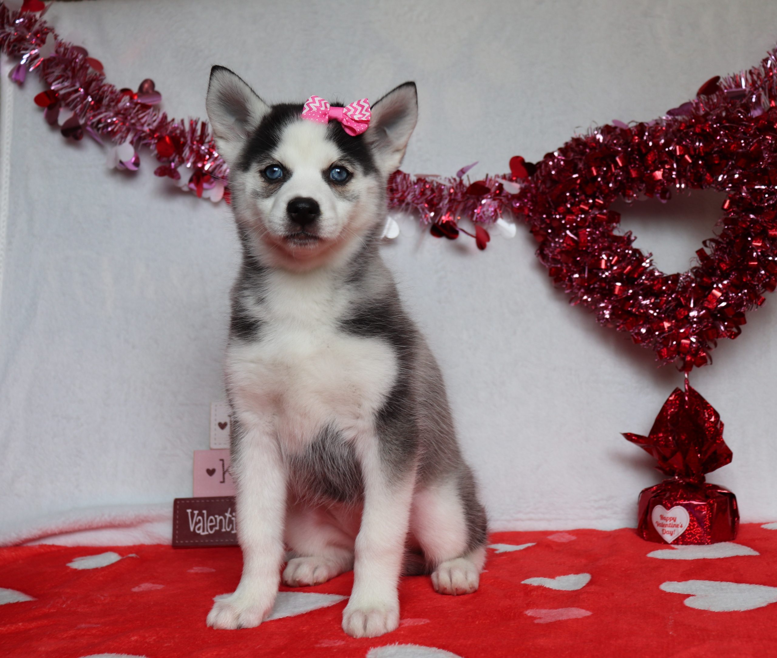 Livia, the Pomsky girl is very alert and won’t miss a beat! She is a happy go lucky little girl and loves excitement! She has a beautiful fluffy hair coat! Her caring eyes and cute little nose will be sure to steal your heart! Enjoys playtime and also loves to be held! She’s an all around cutie!
