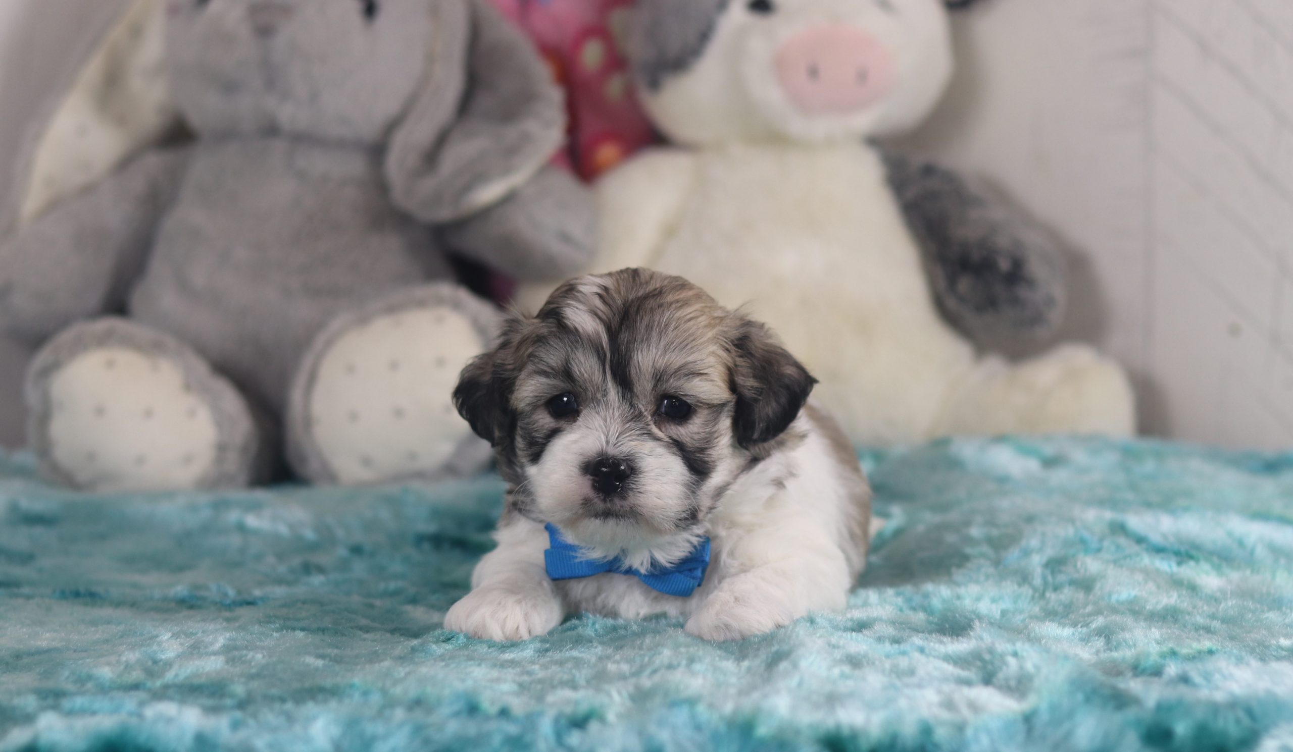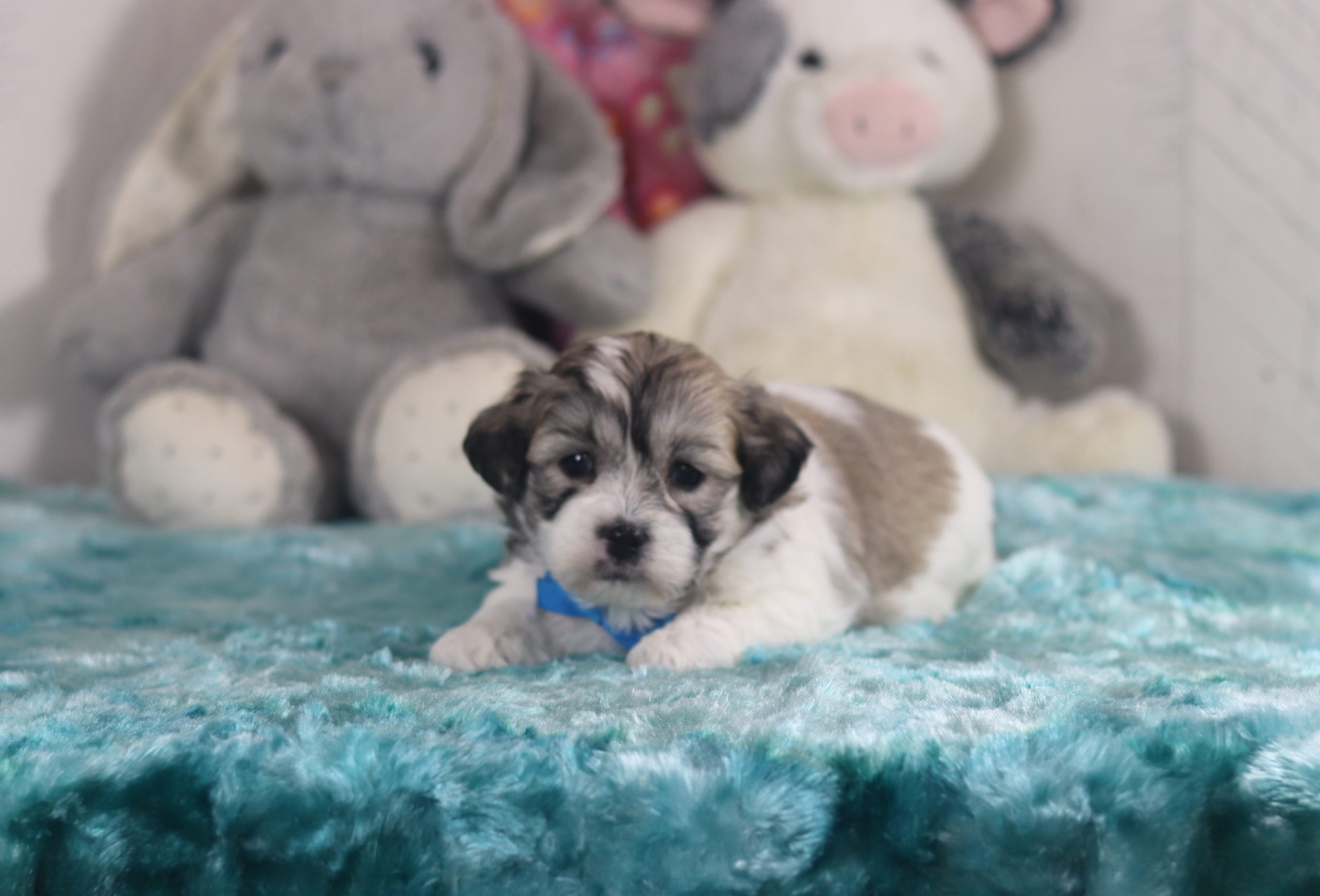 Luckie,the Teddy bear enjoys getting all the attention he can, and loves to play with his toys. He did great with his (ENS) Early Neurological Stimulation, he is definitly a joy to have around. He is happy to please just a super friendly little guy!