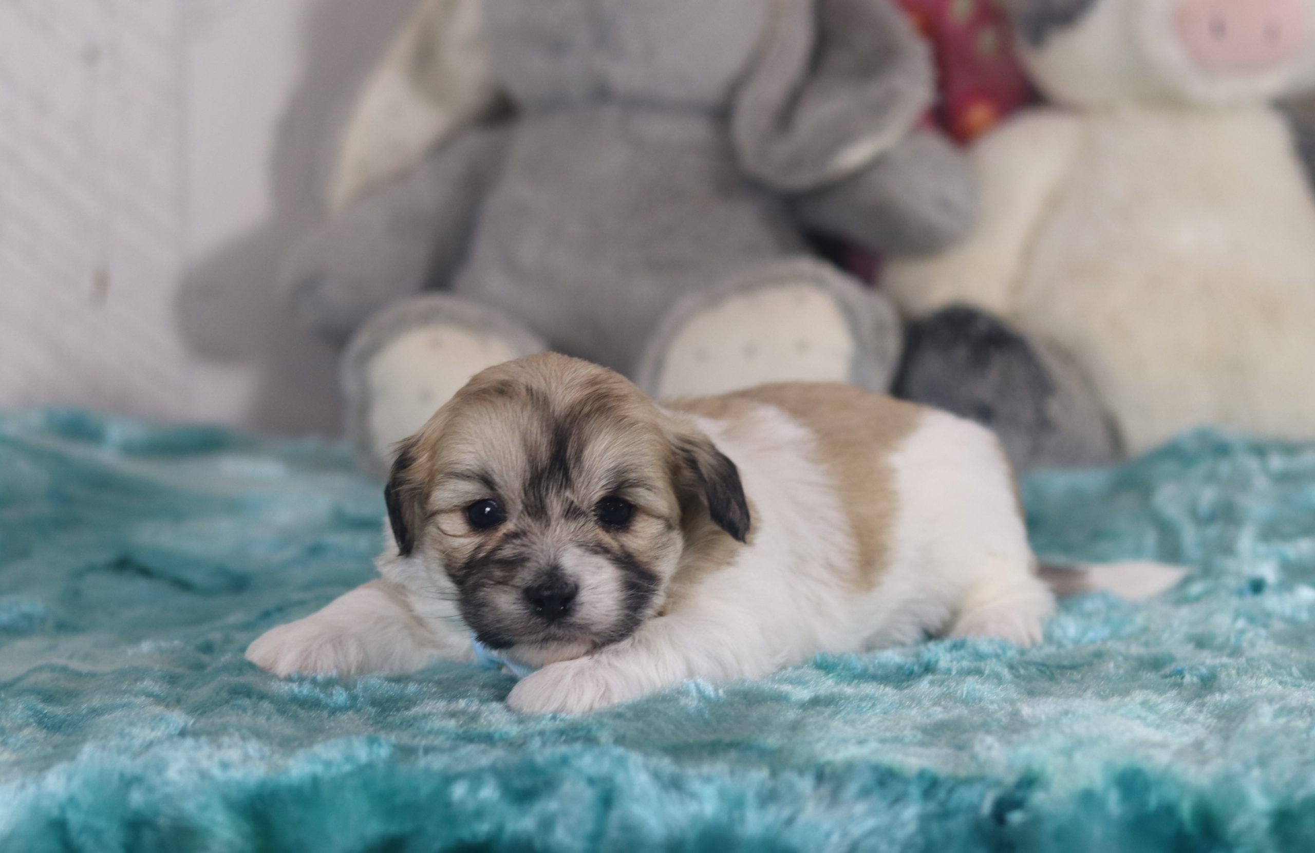 Lyndon, a precious little Teddy Bear boy! He enjoys every minute of snuggling together! He loves being pampered and getting belly rubs! He did great with (ENS) Early Neurological Stimulation and enjoys playing with toys! He is a friendly and adorable little guy!