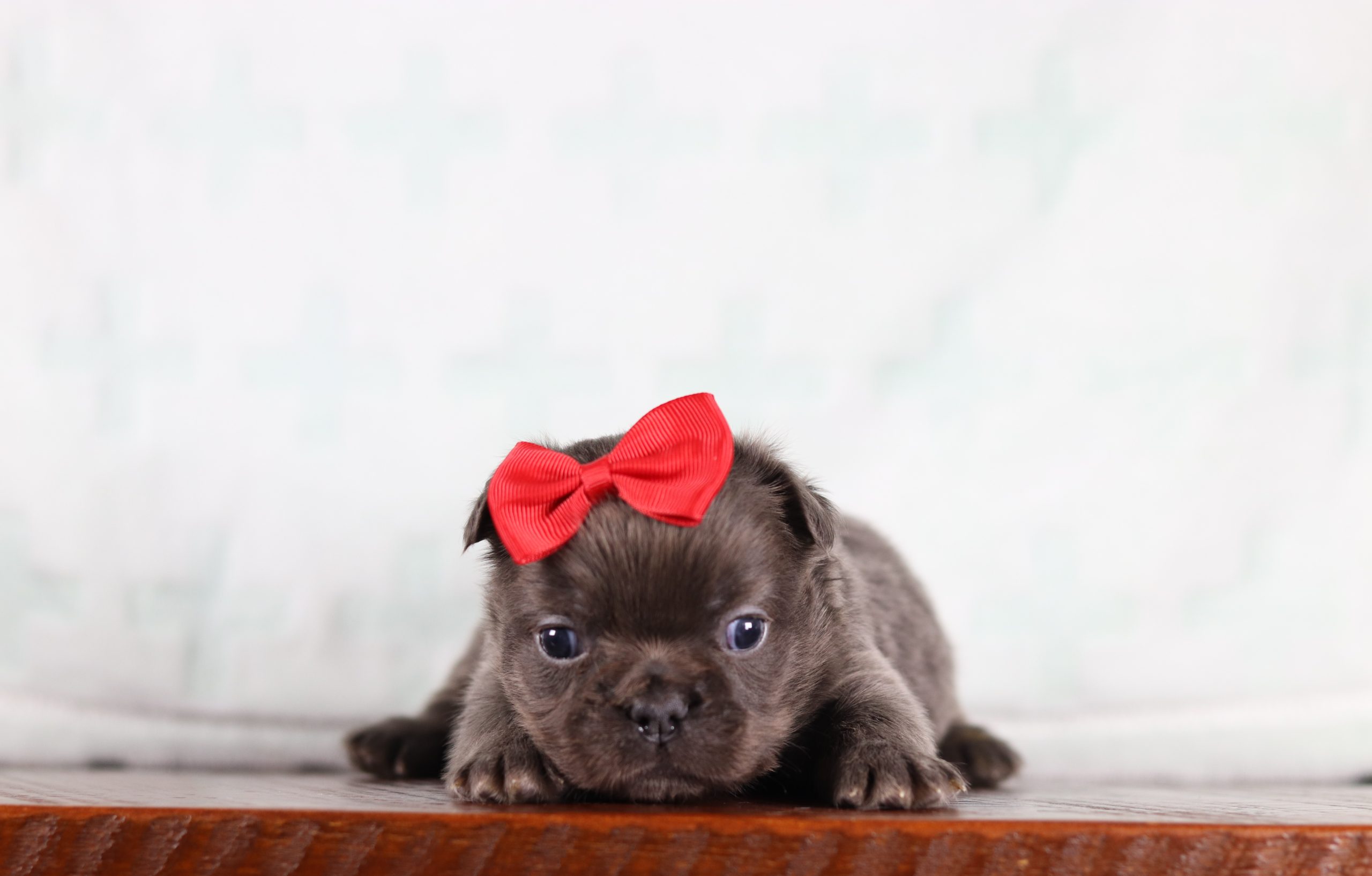 Hello, this is Macy! She’s a cute looking little Fluffy Frenchie girl  with a soft, furry coat and 2 shining eyes. She loves to play with her siblings and also loves to be held and cuddled! She will be sure to shower you with lots of kisses!
