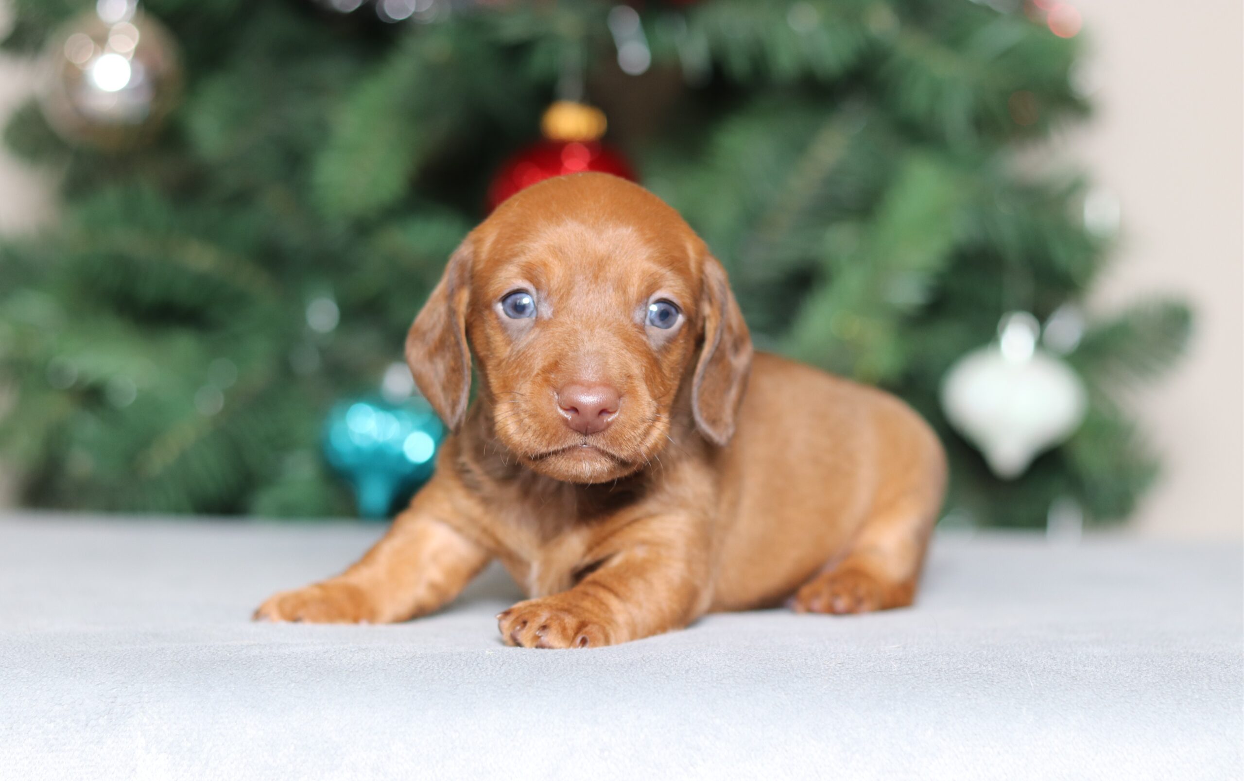 Matthias the Dachshund boy is very alert and won’t miss a beat! He is a happy go lucky little guy and loves excitement! He has a beautiful red hair coat! His caring eyes and cute little nose will be sure to steal your heart! Enjoys playtime and also loves to be held! He’s an all around cutie!