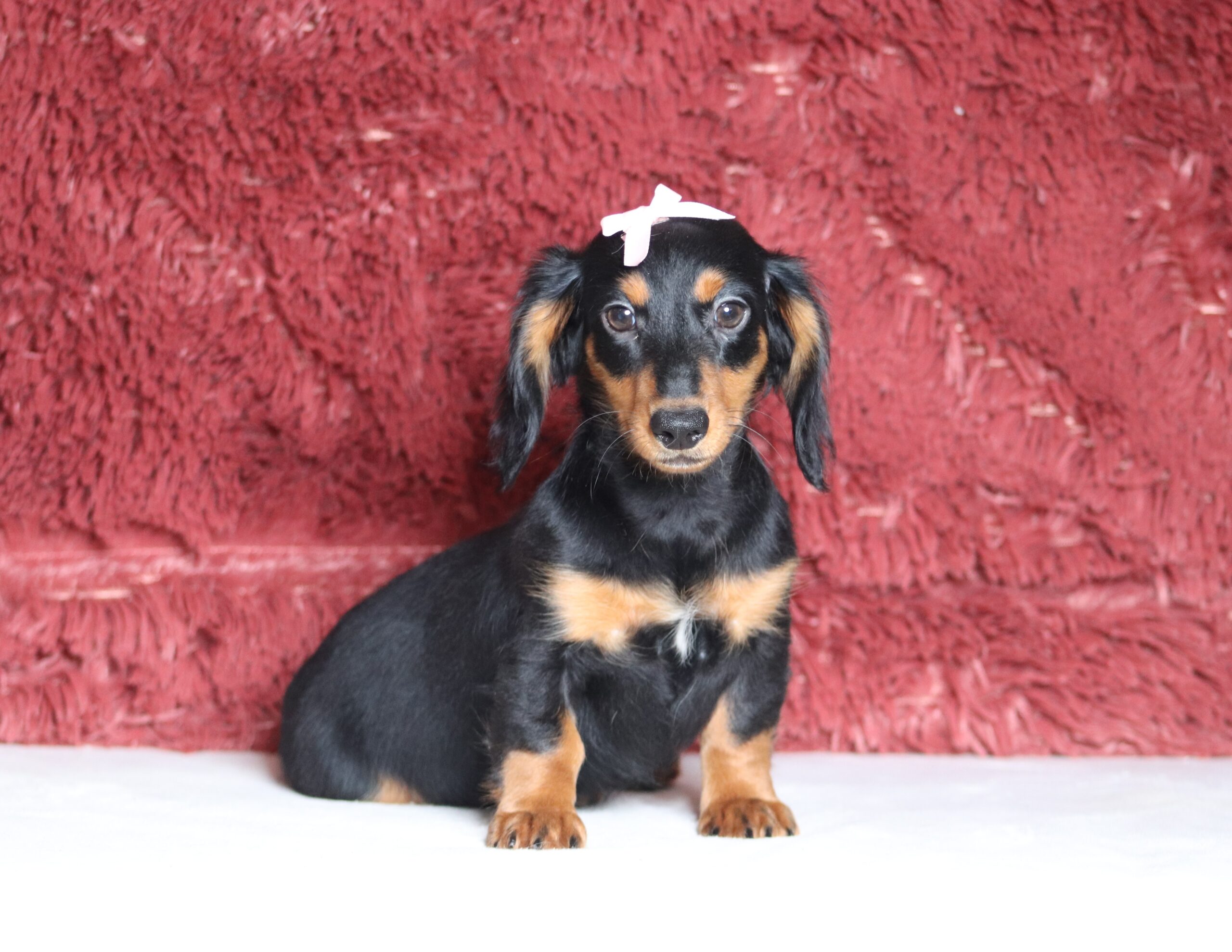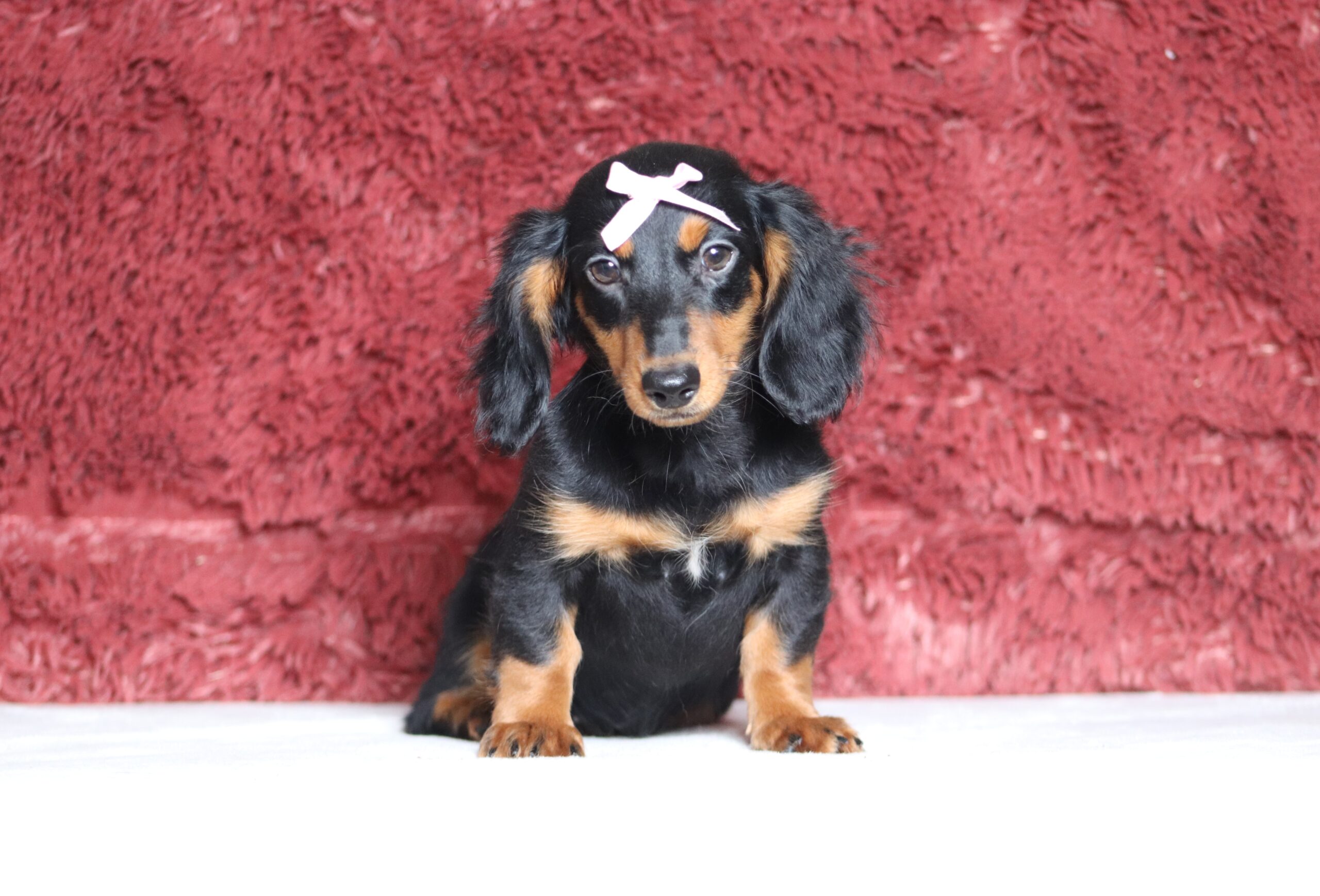 Melia the Longhaired Mini Dachshund is very caring and sweet! She is such a cheerful little girl a great companion to her littermates! Her temperament is wonderful, some of her favorites are playing outdoors and going on a walk to explore and sniff new things! She is eager to please and a bundle of love!