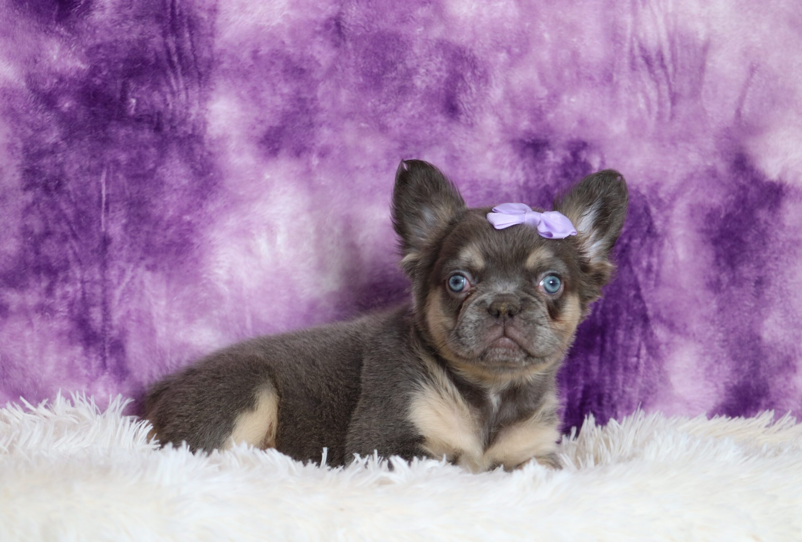 Miranda the Frenchie girl is such a little sweetie, her lilac and tan coat is absolutely adorable she enjoys playing outdoors and is very adventurous! Some of her favorites include being pampered and getting belly rubs! She loves getting all the attention!