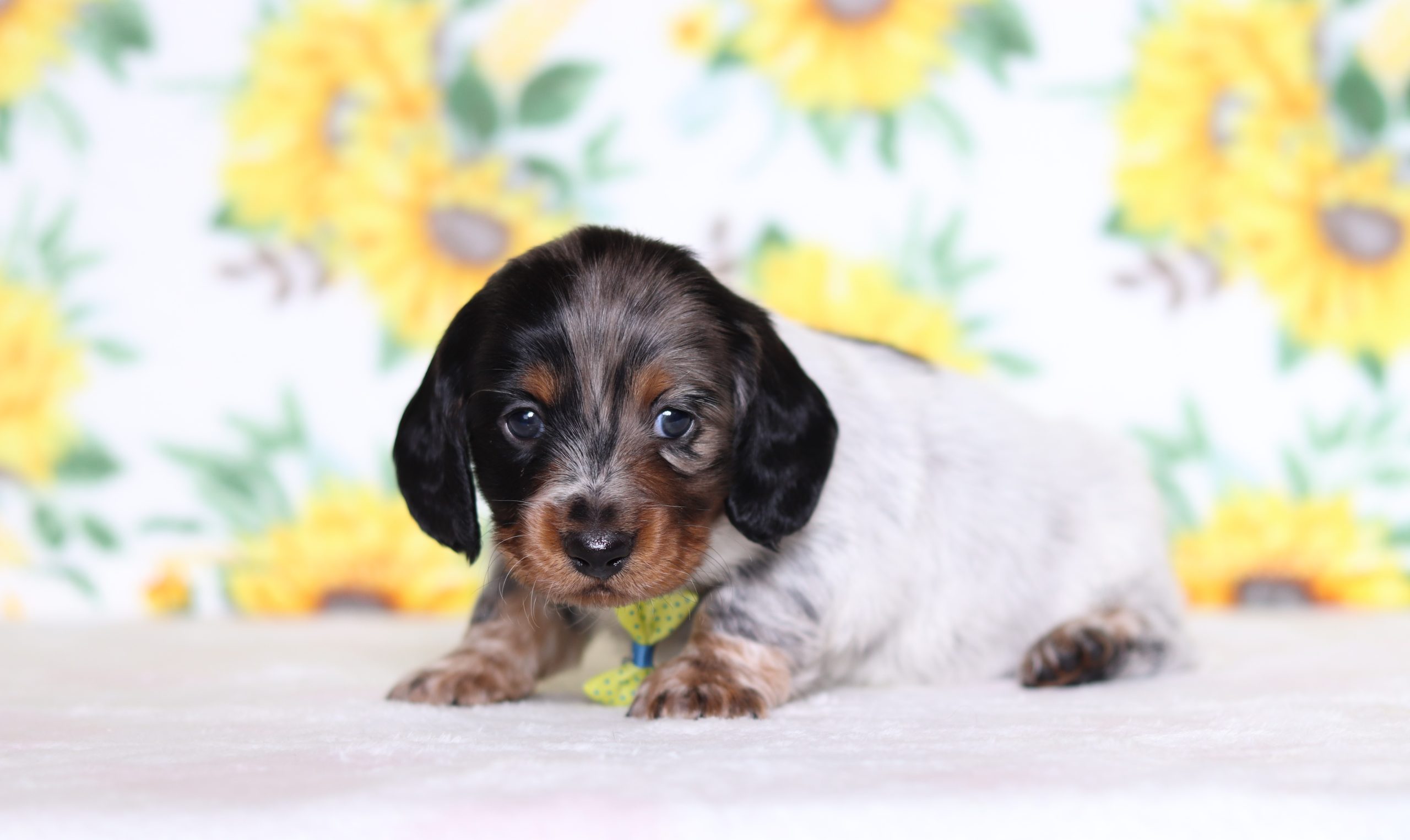 Malachi, the Longhaired Mini Dachshund boy, is very alert and won’t miss a beat! He is a happy go lucky little guy and loves excitement! He has a beautiful blue merle/white hair coat! His caring eyes and cute little nose will be sure to steal your heart! Enjoys playtime and also loves to be held! He’s an all around cutie!
