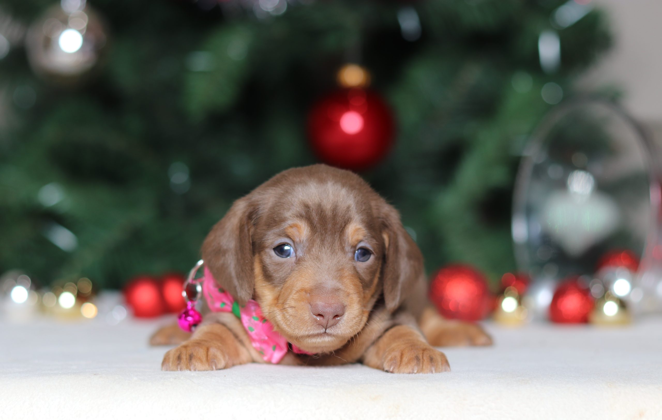 Paisley, the shorthaired,Mini Dachshund is very caring and sweet! She is such a cheerful little girl a great companion to her littermates! Her temperament is wonderful! She is eager to please and a bundle of love!