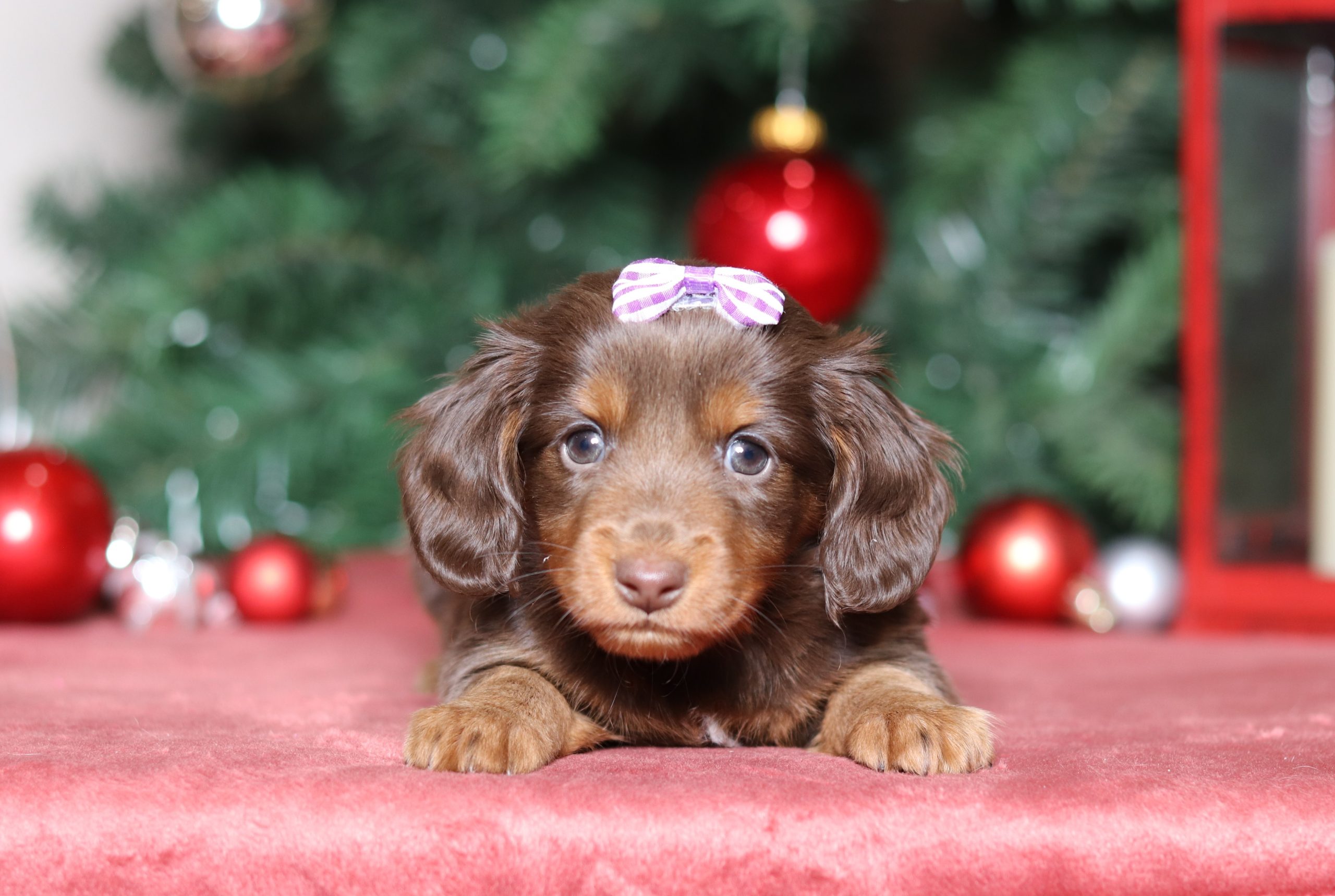 Paula, a precious longhaired, mini Dachshund girl! She enjoys every minute of snuggling together! She loves being pampered and getting belly rubs! She did great with (ENS) Early Neurological Stimulation and enjoys playing with toys and running around! She is a friendly and adorable girl!