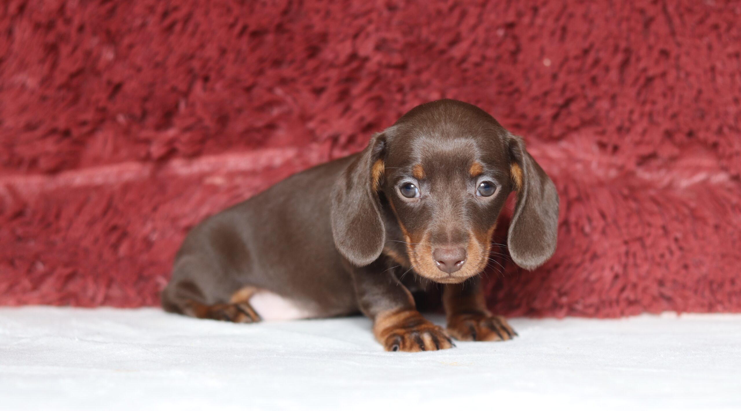 Pearl a precious little dachshund girl! She enjoys every minute of snuggling together! She loves being pampered and getting belly rubs! She did great with (ENS) Early Neurological Stimulation and enjoys playing with toys! She is a friendly and adorable girl!