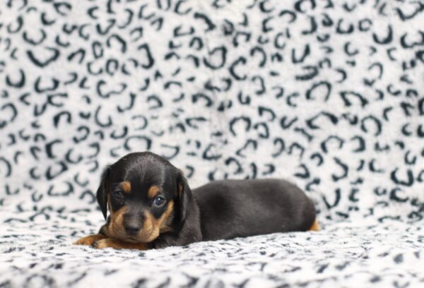 Hello, this is Pete! He’s a cute looking little dachshund boy with a black and tan and soft, furry coat and 2 long floppy ears. He loves to romp and play with his siblings and also loves to spend time playing in the yard! He will be sure to shower you with lots of kisses!