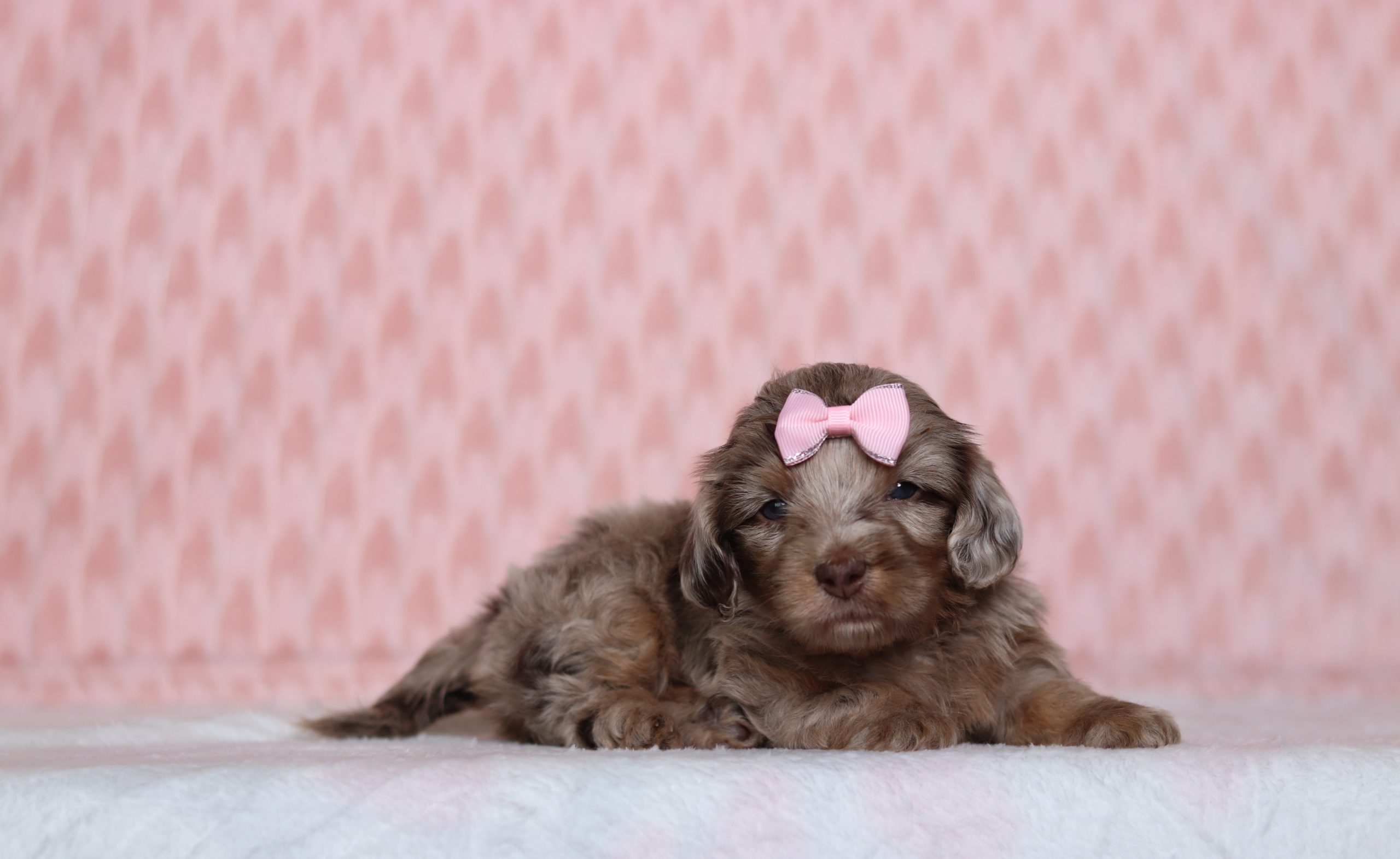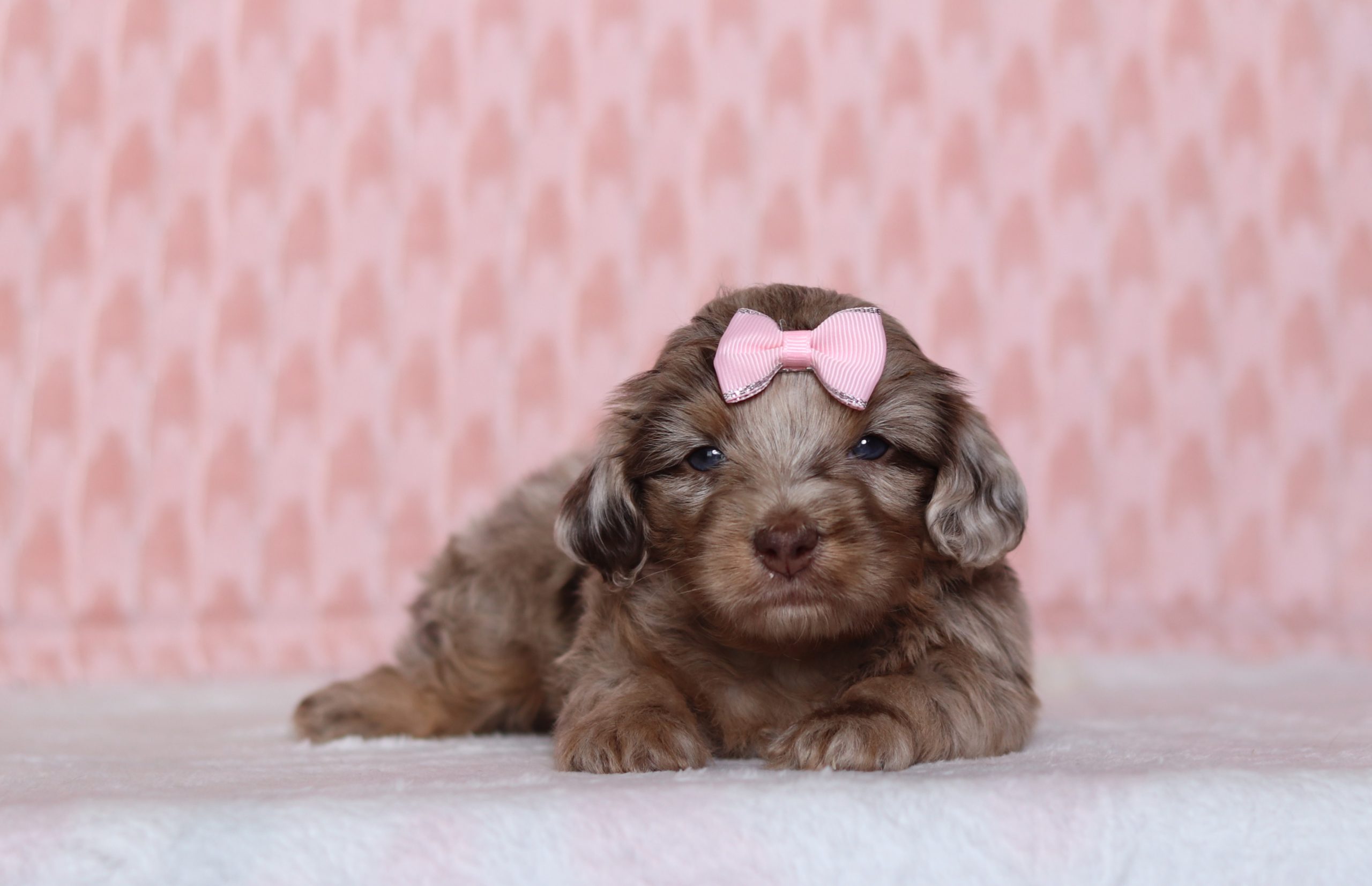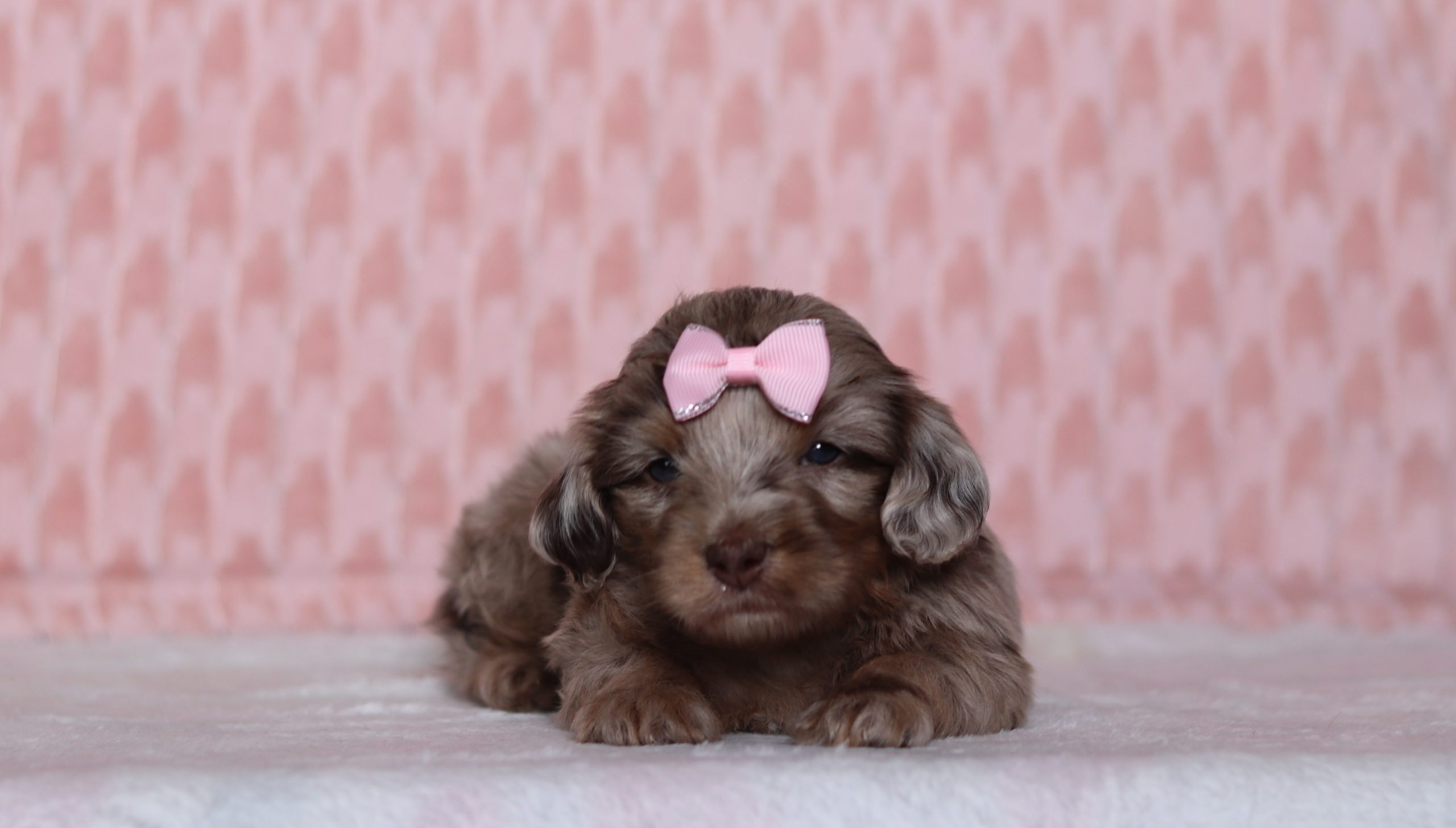 Hi there! This is Phoebe, a sweet little Doxy Poo girl! She has a nice, chocolate merle coat! She would love to be your forever friend!! Reserve today!