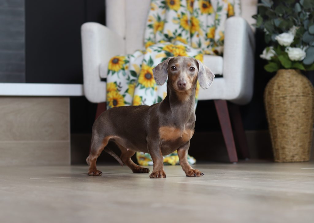 Meet Petunia’s Litter! 4 boys and 2 girls! On the right is Peter,a sweet little chocolate dapple boy! Beside him is Patrick he’s got the unique lilac merle hair coat! Next in line is Porter, the third little boy.He’s got the pretty chocolate/tan color! Beside him is Perry (he’s no longer available.) Last in line is the 2 little girls, It’s Patrina with the chocolate coat w/tan markings,and Princess with the beautiful lilac/tan color! Reserve today!! Watch for updated pictures as they grow or if you fall in love with one now ask us to send you some! We’ll be happy to assist you!
