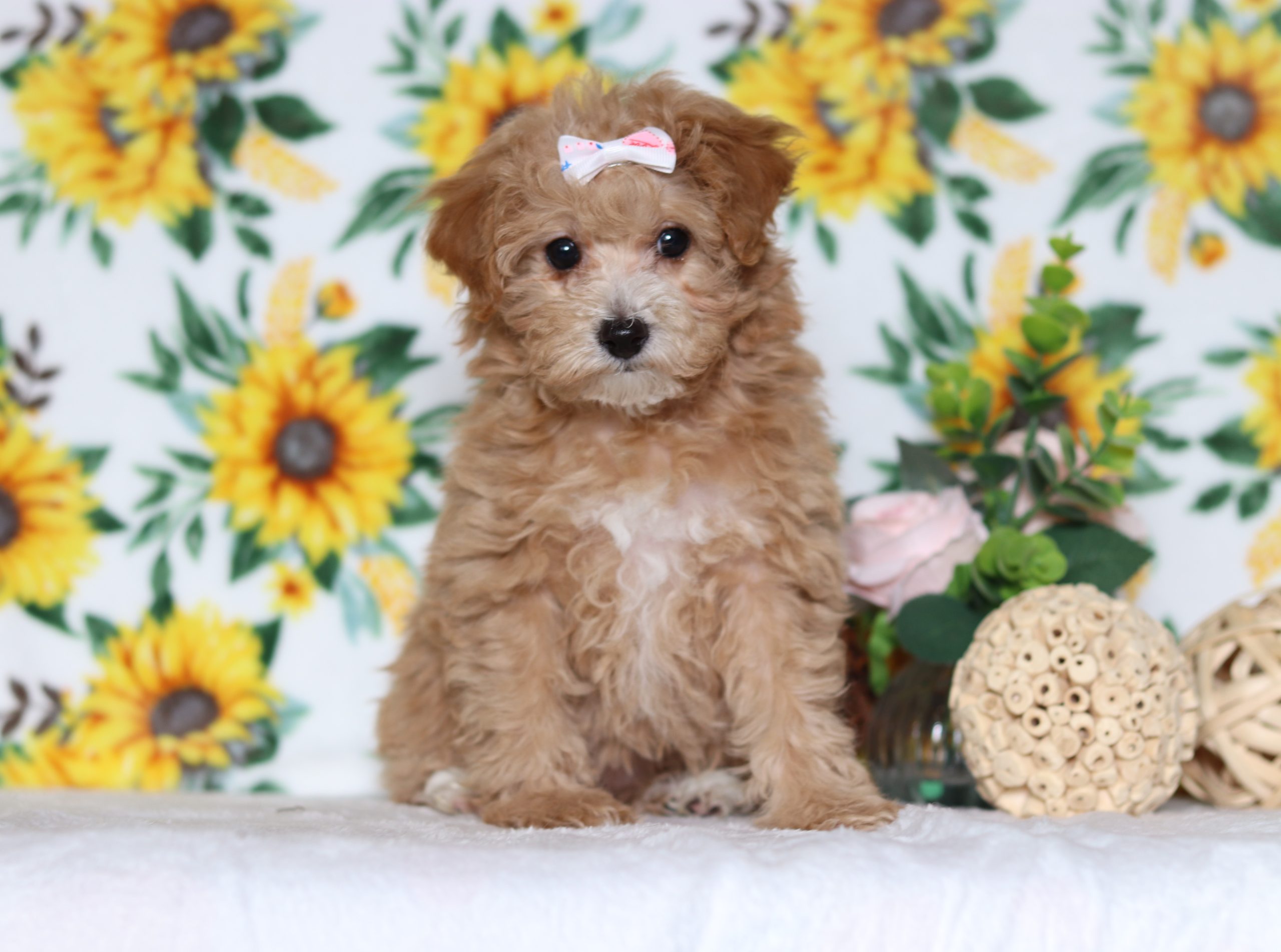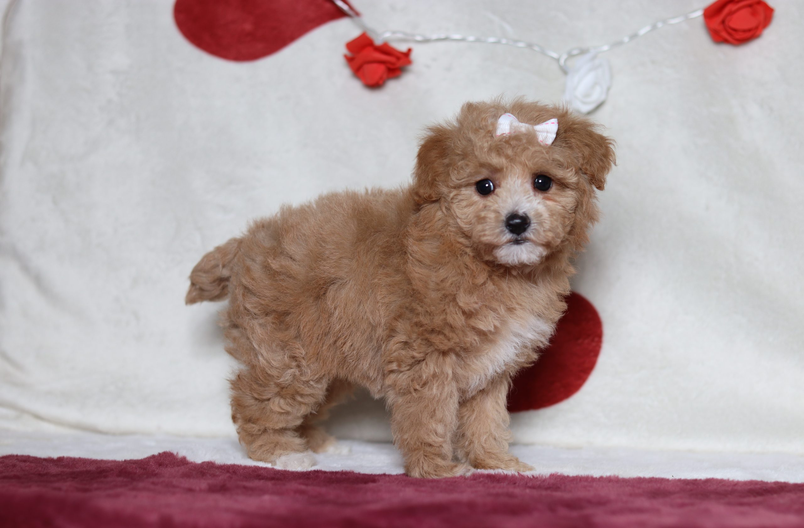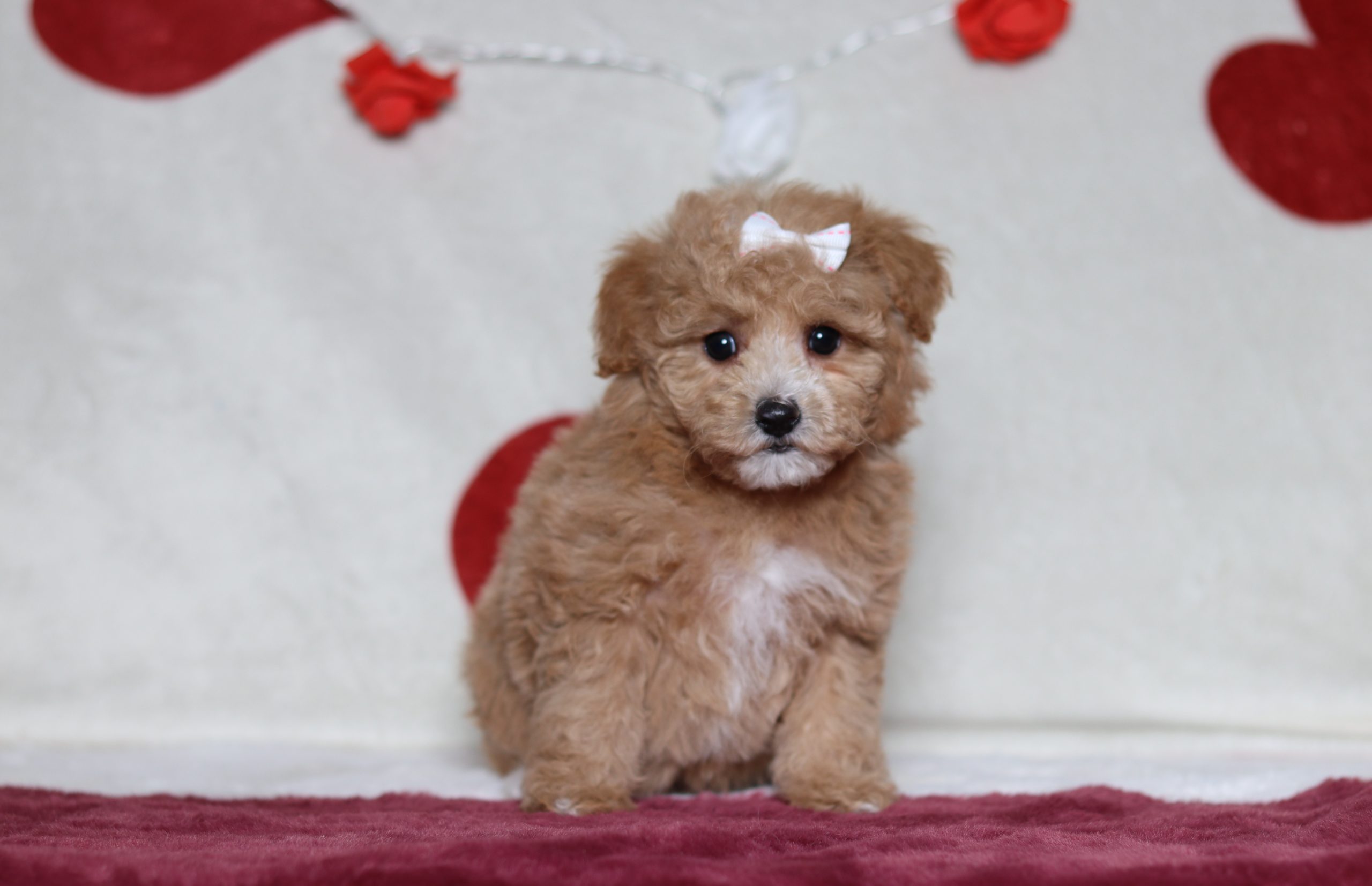 Hello, this is Ruthy! She’s a cute little mini poodle girl with a beautiful red w/ white, soft, furry coat and 2 shining eyes. She loves to be held and cuddled! She will be sure to shower you with lots of kisses!